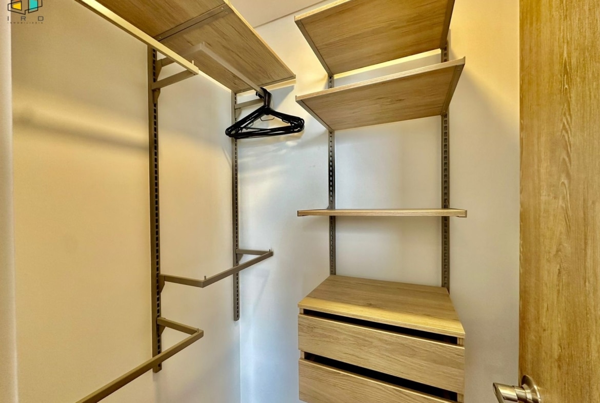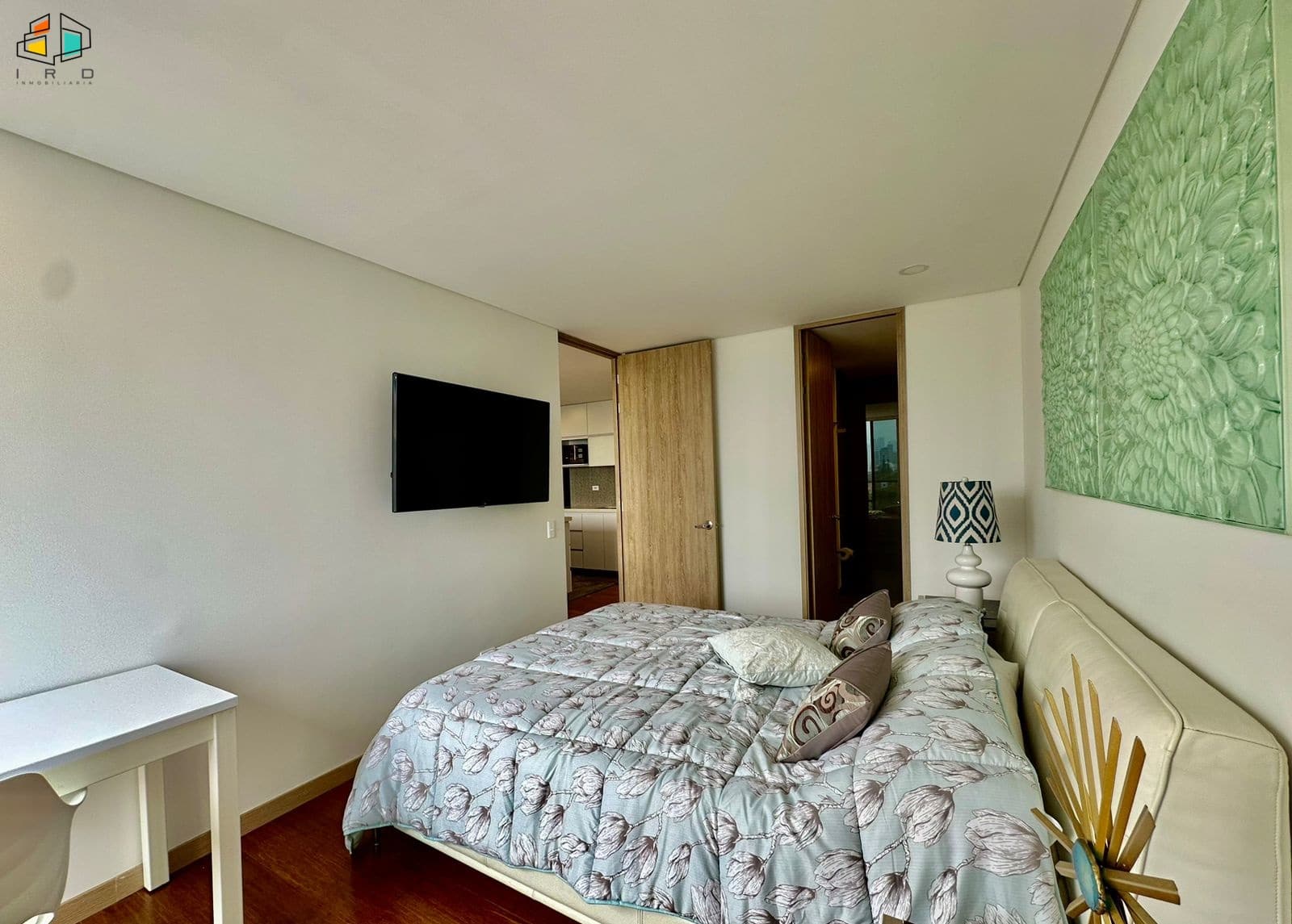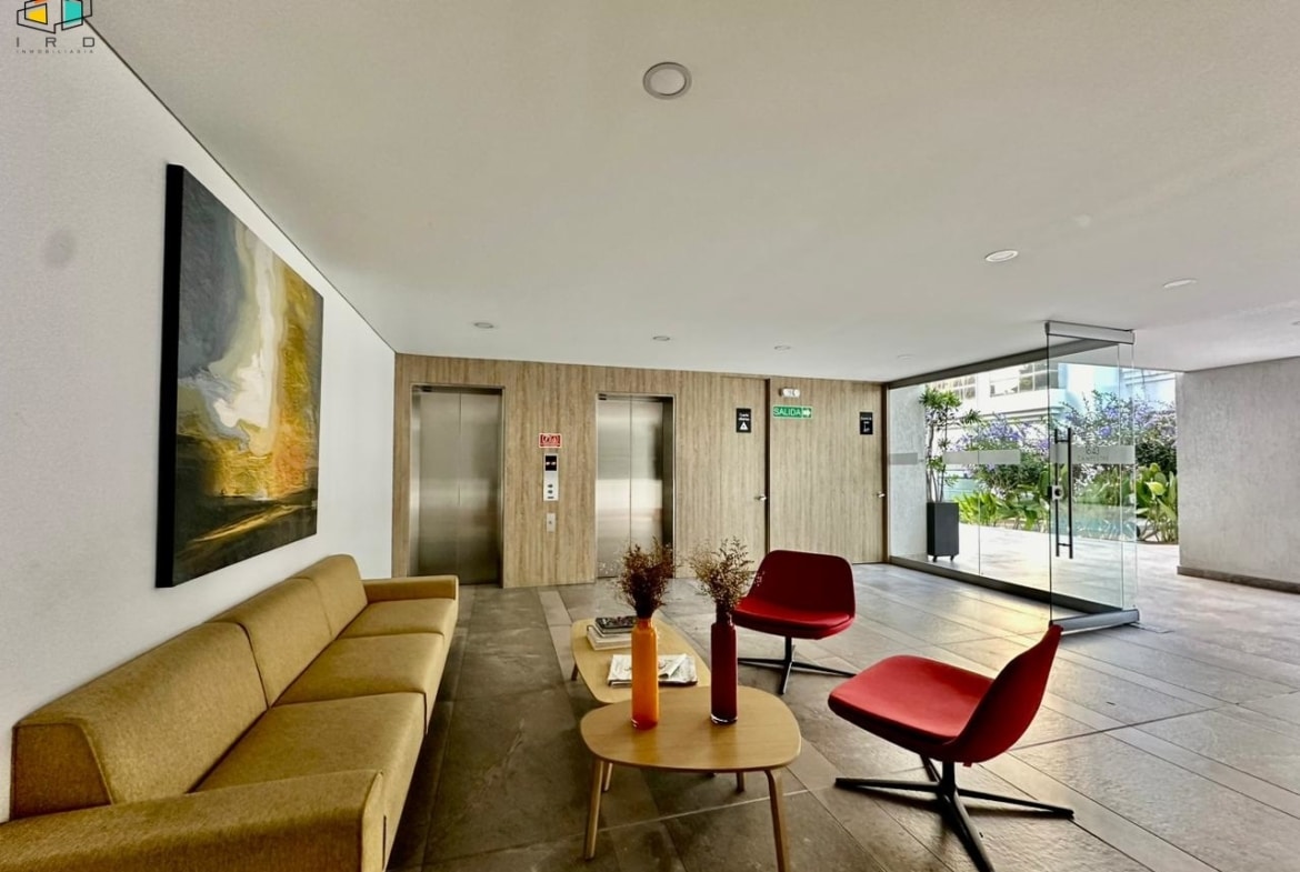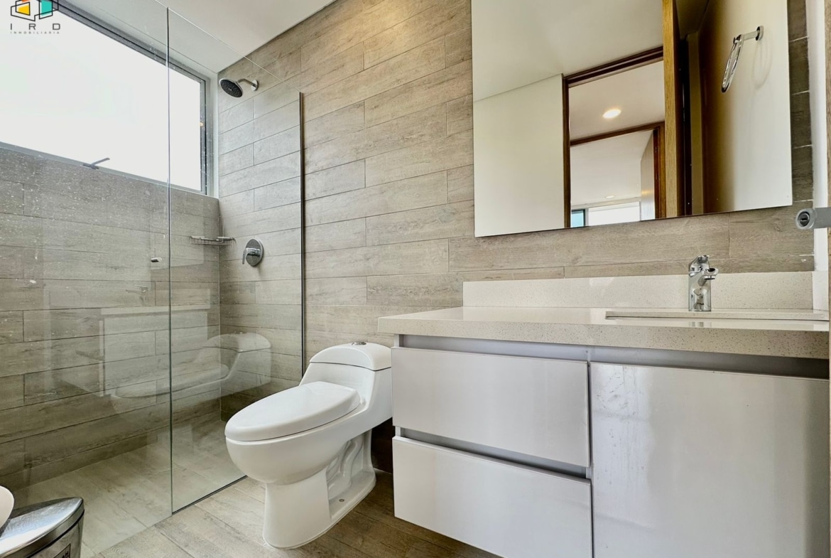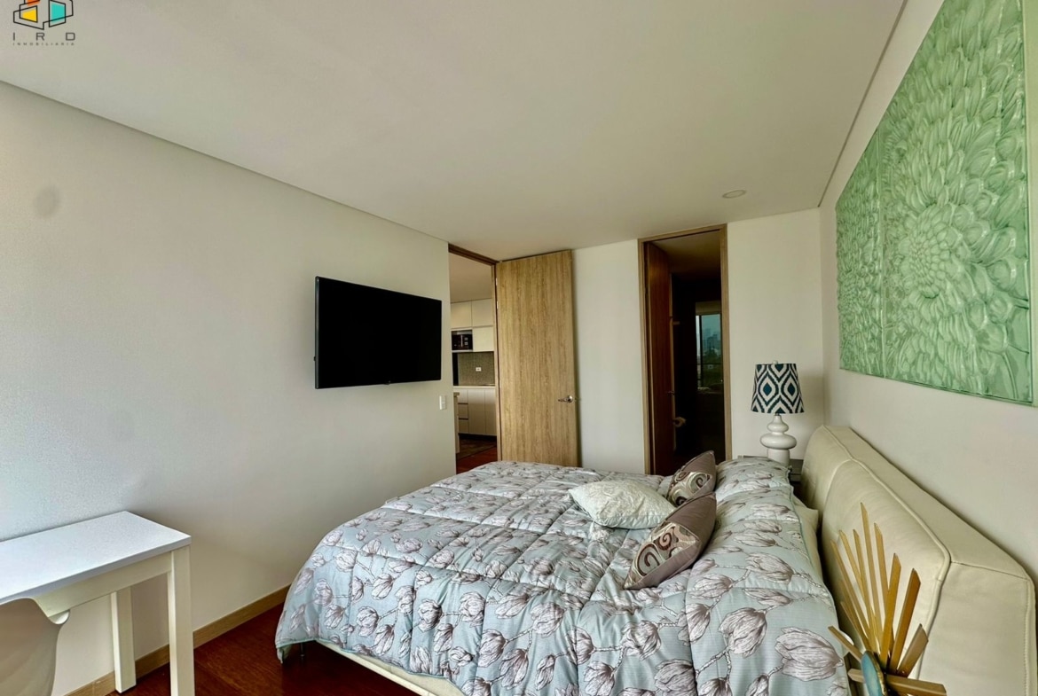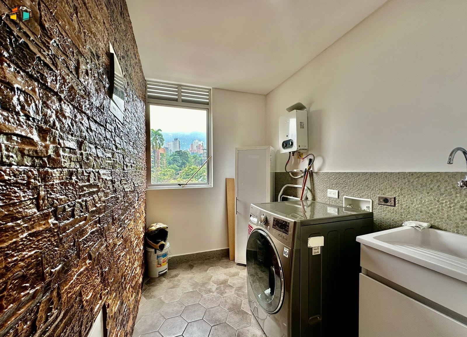 La cocina es integral, de concepto abierto, con acabados modernos. Incluye dos mesones, horno, campana extractora tipo americana y se conecta de manera práctica con el área social. Cuenta además con zona de ropas equipada con calentador de agua. Los acabados incluyen pisos en madera y cerámica en la cocina. Incluido en el alquiler: