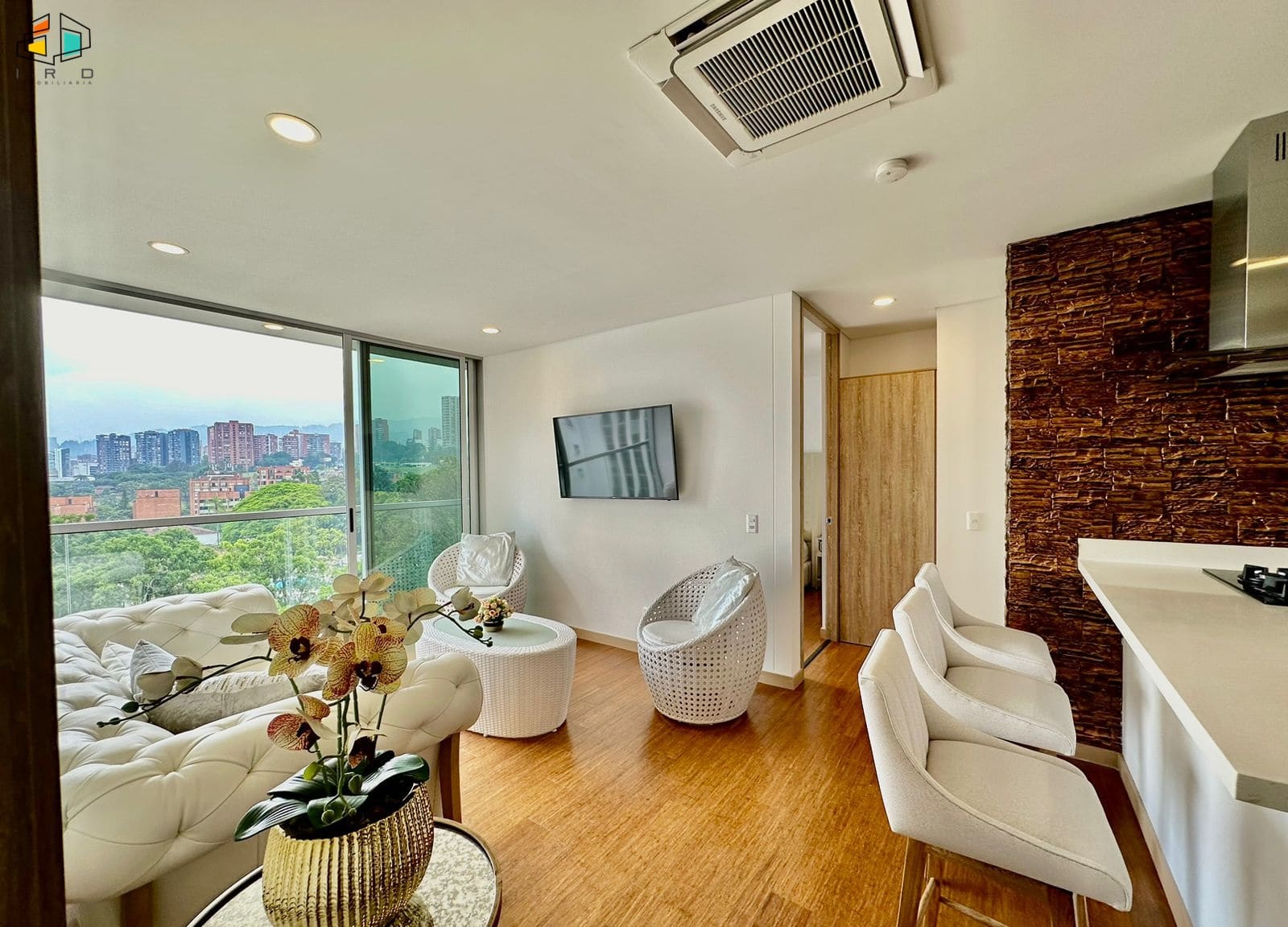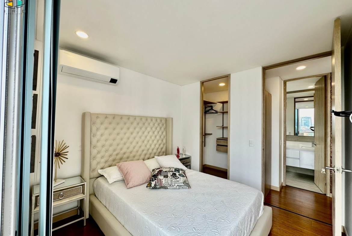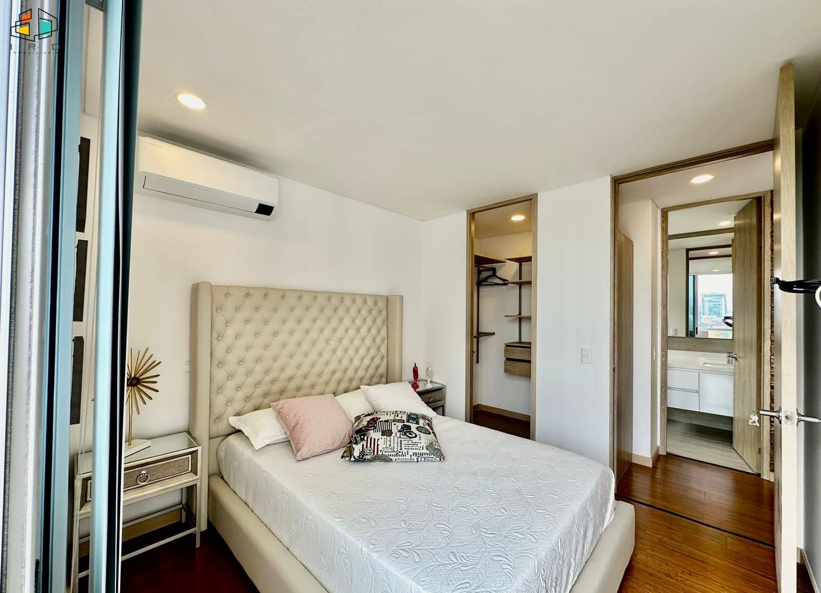 Dispone de 2 habitaciones equipadas con aire acondicionado: la principal cuenta con baño privado y vestier, mientras que la auxiliar también incluye vestier. El inmueble ofrece 2 baños, uno de ellos social.