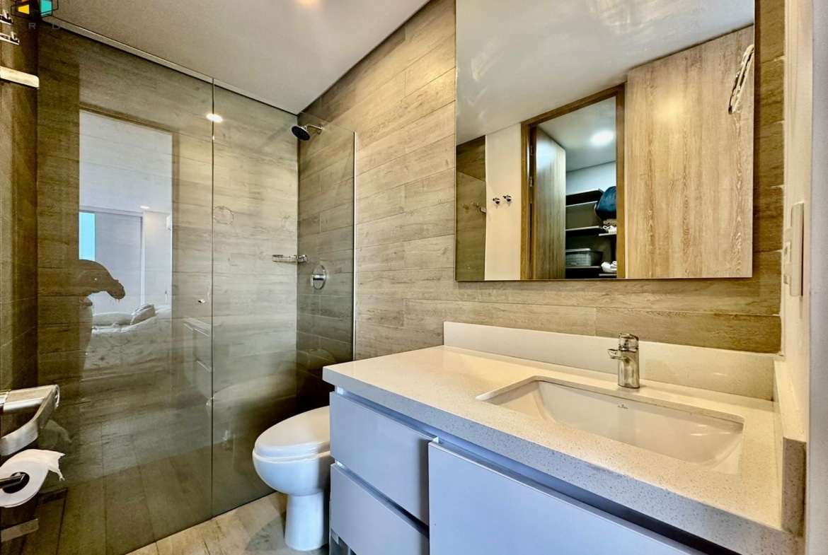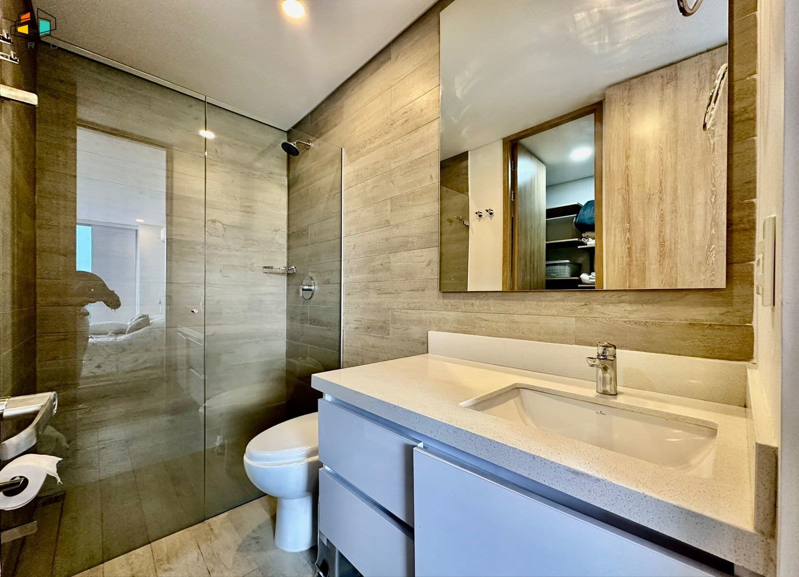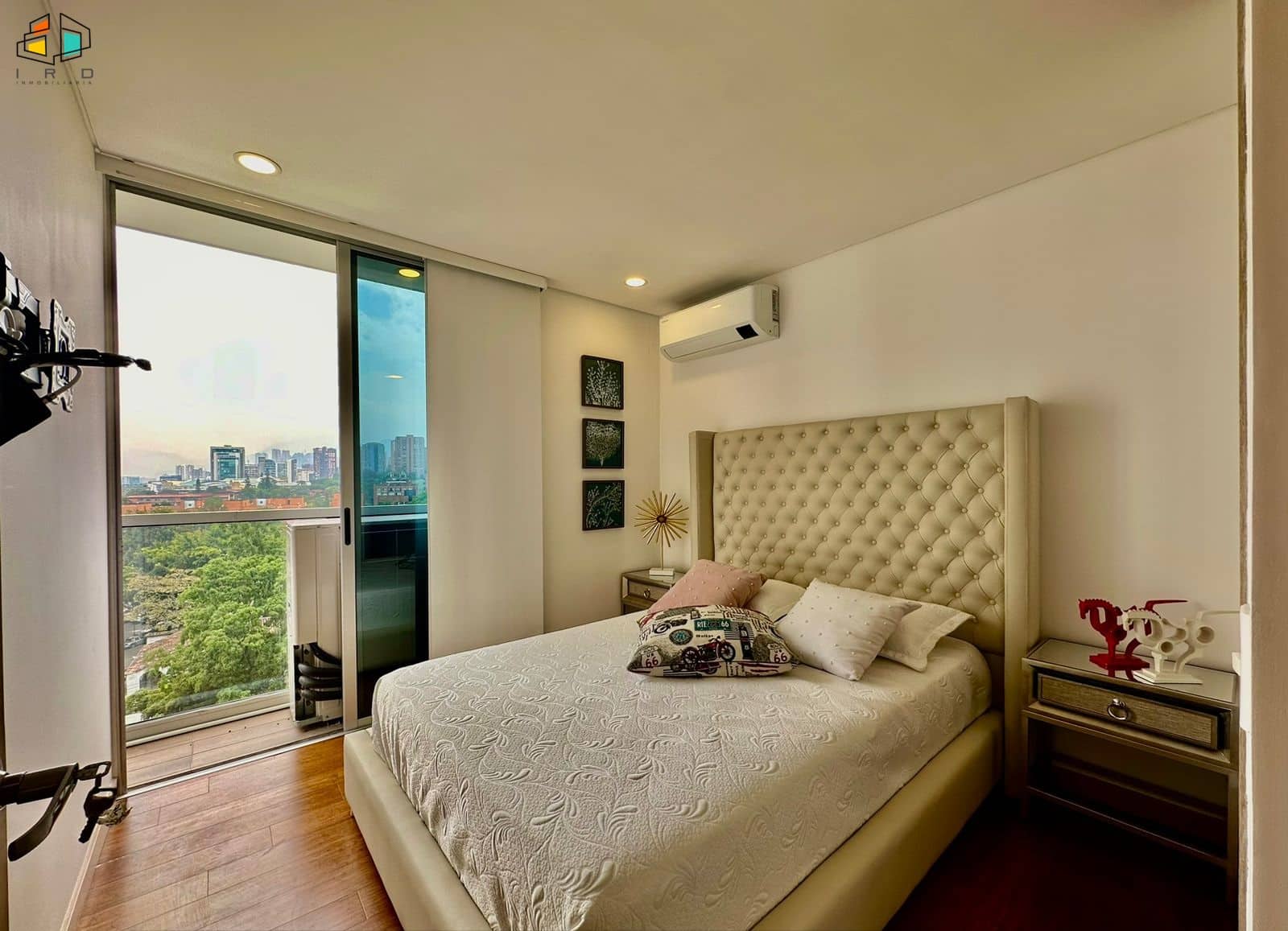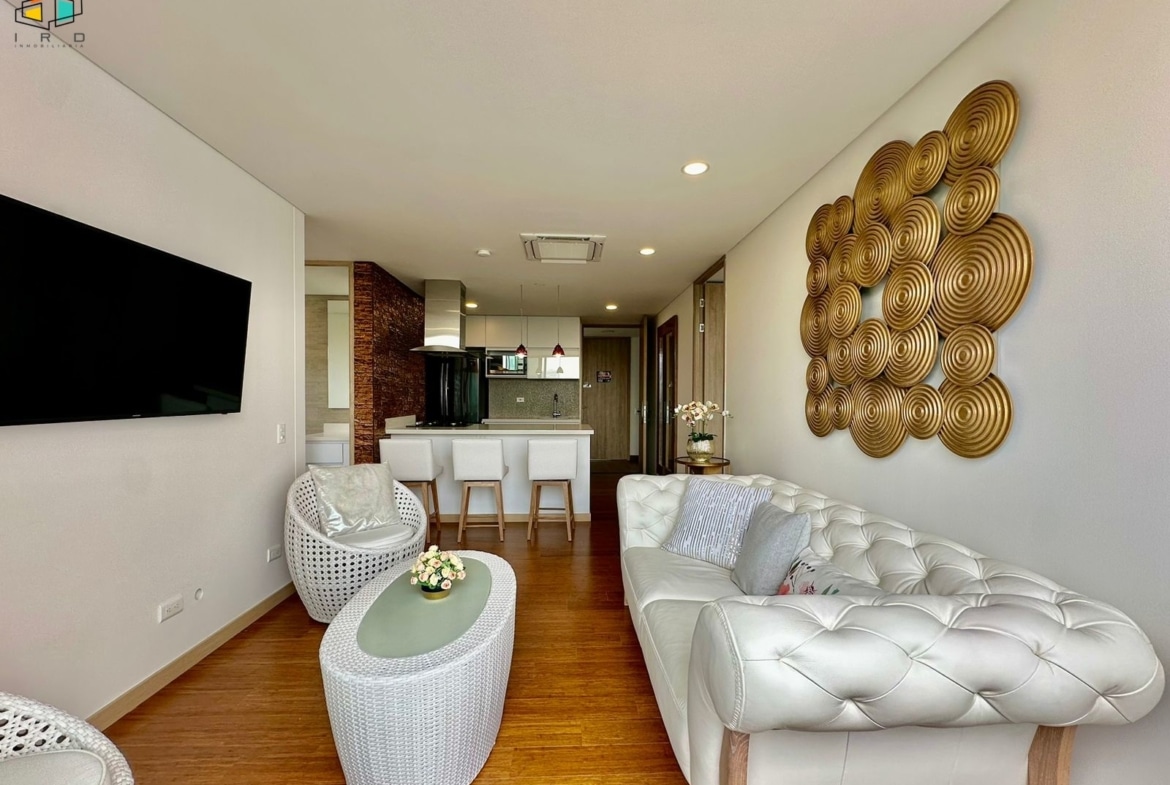 Dispone de 2 habitaciones equipadas con aire acondicionado: la principal cuenta con baño privado y vestier, mientras que la auxiliar también incluye vestier. El inmueble ofrece 2 baños, uno de ellos social.