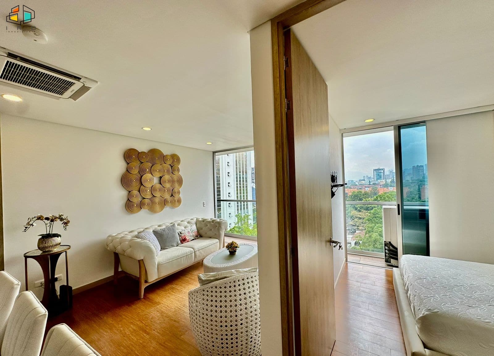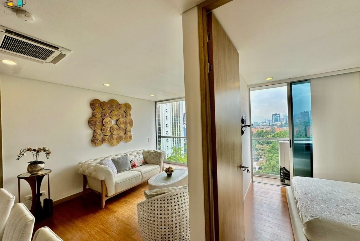 Se arrienda apartamento en El Poblado, sector El Campestre, con excelente ubicación cerca de la Avenida Poblado, el Centro Comercial Santa Fe, entidades financieras, restaurantes, clínicas y con magníficas opciones de acceso y transporte público, incluyendo integración con el sistema de metro.
