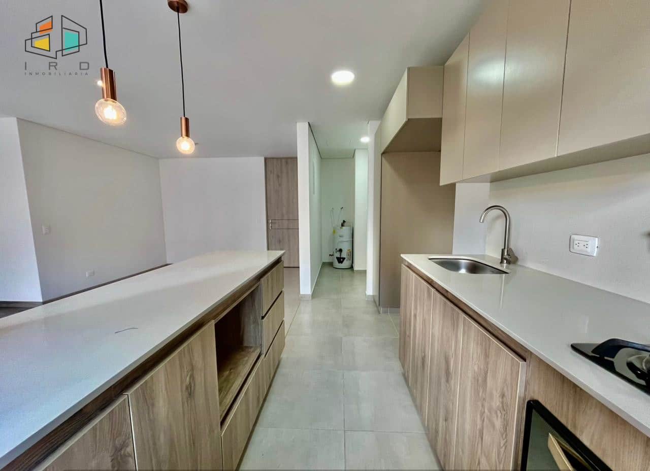 * Cocina integral de concepto abierto, con gabinetes tanto superiores como inferiores. Incluye horno, extractor de aire y una estufa de 4 puestos a gas. Tiene una barra americana que conecta con la zona social.