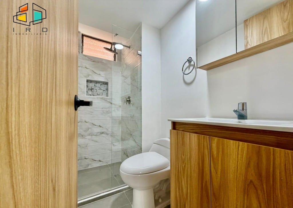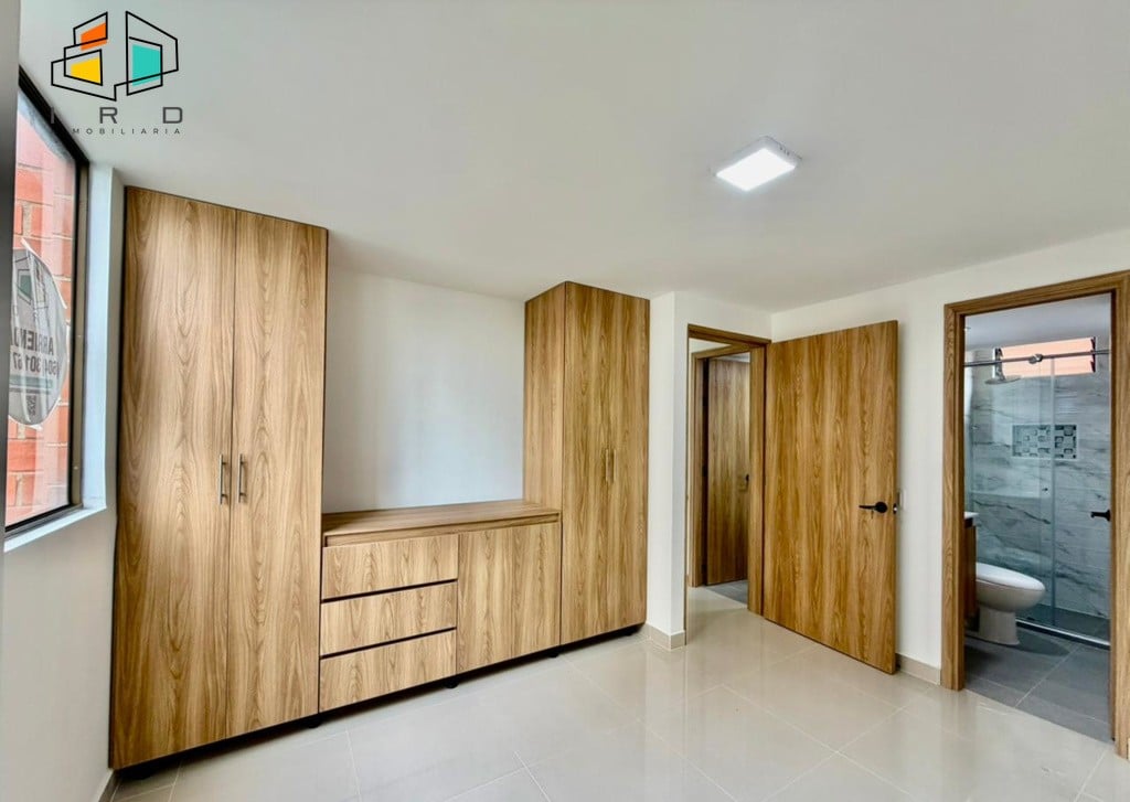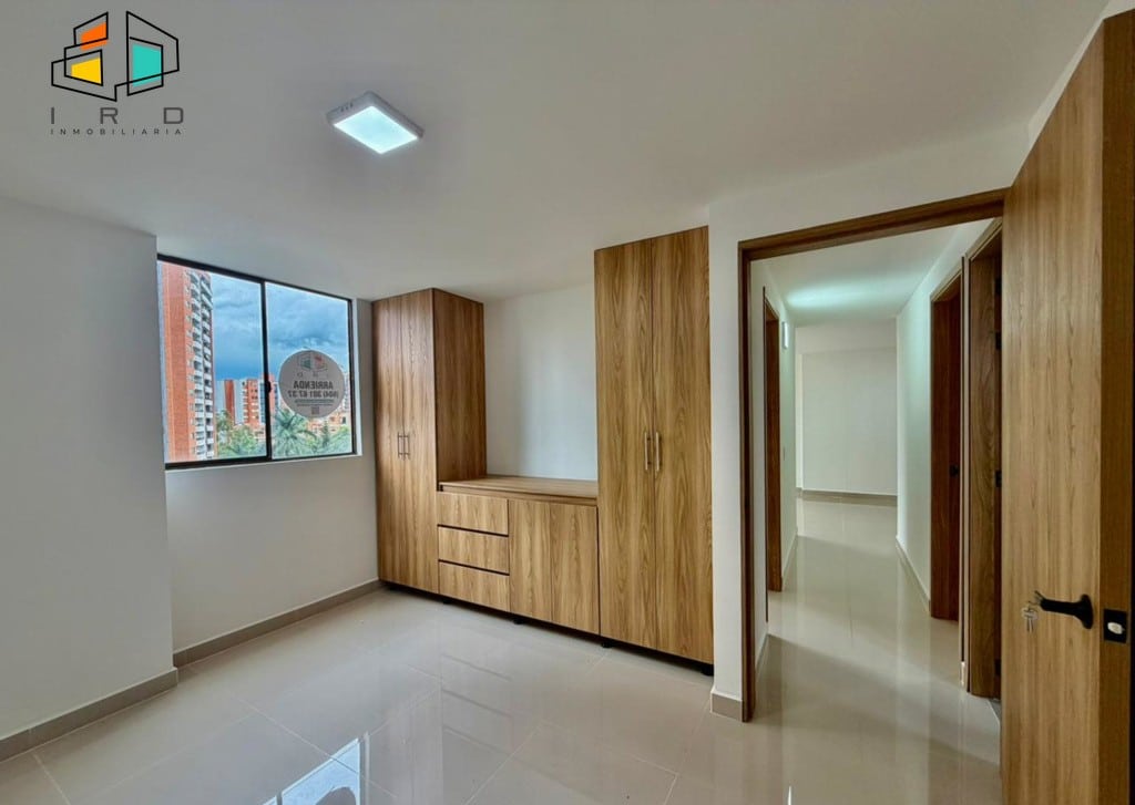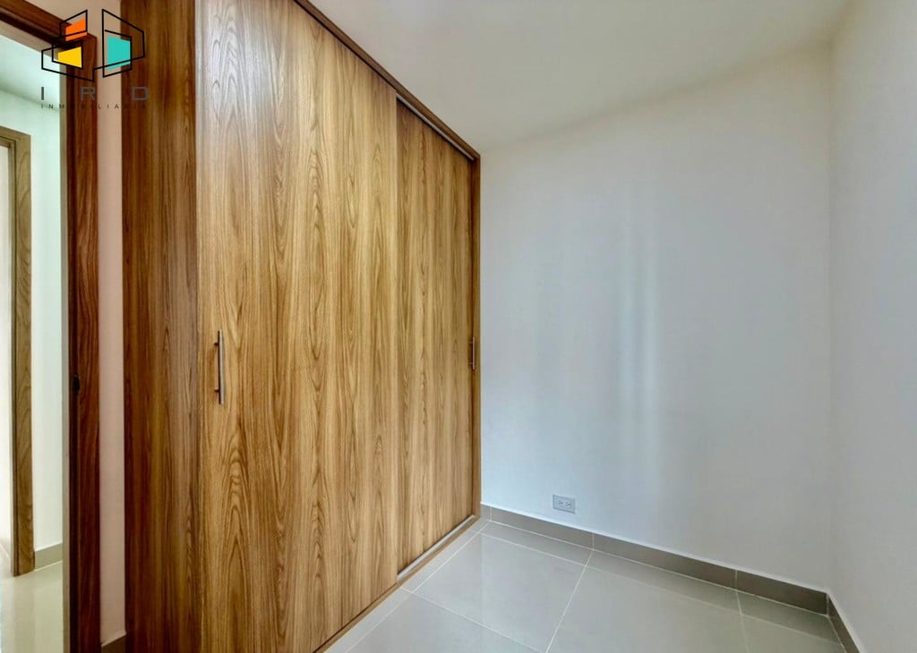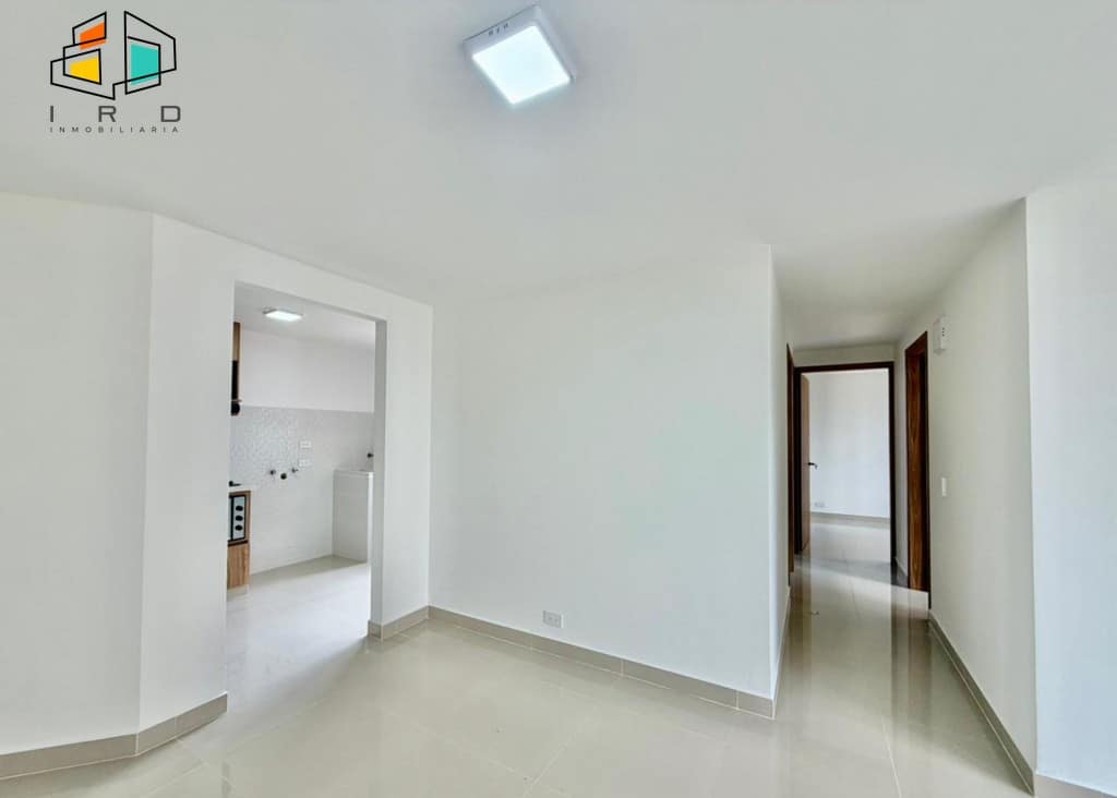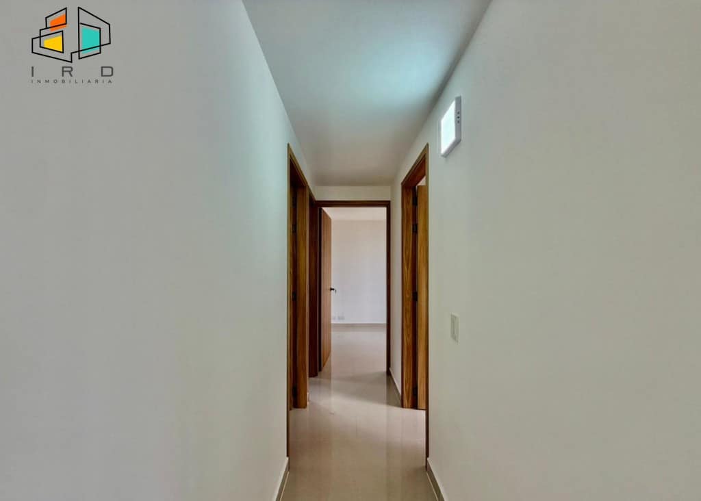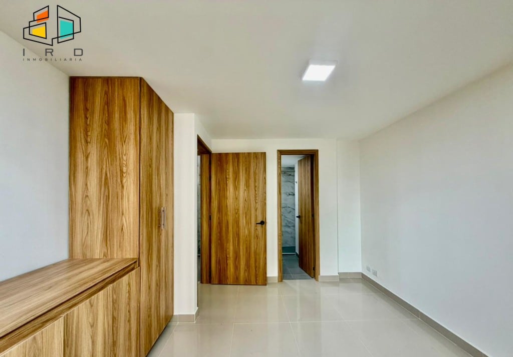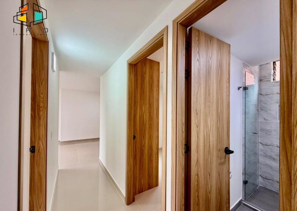 El apartamento cuenta con tres luminosas habitaciones, cada una equipada con closet, y la principal destacando por su baño privado. En total, dispone de dos baños con acabados modernos y totalmente terminados, incluyendo un baño social. Un práctico hall de alcobas optimiza la distribución del espacio.