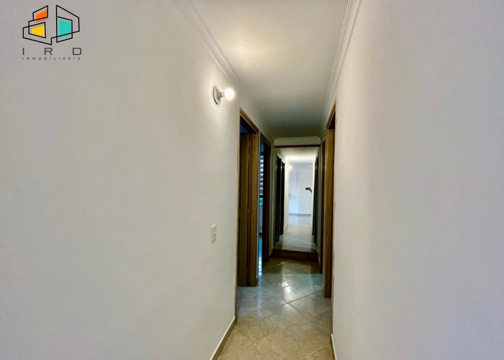El apartamento cuenta con 3 luminosas habitaciones; la principal es un santuario privado con baño en suite y amplio clóset, mientras que las habitaciones auxiliares también disponen de clóset. Todas las ventanas están equipadas con persianas Sheer Elegance, garantizando privacidad y control de luz. Dispone de 2 baños completos, incluyendo el social, elegantemente diseñados. La sala comedor, con sus pisos en cerámica, se beneficia de una excelente iluminación LED y natural, creando un ambiente cálido y acogedor. Un balcón con ventanales de piso a techo ofrece vistas despejadas, ideal para relajarse. La cocina integral está completamente equipada con gabinetes superiores e inferiores, campana extractora y cubierta de 4 puestos a gas, perfecta para los amantes de la gastronomía. La zona de ropas incluye un calentador de agua para su conveniencia. Un práctico hall de alcobas y 1 parqueadero complementan esta oferta.