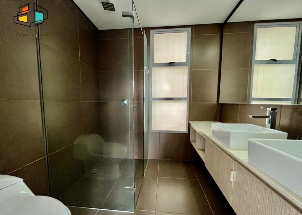 Este luminoso apartamento cuenta con 3 habitaciones, incluyendo una principal con baño privado y vestier, y dos auxiliares equipadas con clóset. Un versátil espacio adicional puede ser adaptado como estudio, sala de televisión, biblioteca u oficina, según sus necesidades. Dispone de 3 baños, incluyendo un práctico baño social.
