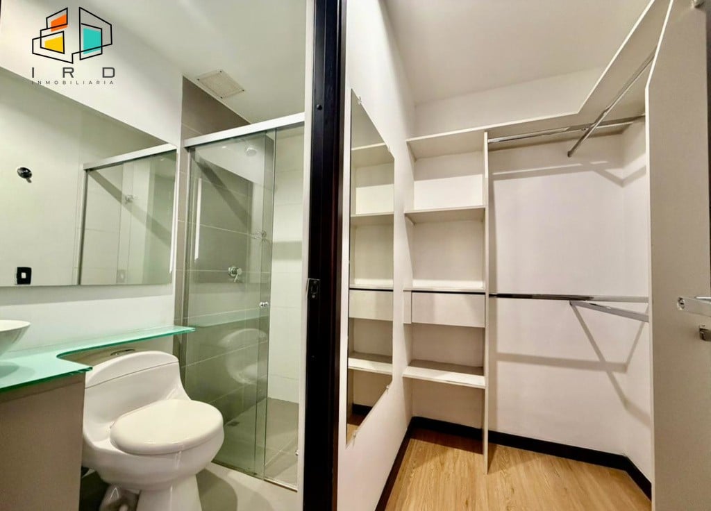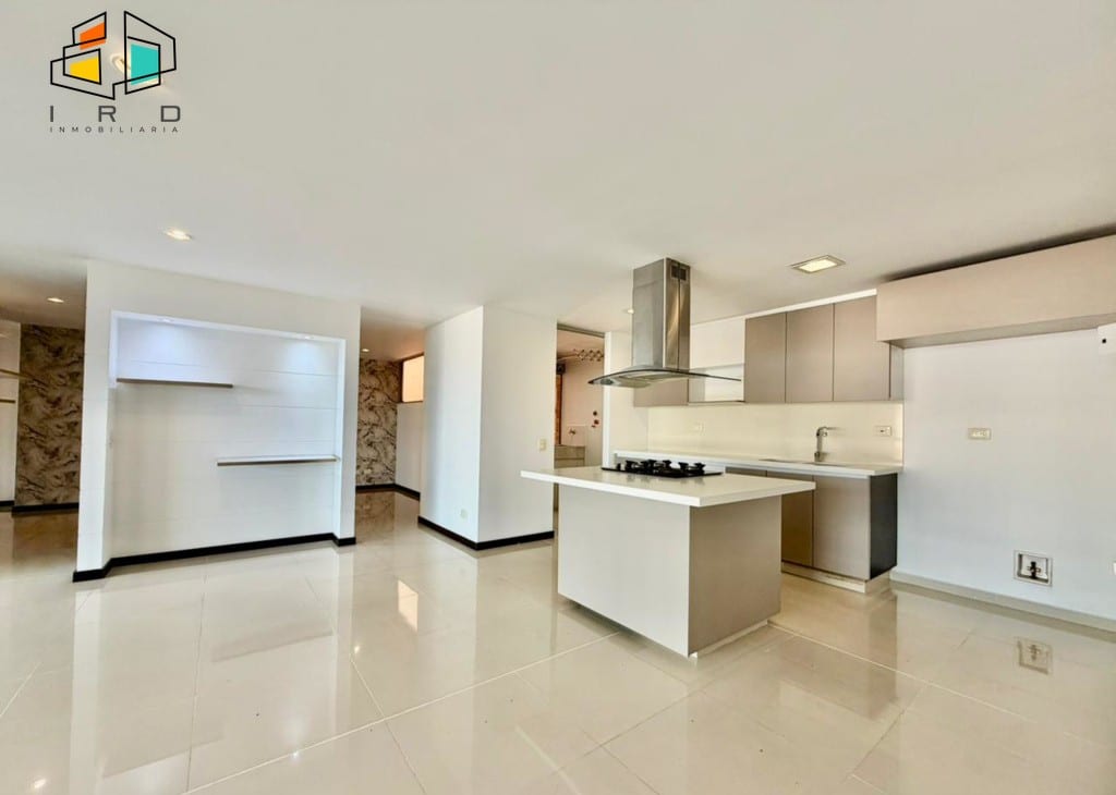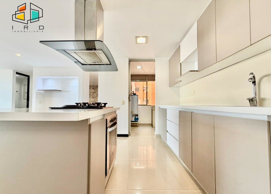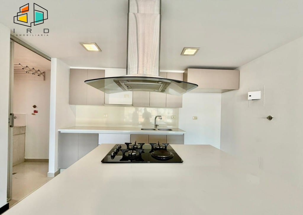 La cocina integral de concepto abierto es un sueño para cualquier chef, con acabados de alta calidad, gabinetes superiores e inferiores en aglomerado blanco y gris, horno, campana extractora, cubierta de cuatro puestos, lavaplatos doble y un mesón tipo isla con barra americana que se integra al área social, ideal para el entretenimiento. La zona de ropas, independiente de la cocina gracias a una puerta corrediza, incluye un calentador de agua.