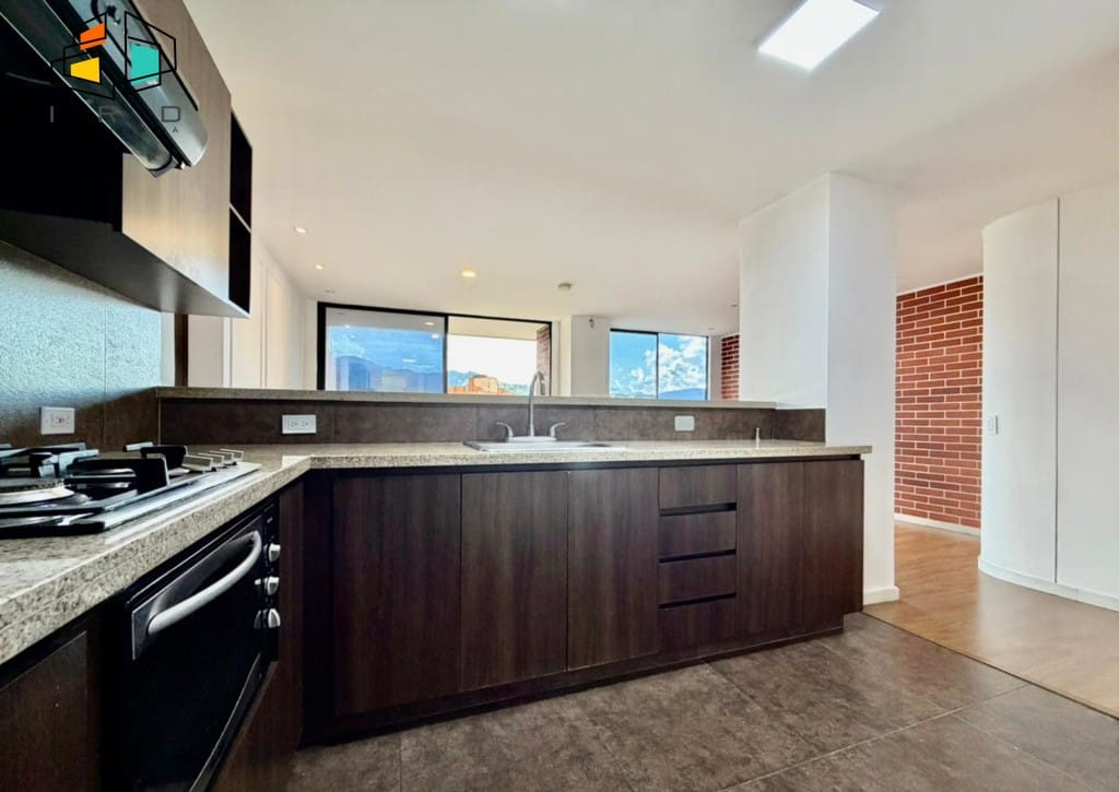 La sala-comedor, con sus amplios espacios, cómodos e iluminados, presenta elegantes pisos de madera y una excelente iluminación natural complementada con moderna iluminación LED. El balcón, generoso en tamaño, ofrece una vista encantadora y amplios ventanales que invitan a la luz natural. La cocina integral de concepto abierto, con acabados en madera de alta calidad, gabinetes superiores e inferiores, horno, campana extractora y cubierta de cuatro puestos a gas, se integra armoniosamente con el área social a través de una práctica barra americana. La zona de ropas incluye calentador de agua.