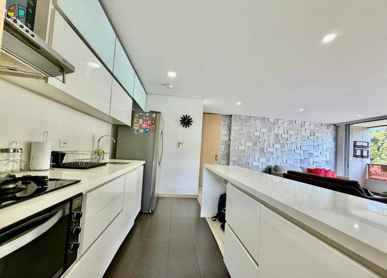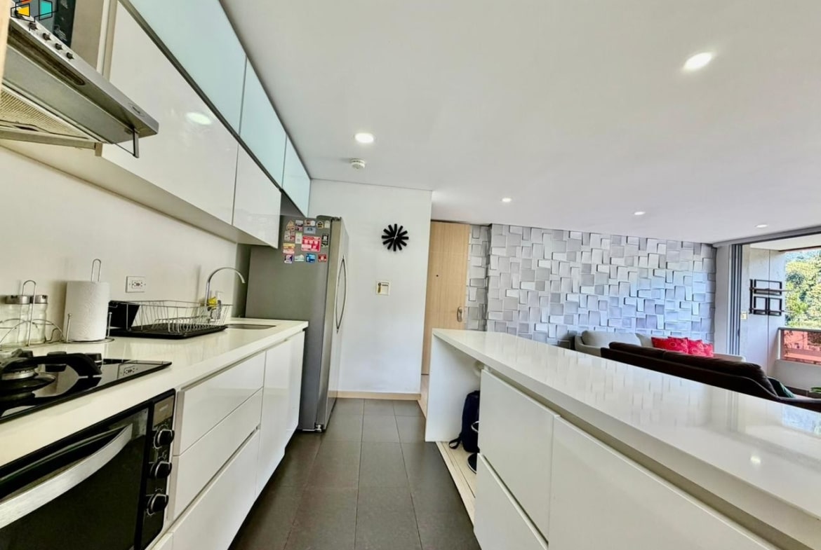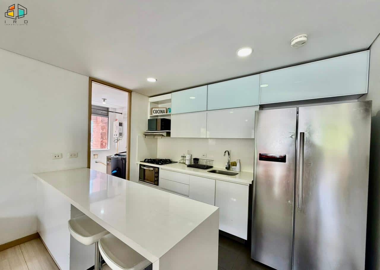 La cocina integral de concepto abierto es un sueño para cualquier chef, equipada con gabinetes superiores e inferiores, campana extractora, cubierta a gas de cuatro puestos y horno. La barra americana integra perfectamente la cocina con la zona social, y todo el espacio está completamente equipado para su comodidad. Adicionalmente, encontrará una zona de ropas independiente con calentador de agua y un práctico hall de alcobas. Incluye un parqueadero privado.