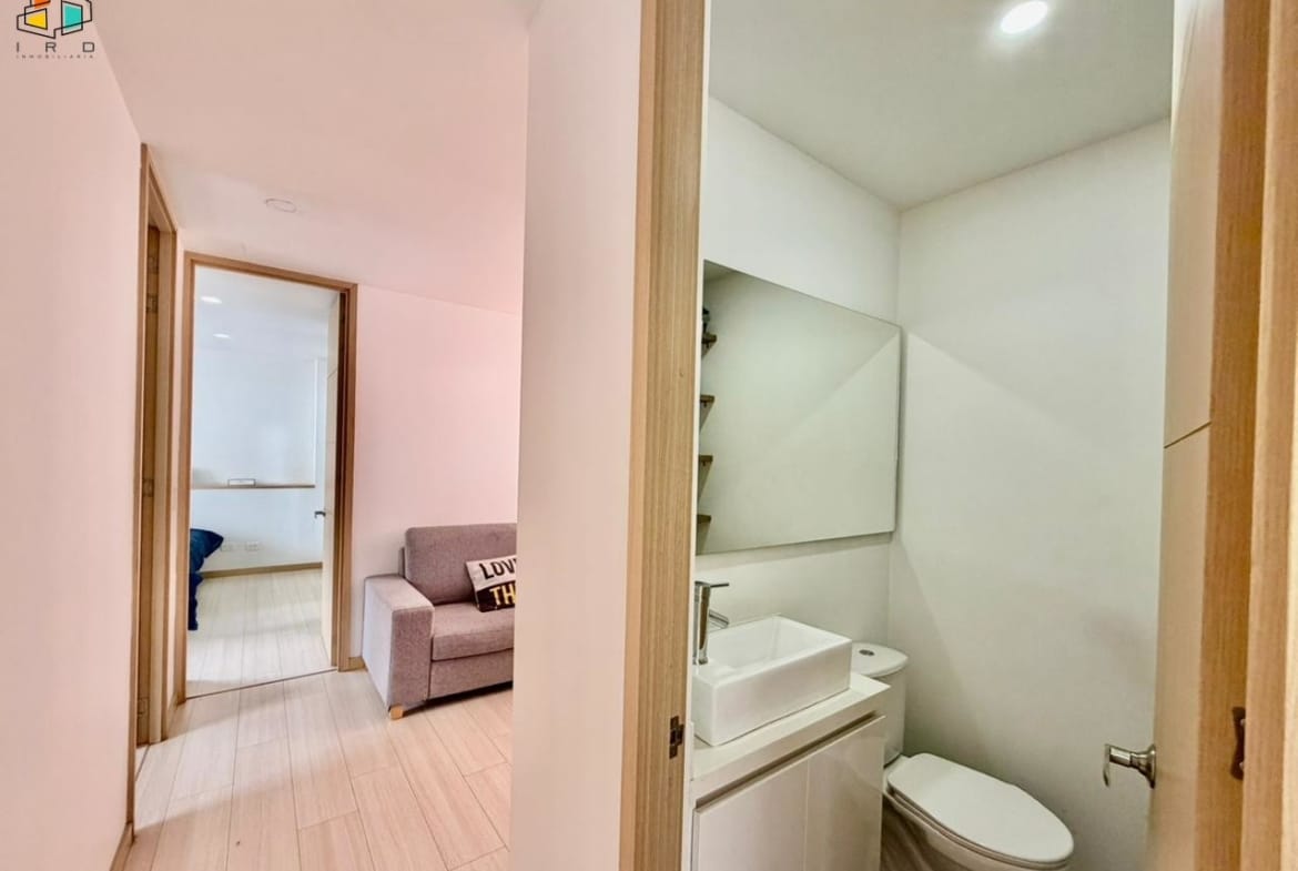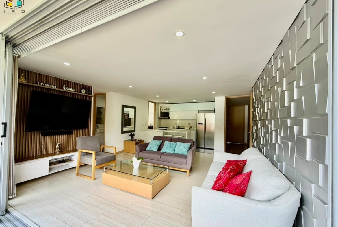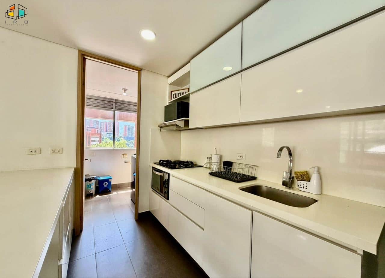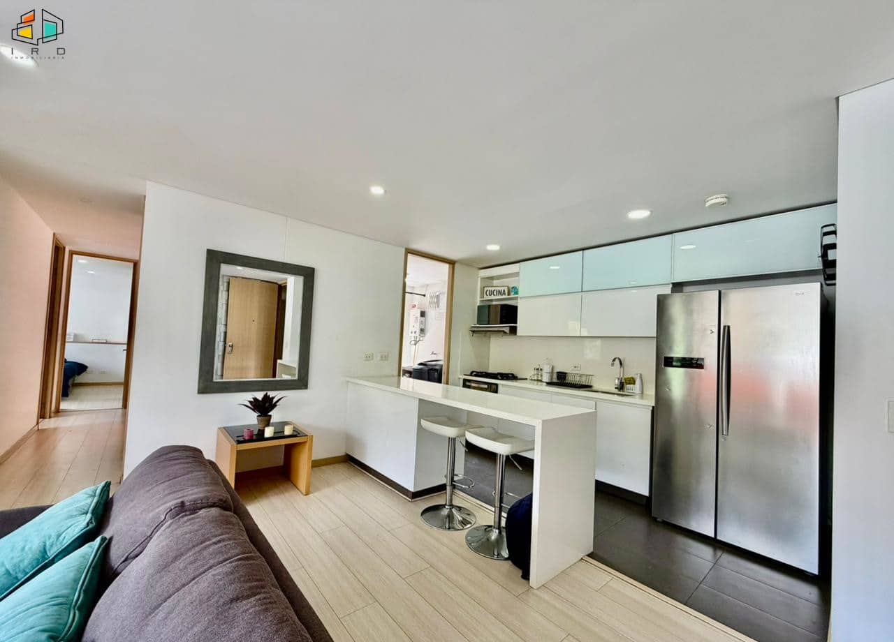 La cocina integral de concepto abierto es un sueño para cualquier chef, equipada con gabinetes superiores e inferiores, campana extractora, cubierta a gas de cuatro puestos y horno. La barra americana integra perfectamente la cocina con la zona social, y todo el espacio está completamente equipado para su comodidad. Adicionalmente, encontrará una zona de ropas independiente con calentador de agua y un práctico hall de alcobas. Incluye un parqueadero privado.