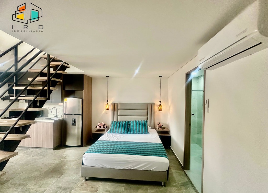 La propiedad destaca por sus acabados modernos, mobiliario confortable, pisos en cerámica e iluminación LED, creando ambientes luminosos y acogedores. La seguridad está garantizada con una puerta principal equipada con chapa digital. Además, cuenta con servicios de televisión y Wi-Fi incluidos. El consumo de EPM es asumido en su totalidad por el arrendatario.