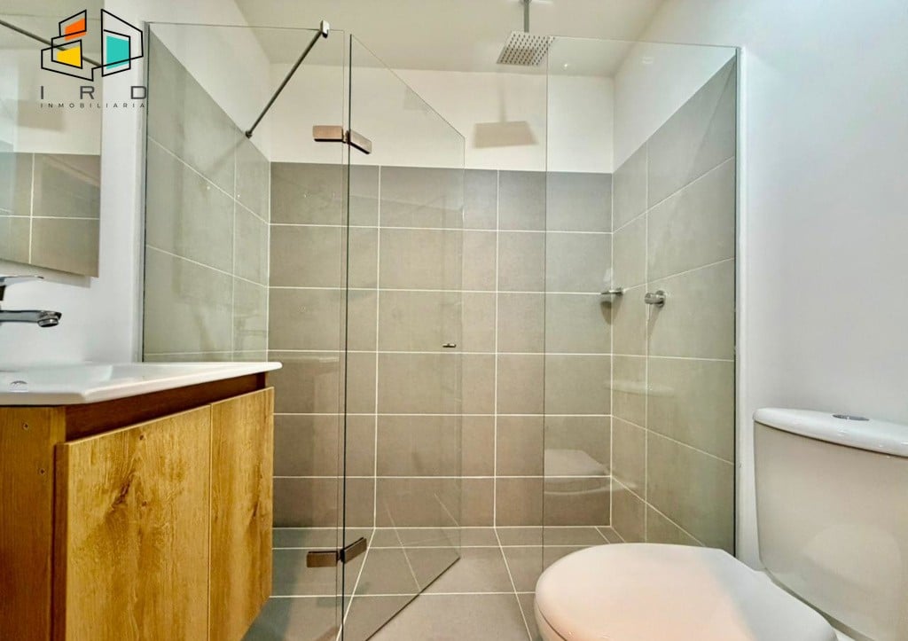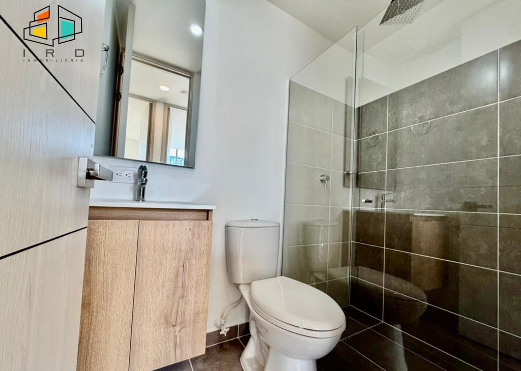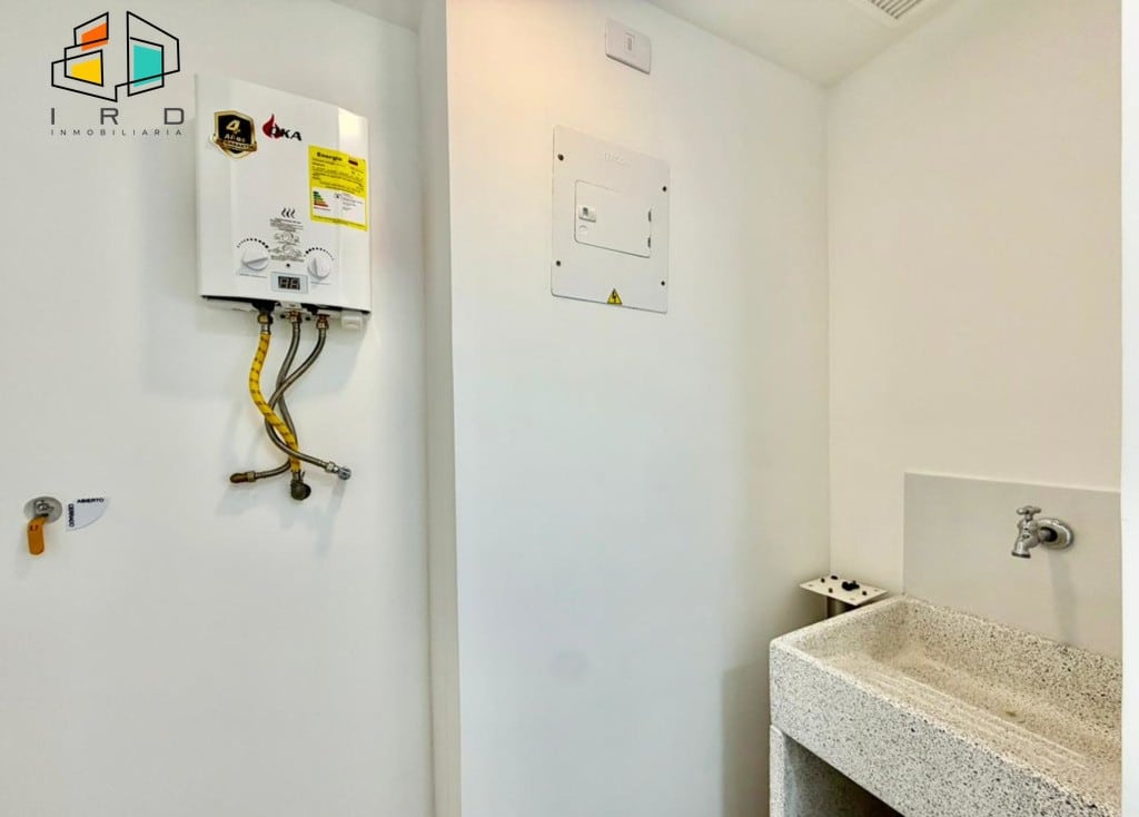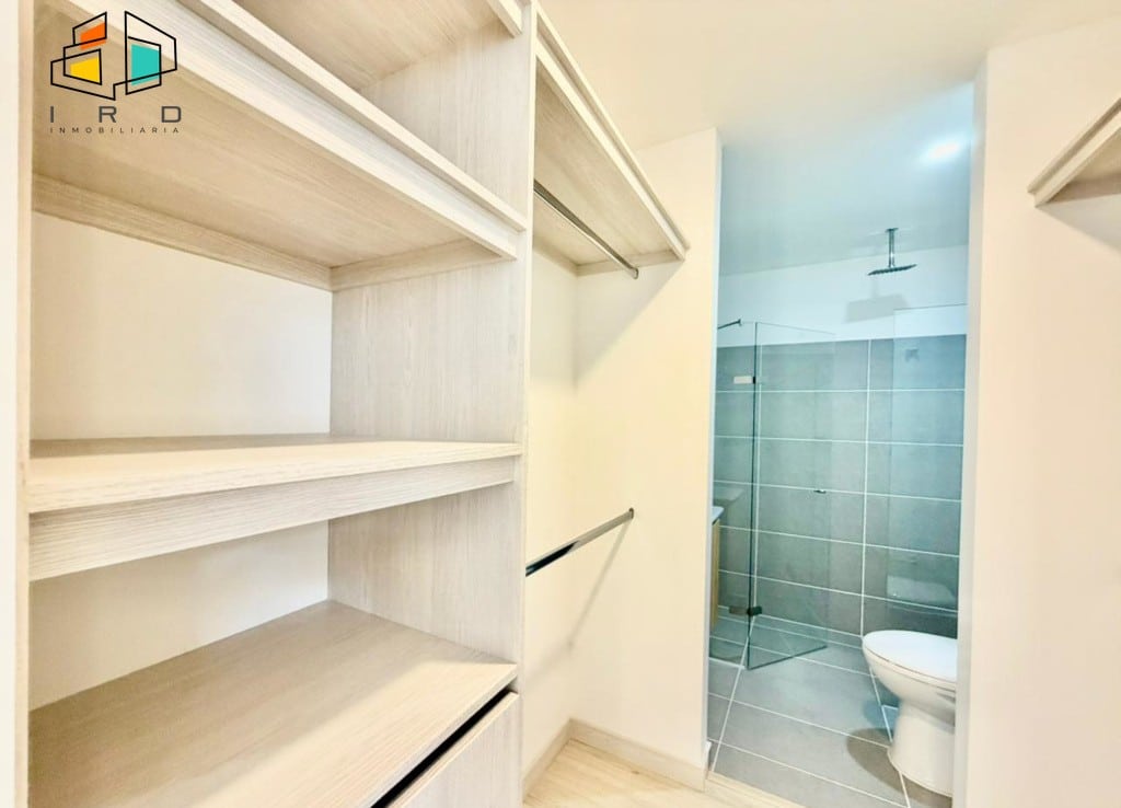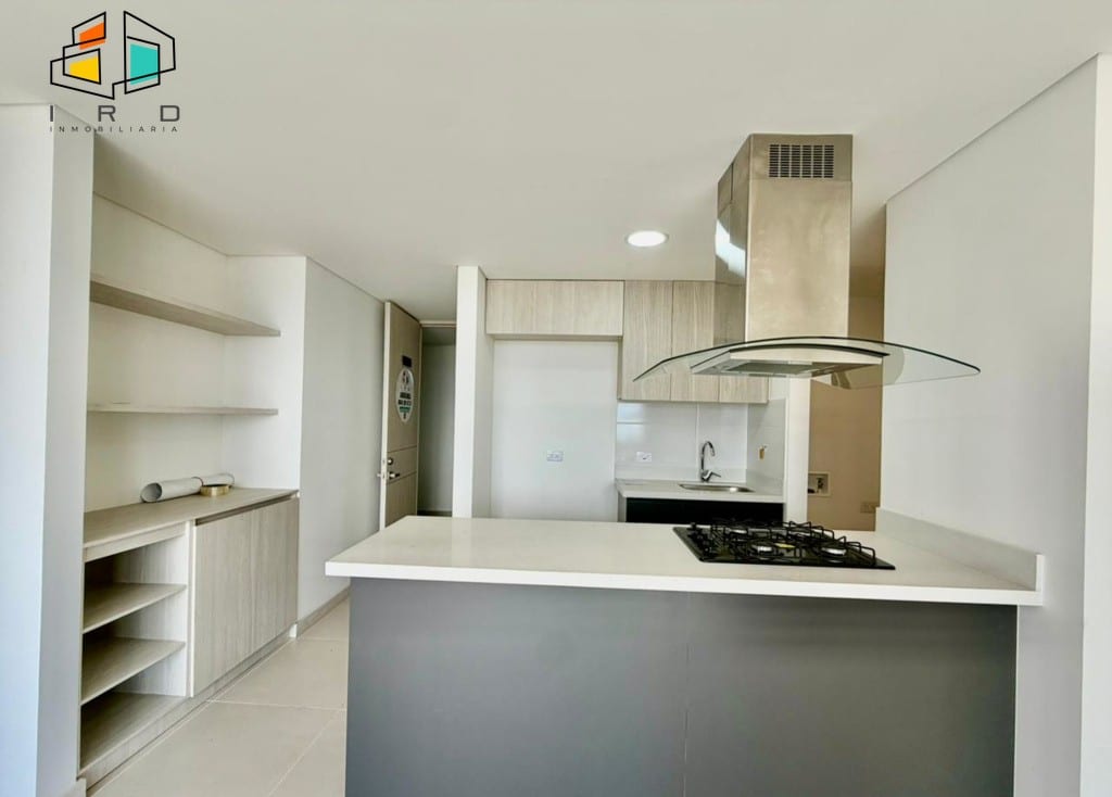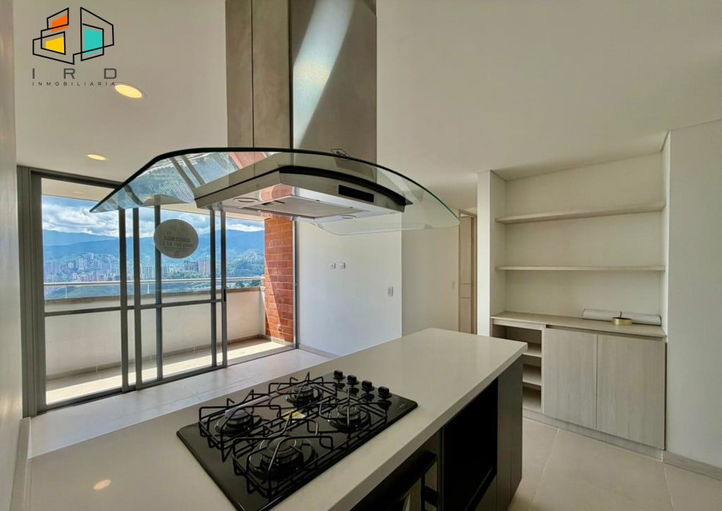 Disfrute de un balcón con vistas agradables y ventanales corredizos en vidrio templado que maximizan la entrada de luz natural, integrando el exterior con los espacios interiores. La cocina integral de concepto abierto, con acabados de alta calidad, incluye horno, campana extractora y muebles superiores e inferiores modernos, complementada por una barra americana que conecta armoniosamente con el área social. La zona de ropas, equipada con calentador de agua, añade practicidad al día a día.