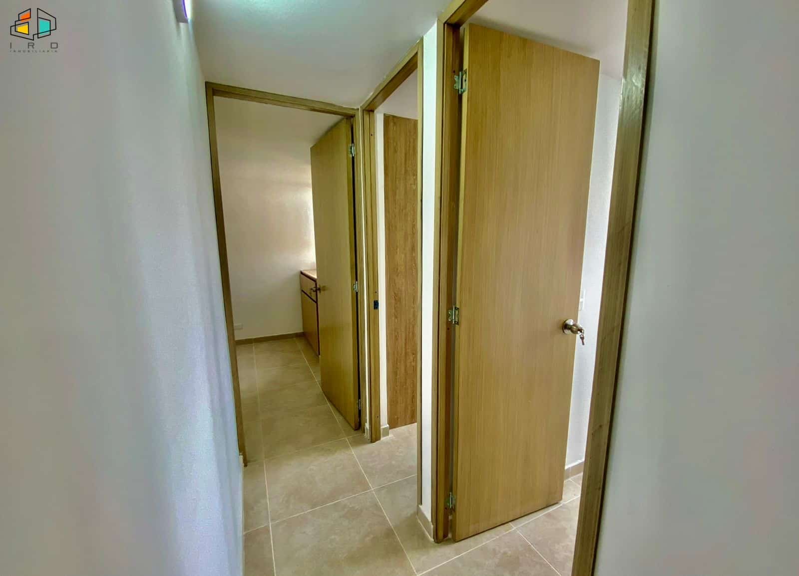 La cocina integral, de diseño moderno y acabados en madera, está equipada con campana extractora y una práctica barra americana que se integra armoniosamente con la zona social. Adicionalmente, encontrará una zona de ropas independiente y un balcón con vistas agradables. El hall de alcobas, con acabados contemporáneos e iluminación LED, realza la amplitud de los espacios.