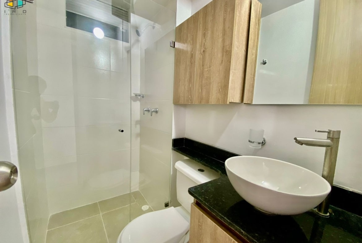 Este moderno apartamento cuenta con tres habitaciones, incluyendo una espaciosa alcoba principal con baño privado, complementada por un segundo baño completo para mayor comodidad. Dispone de tres clósets, ofreciendo amplio espacio de almacenamiento. La sala comedor, con elegantes pisos en cerámica e iluminación LED, crea un ambiente cálido y acogedor.
