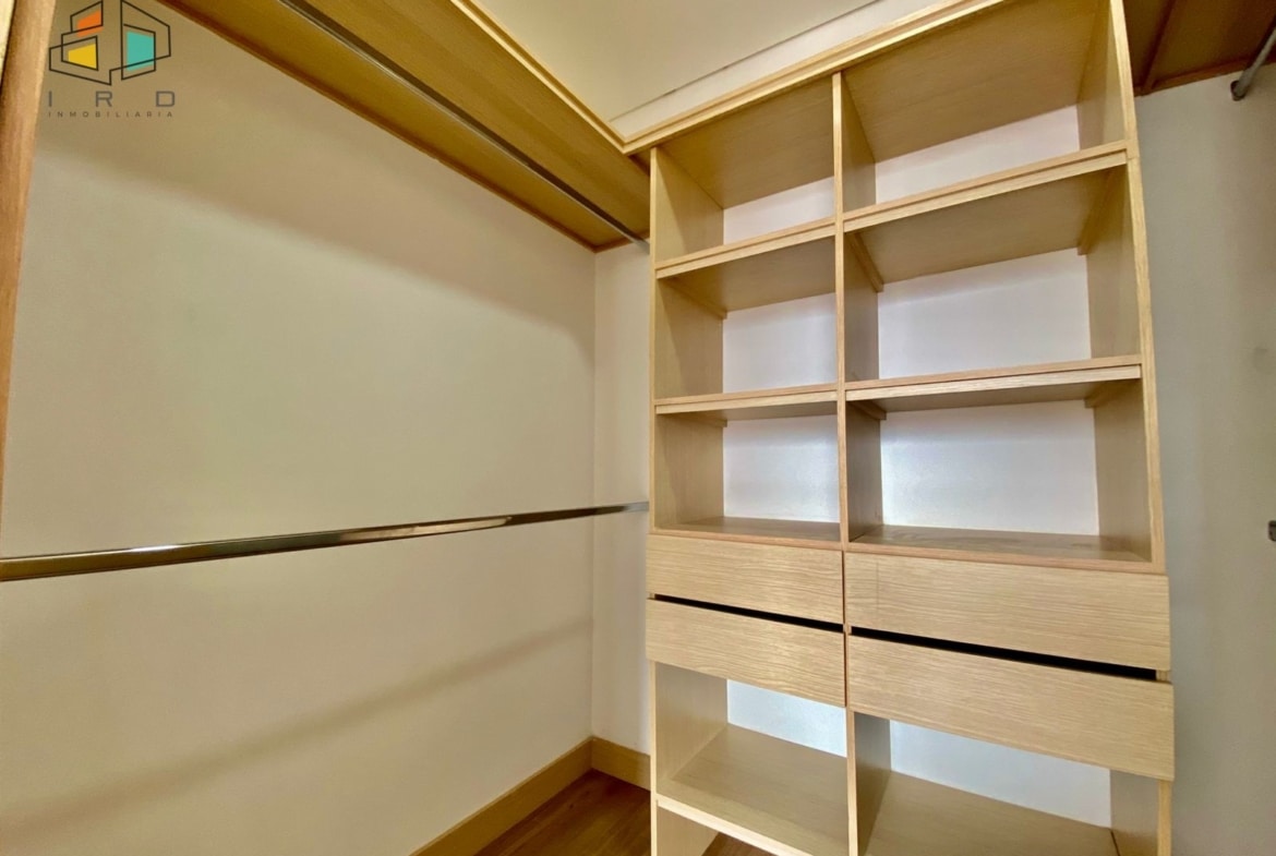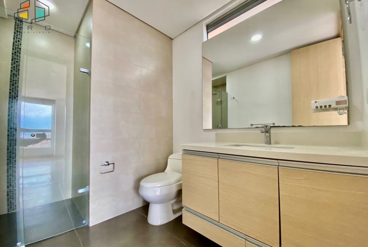 Este espacioso apartamento cuenta con tres habitaciones más una habitación de servicio, ideal para familias o quienes buscan espacio adicional. La habitación principal es un santuario privado con closet y baño integrado, mientras que las habitaciones auxiliares también disponen de closets, asegurando amplio almacenamiento. En total, la propiedad ofrece tres closets y cinco baños, incluyendo el de la alcoba de servicio, garantizando comodidad y privacidad para todos los residentes.