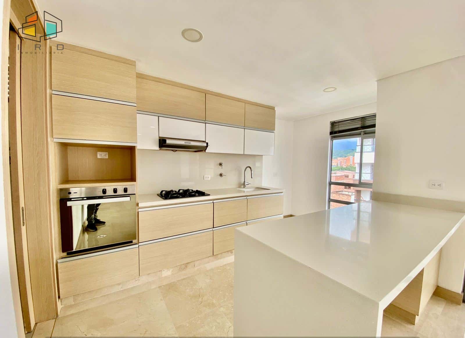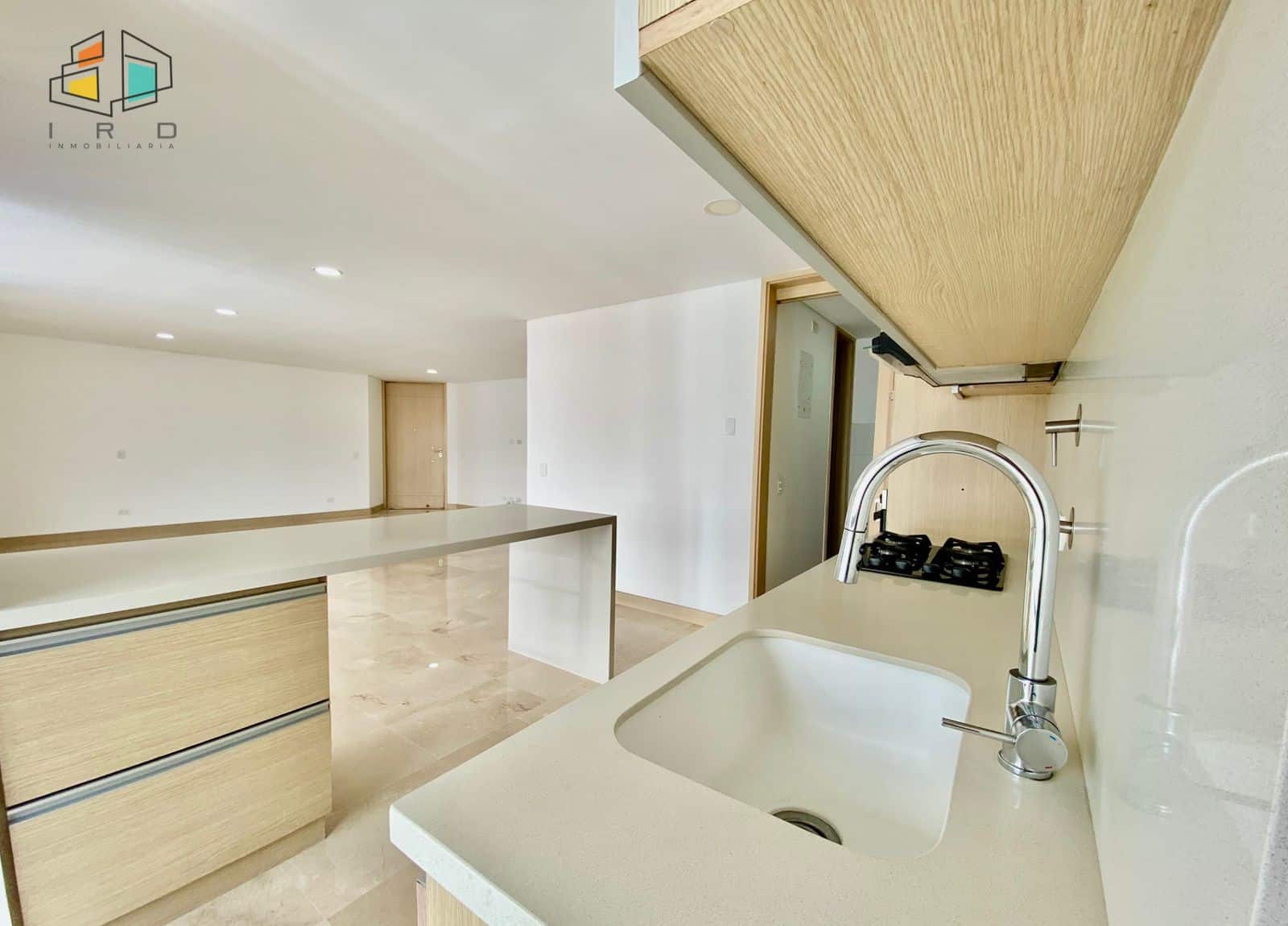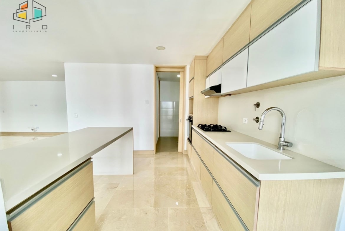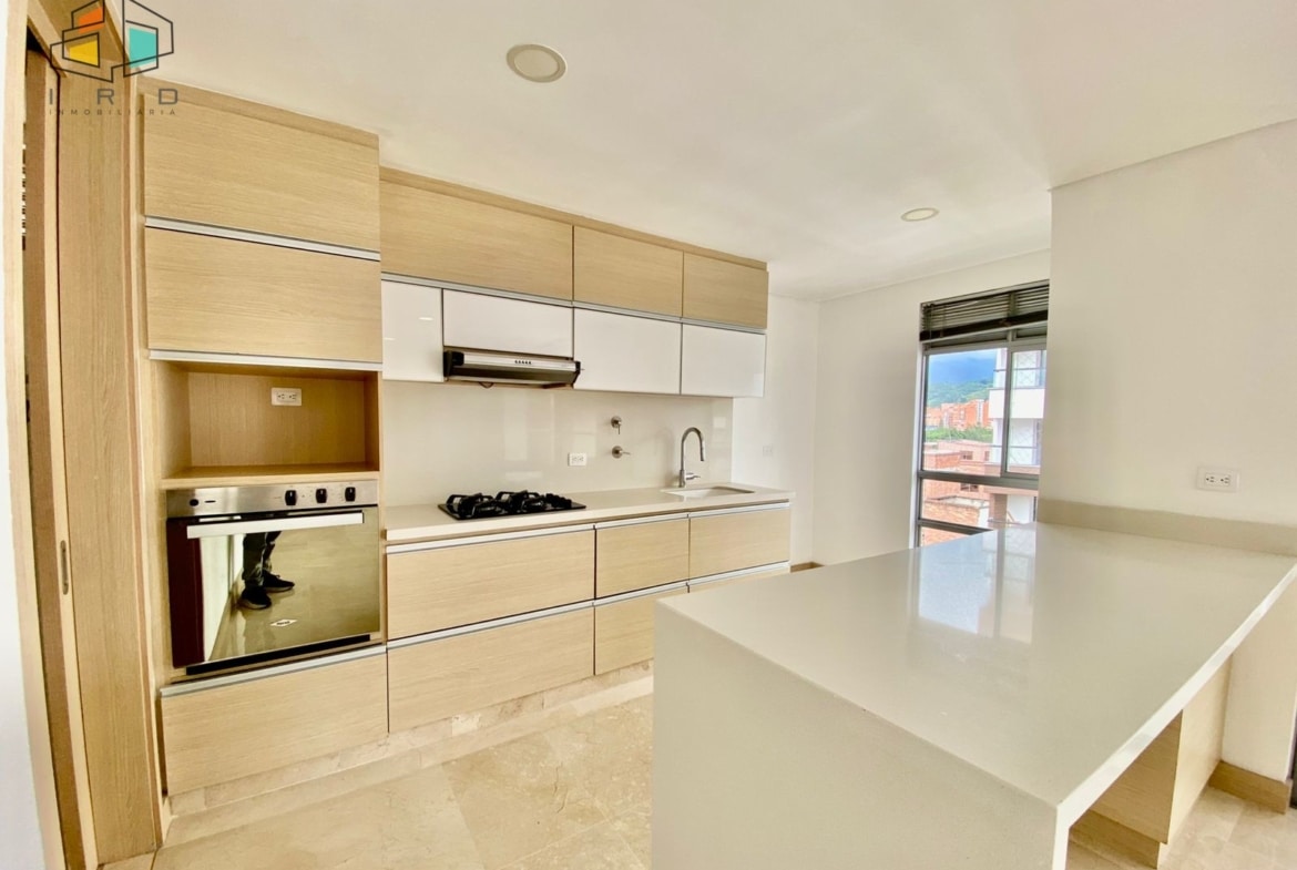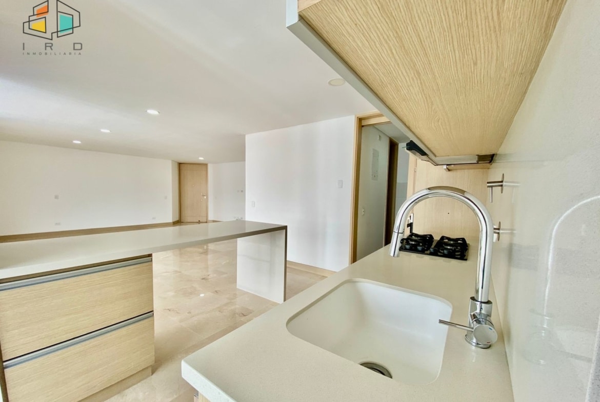 El salón comedor es un espacio generoso y bien distribuido, realzado por pisos en cerámica y una moderna iluminación LED que crea un ambiente cálido y acogedor. La cocina integral es una joya con acabados en madera, gabinetes superiores e inferiores, horno, campana extractora y un elegante mesón de granito pulido, complementada por una práctica barra americana que se integra armoniosamente con el área social del inmueble, perfecta para el entretenimiento.