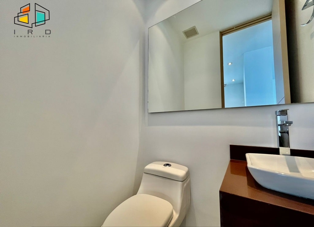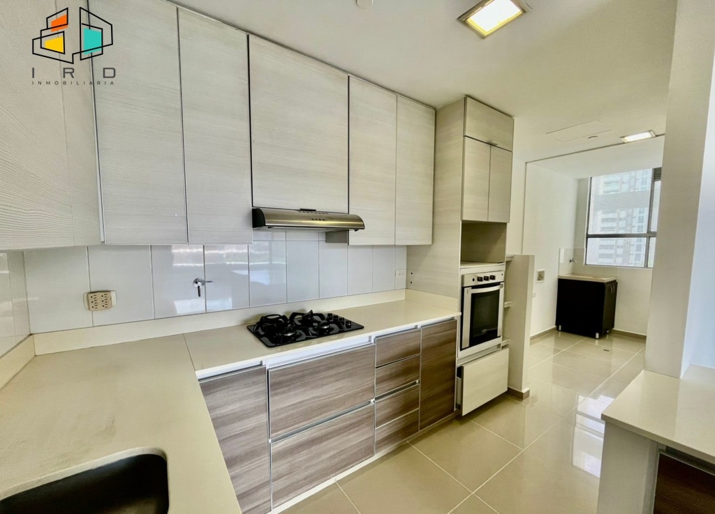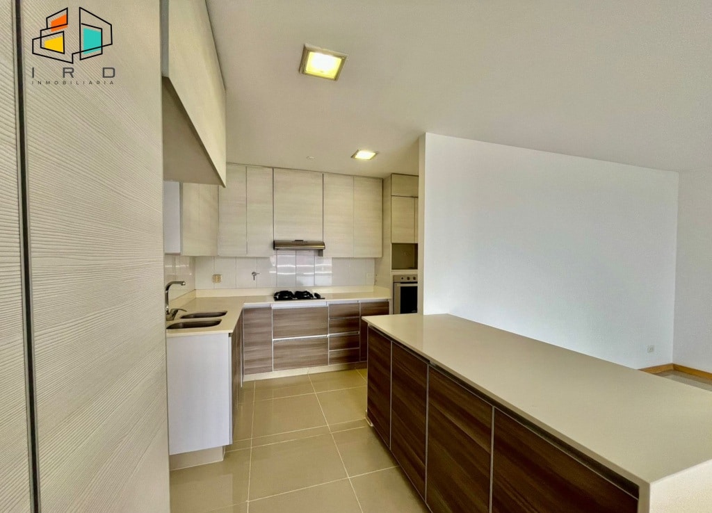 El salón comedor, amplio, espacioso e inundado de luz natural, presenta elegantes pisos de porcelanato y una moderna iluminación LED. El balcón, generoso en tamaño, ofrece una vista panorámica de la ciudad a través de ventanales de pared a pared que maximizan la entrada de luz natural en todos los espacios. La cocina integral de concepto abierto es un deleite para los amantes de la gastronomía, con muebles superiores e inferiores en acabados de madera, horno, campana extractora, cubierta de cuatro puestos a gas y una barra americana que se integra armoniosamente con el área social. La zona de ropas incluye un calentador de agua para su conveniencia.