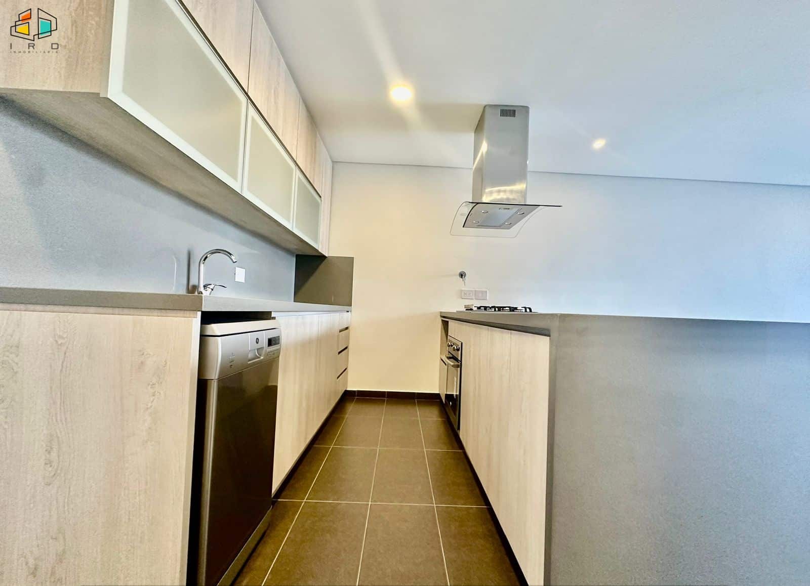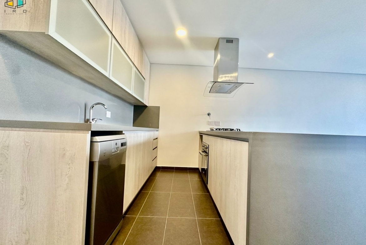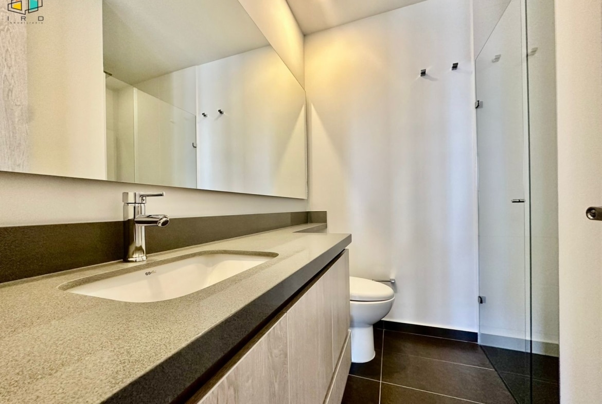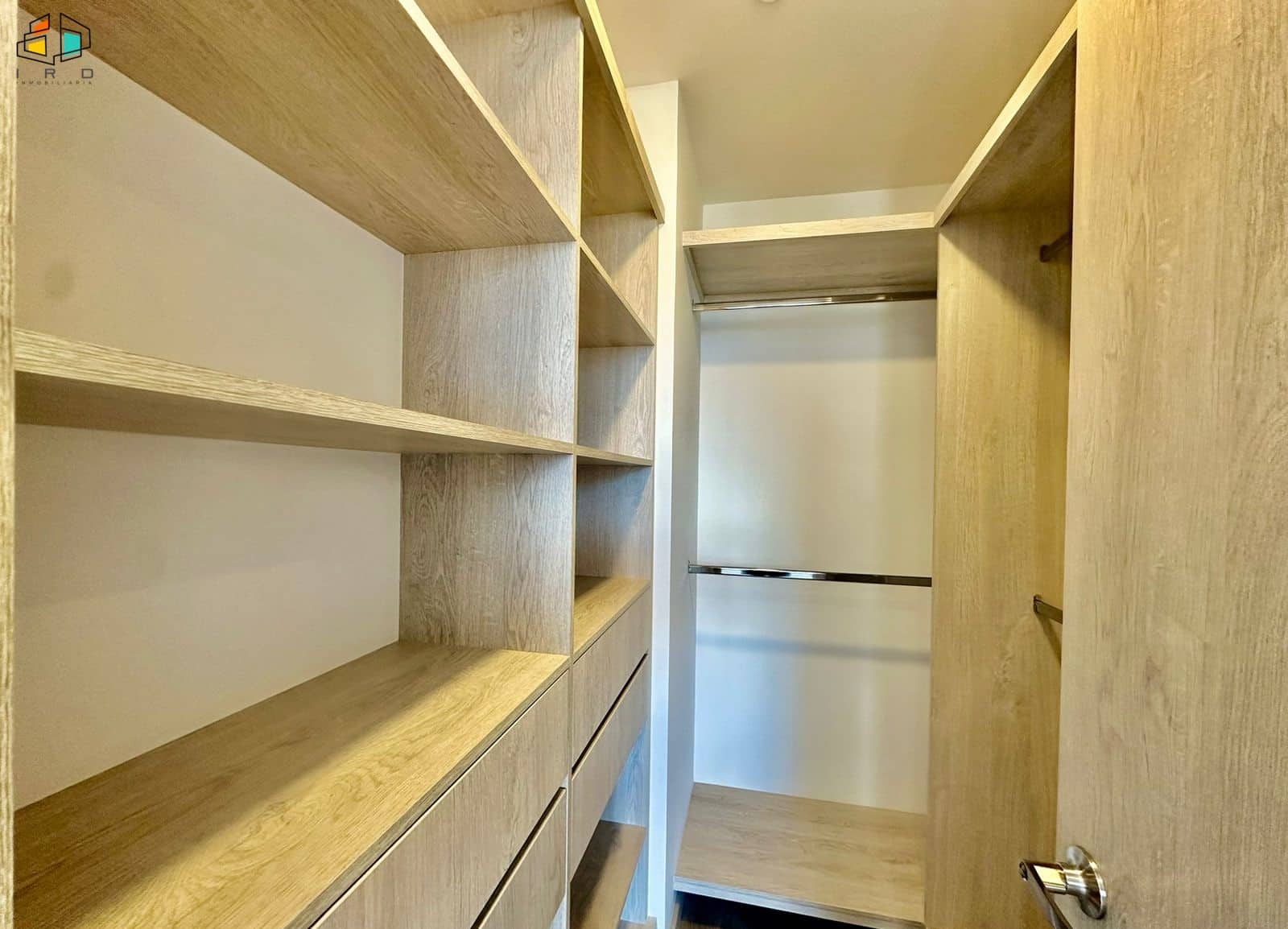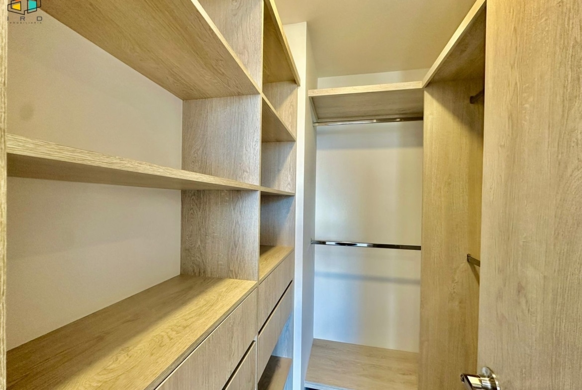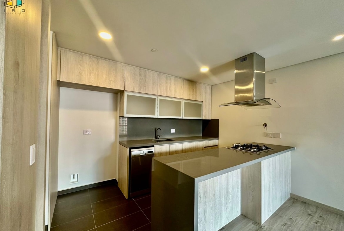 El amplio y luminoso salón comedor, con elegantes pisos de madera e iluminación LED, se integra armoniosamente con un generoso balcón que ofrece una vista cautivadora. La cocina integral, de concepto abierto y diseño moderno, presenta acabados en madera, lavaplatos eléctrico, horno, campana extractora y una funcional barra americana que conecta con el área social, ideal para el entretenimiento. Además, cuenta con una zona de ropas independiente equipada con calentador de agua.