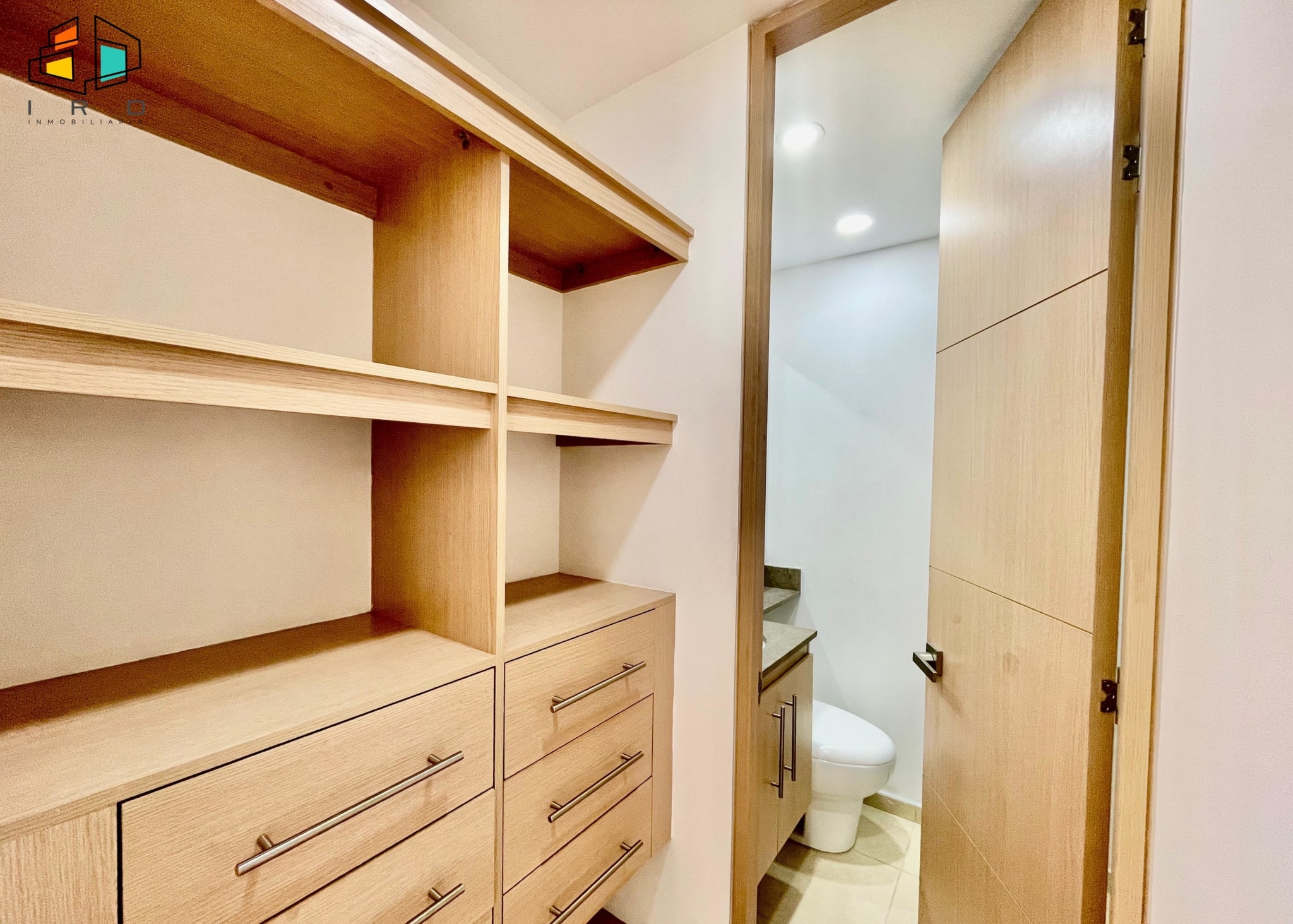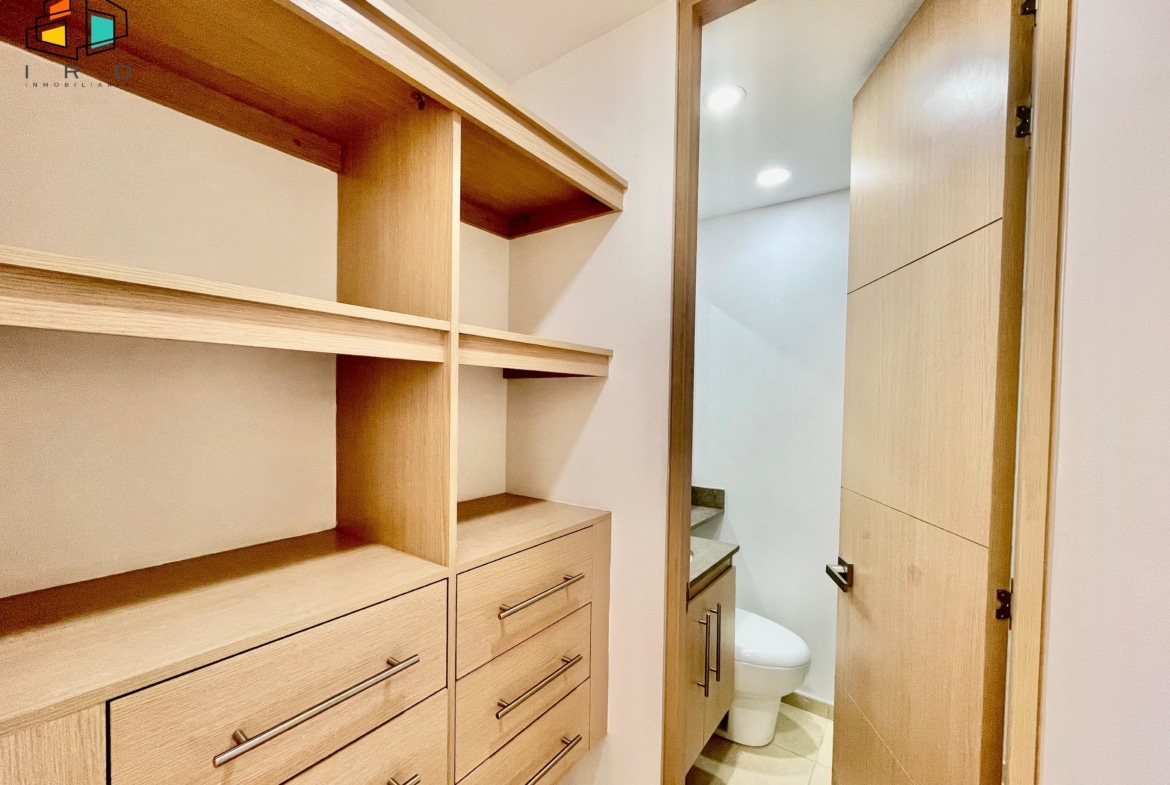 La cocina integral de concepto abierto, con modernos acabados en madera, horno y campana extractora, es ideal para los amantes de la gastronomía. La zona de ropas incluye calentador de agua, y los pisos combinan la durabilidad de la cerámica en áreas sociales con la calidez de la madera en las habitaciones. Además, la propiedad incluye un parqueadero y un cuarto útil.