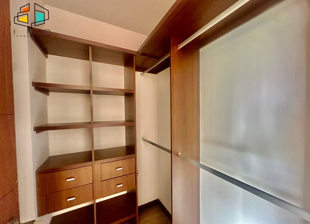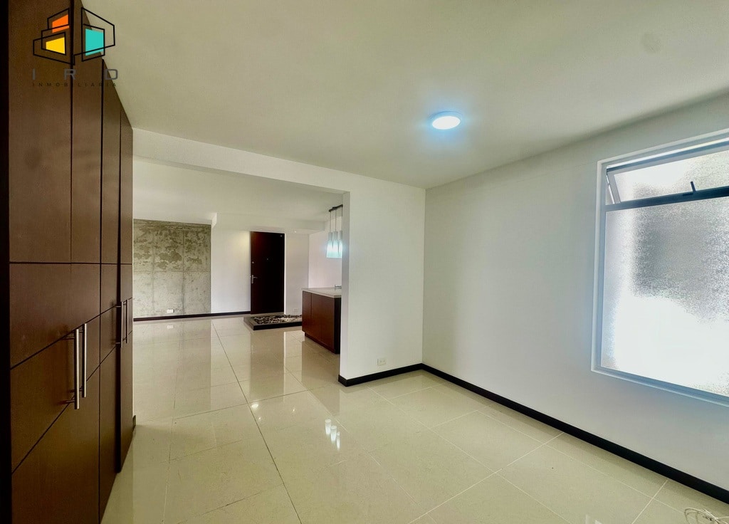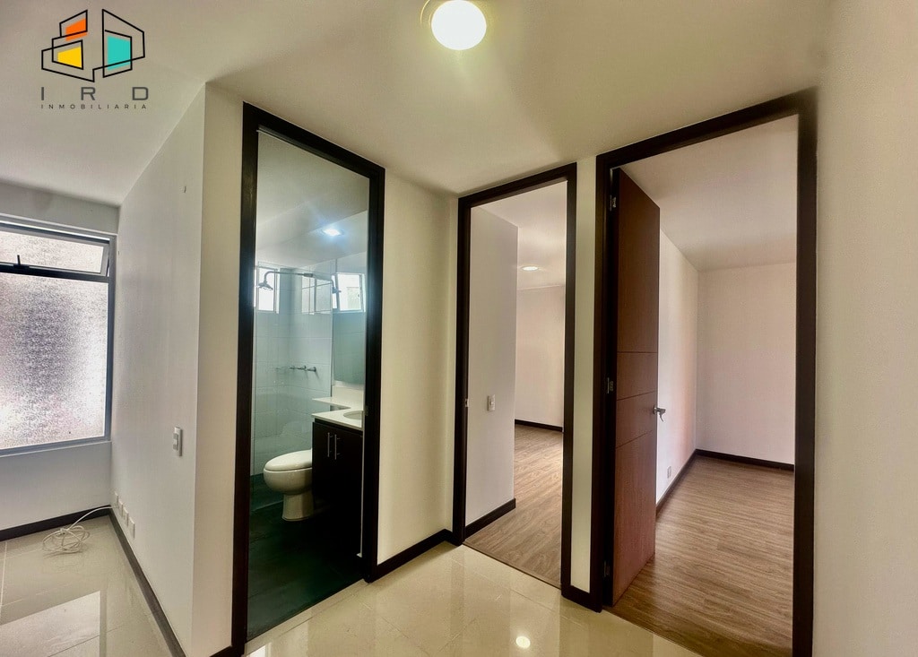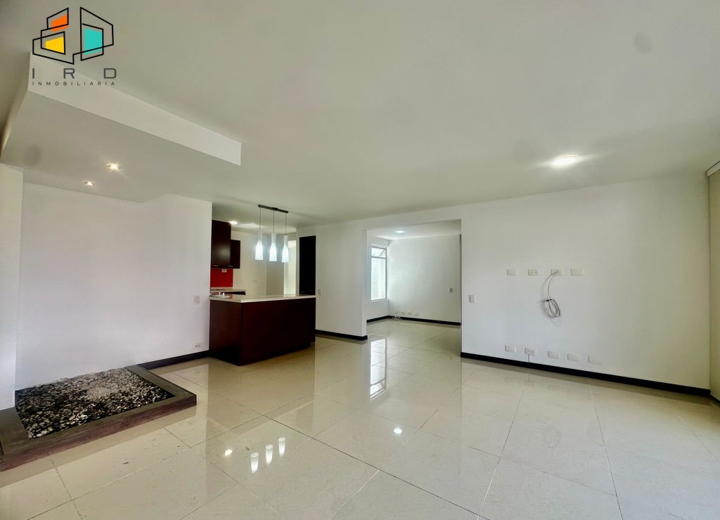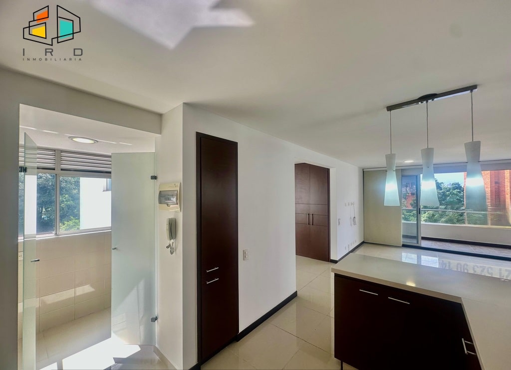 La cocina integral de concepto abierto, con acabados en madera, está completamente equipada con horno, campana extractora, alacena, cubierta de cuatro puestos a gas y un mesón en forma de U con barra americana que conecta armoniosamente con la zona social. La zona de ropas, independiente de la cocina mediante una puerta de vidrio, incluye calentador de paso. Los pisos combinan la elegancia del porcelanato en áreas sociales y la calidez de la madera en las habitaciones.