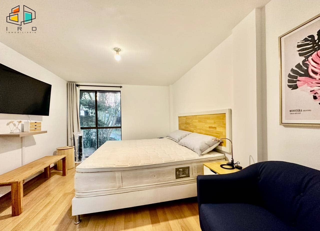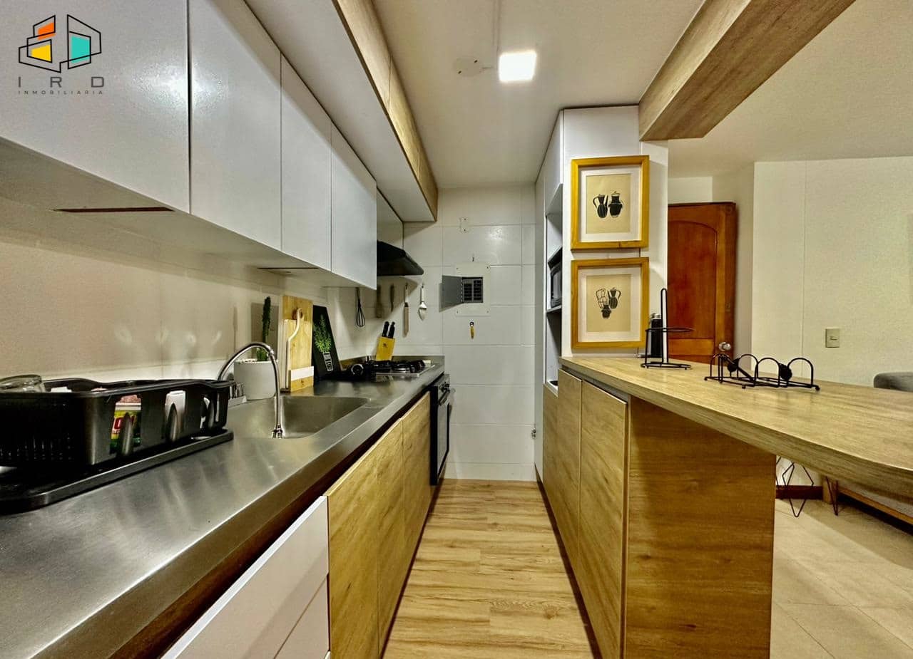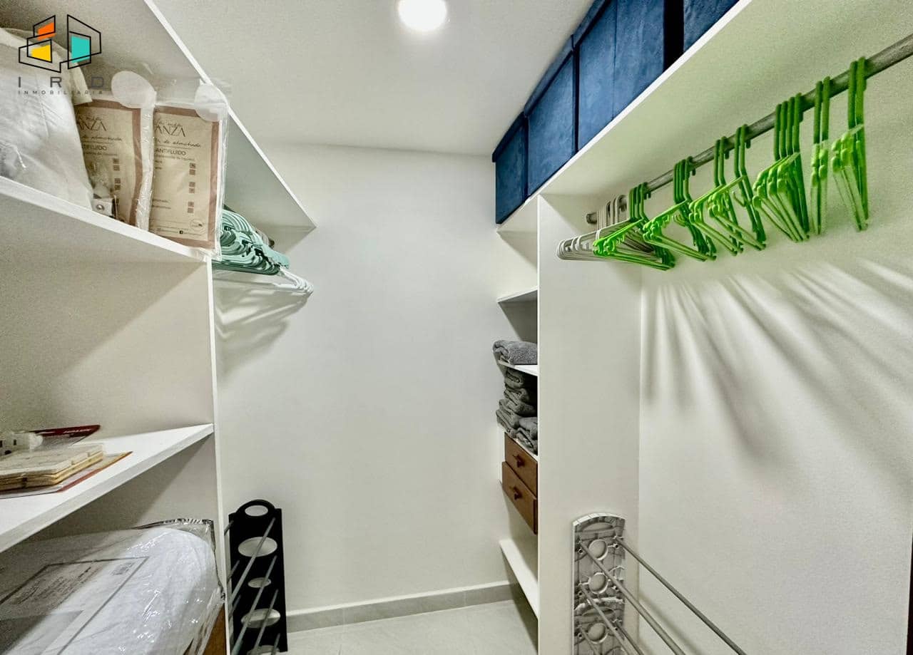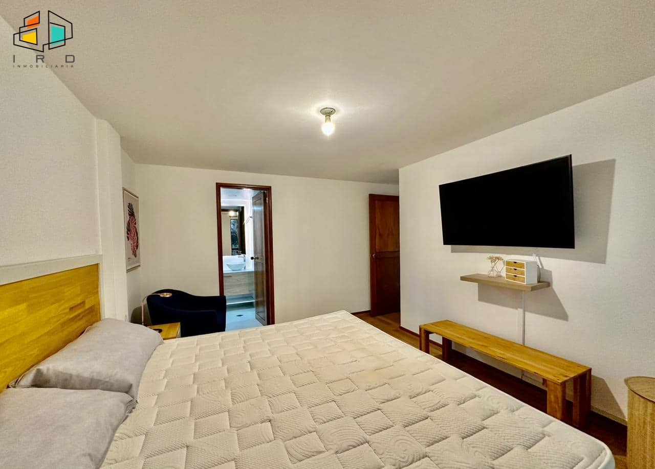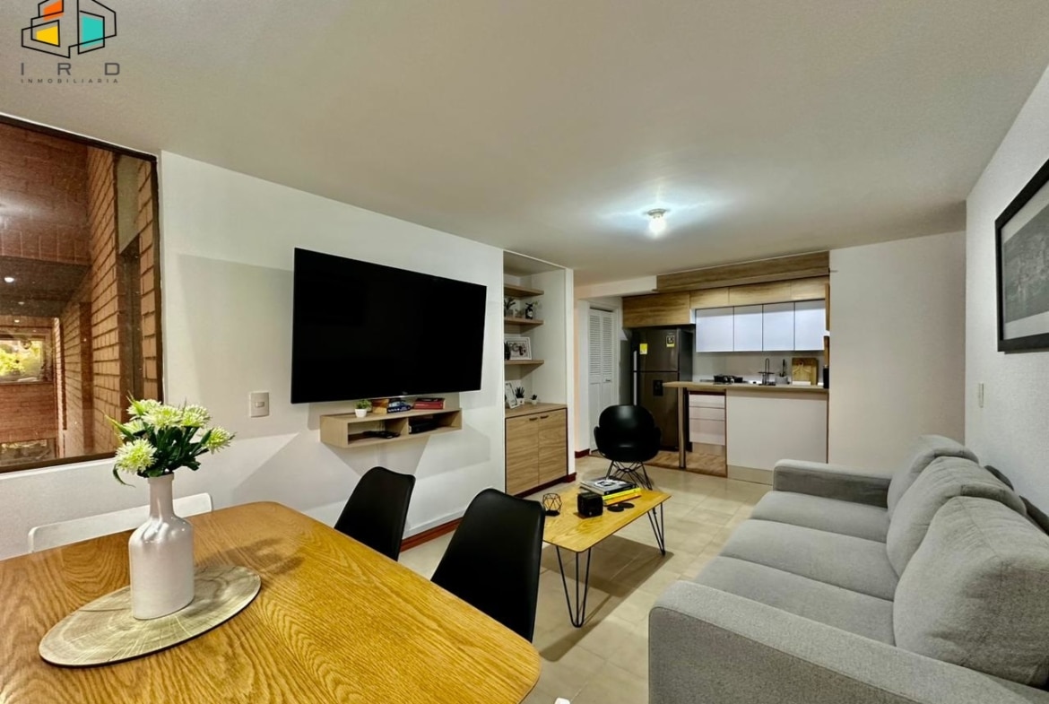 Este moderno apartamento cuenta con dos habitaciones, la principal con baño privado y vestier, y la auxiliar con closet. Dispone de dos baños completos, incluyendo un baño social. La cocina integral abierta, con acabados en madera en sus gabinetes superiores e inferiores, se integra armoniosamente al área social a través de una práctica barra americana. Está equipada con horno de 4 puestos a gas y campana extractora. Adicionalmente, cuenta con una cómoda zona de ropas.