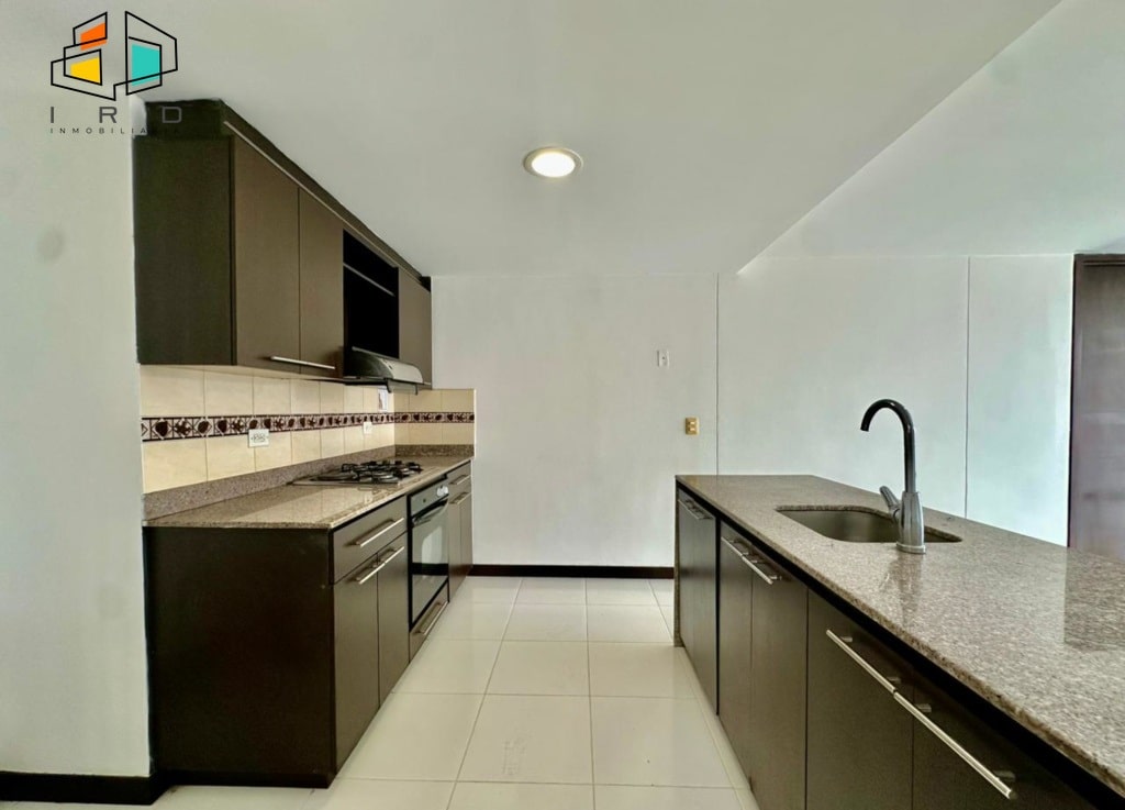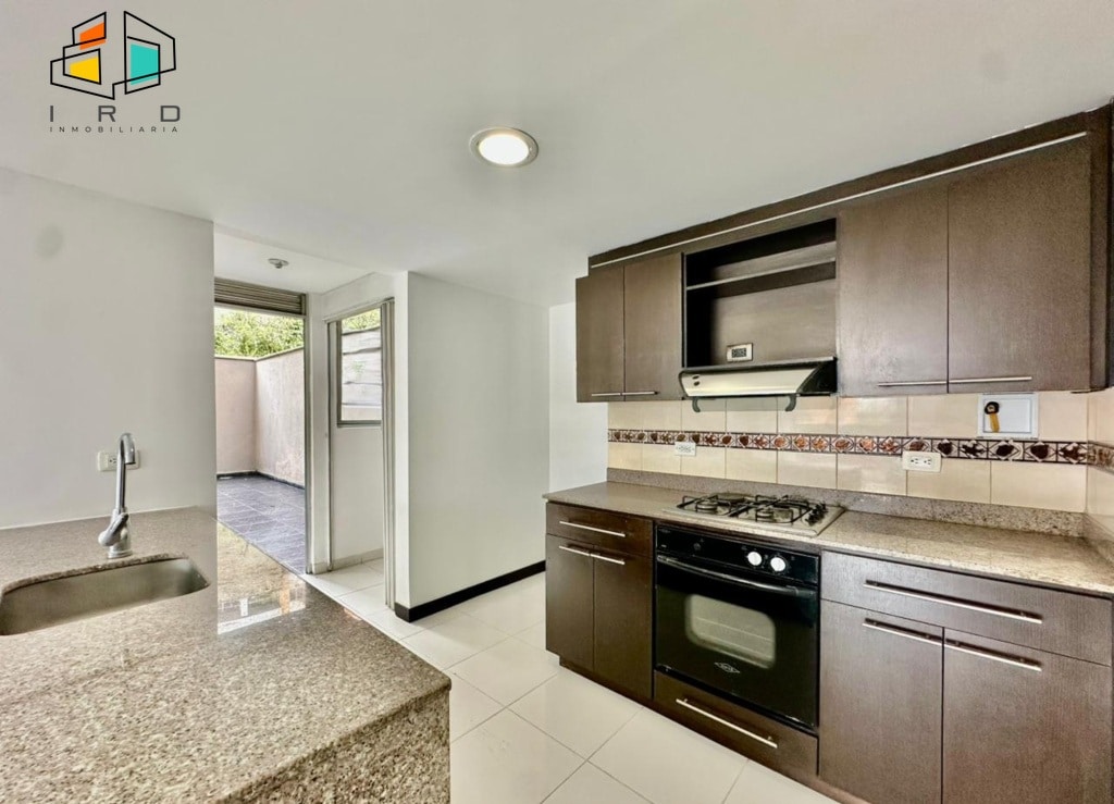 La moderna cocina integral de concepto abierto, con acabados en madera, está equipada con horno, campana extractora, gabinetes superiores e inferiores, y una práctica barra americana que conecta armoniosamente con el área social. La zona de ropas, con calentador de agua, tiene acceso directo a la terraza interna.
