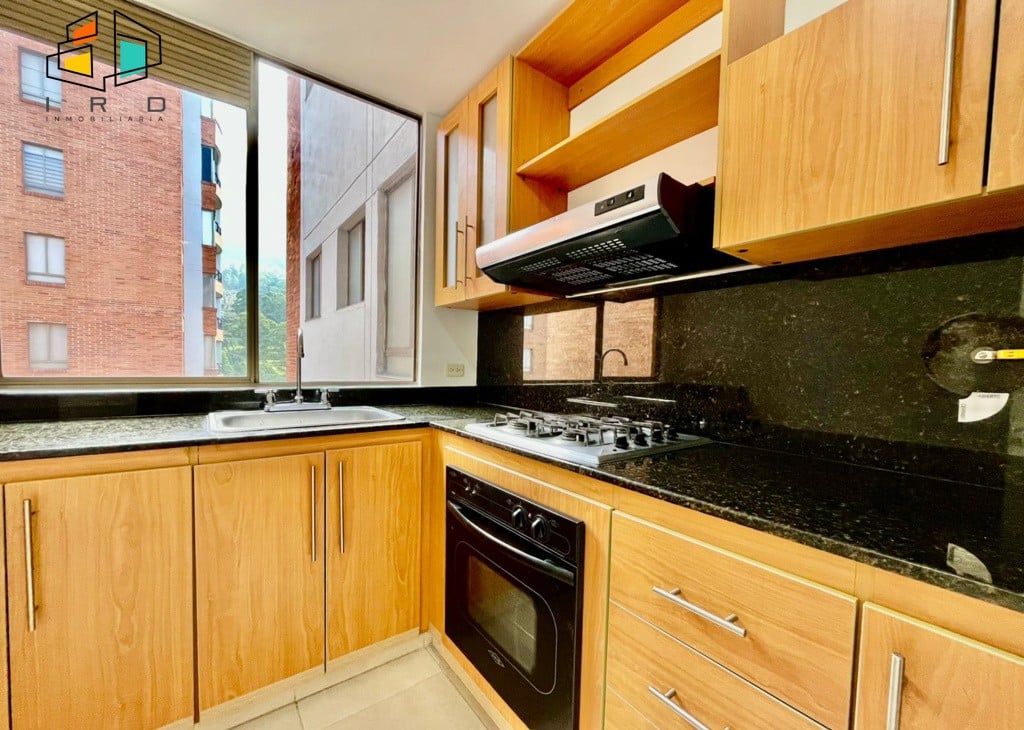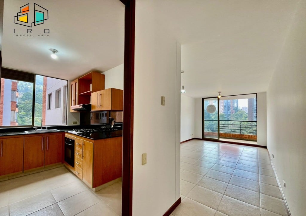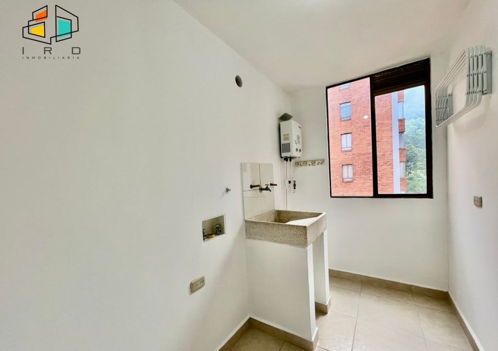 El balcón, amplio y con una vista inigualable de la ciudad de Medellín, invita a momentos de relajación. La cocina integral independiente, moderna y en forma de L, está completamente equipada con muebles superiores e inferiores, acabados de alta calidad, horno, campana extractora y cubierta de cuatro puestos a gas. La zona de ropas independiente incluye calentador de agua. Los pisos en cerámica y la iluminación LED aportan un toque contemporáneo a todo el inmueble.