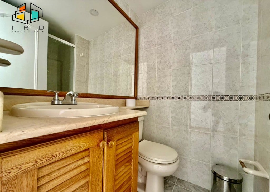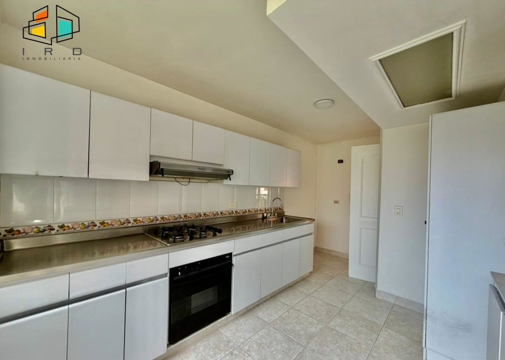 El salón comedor, amplio e iluminado, se distingue por sus pisos en cerámica e iluminación LED, creando un ambiente moderno y acogedor. La cocina integral independiente es una obra maestra de diseño y funcionalidad, con una compuerta giratoria, gabinetes superiores e inferiores en madera blanca, horno, campana extractora, dos mesones laterales y una práctica alacena. La zona de ropas incluye un calentador de agua para su conveniencia.