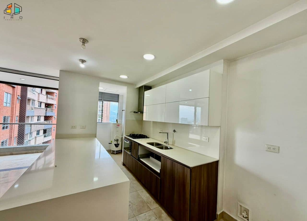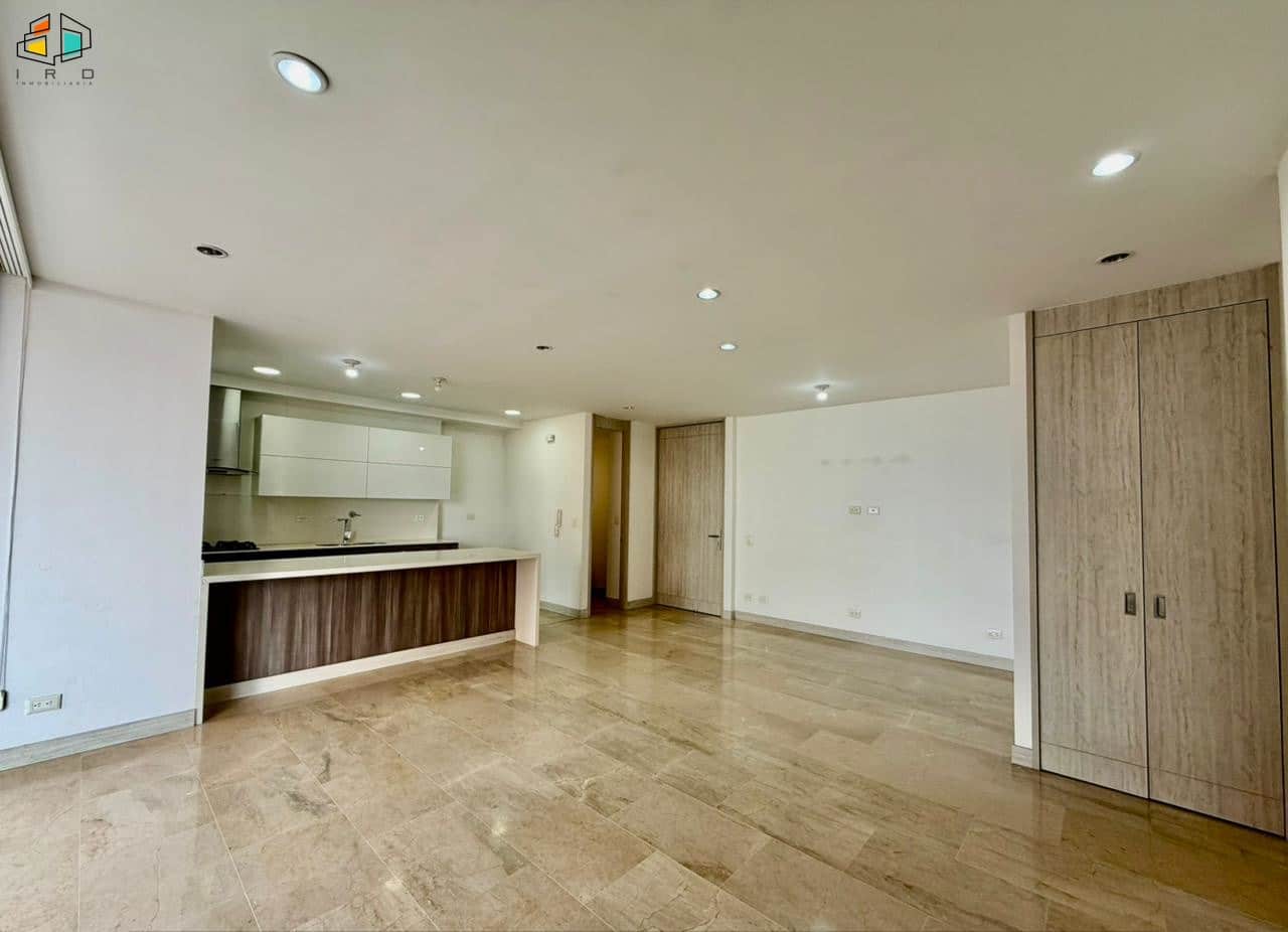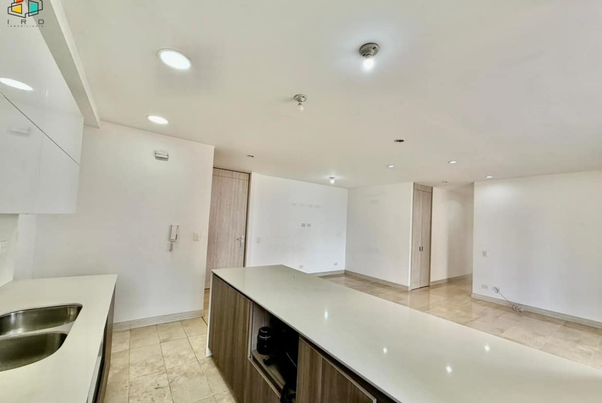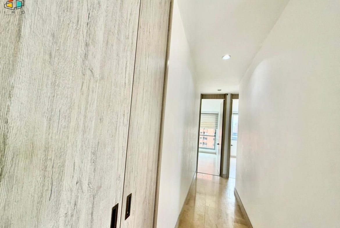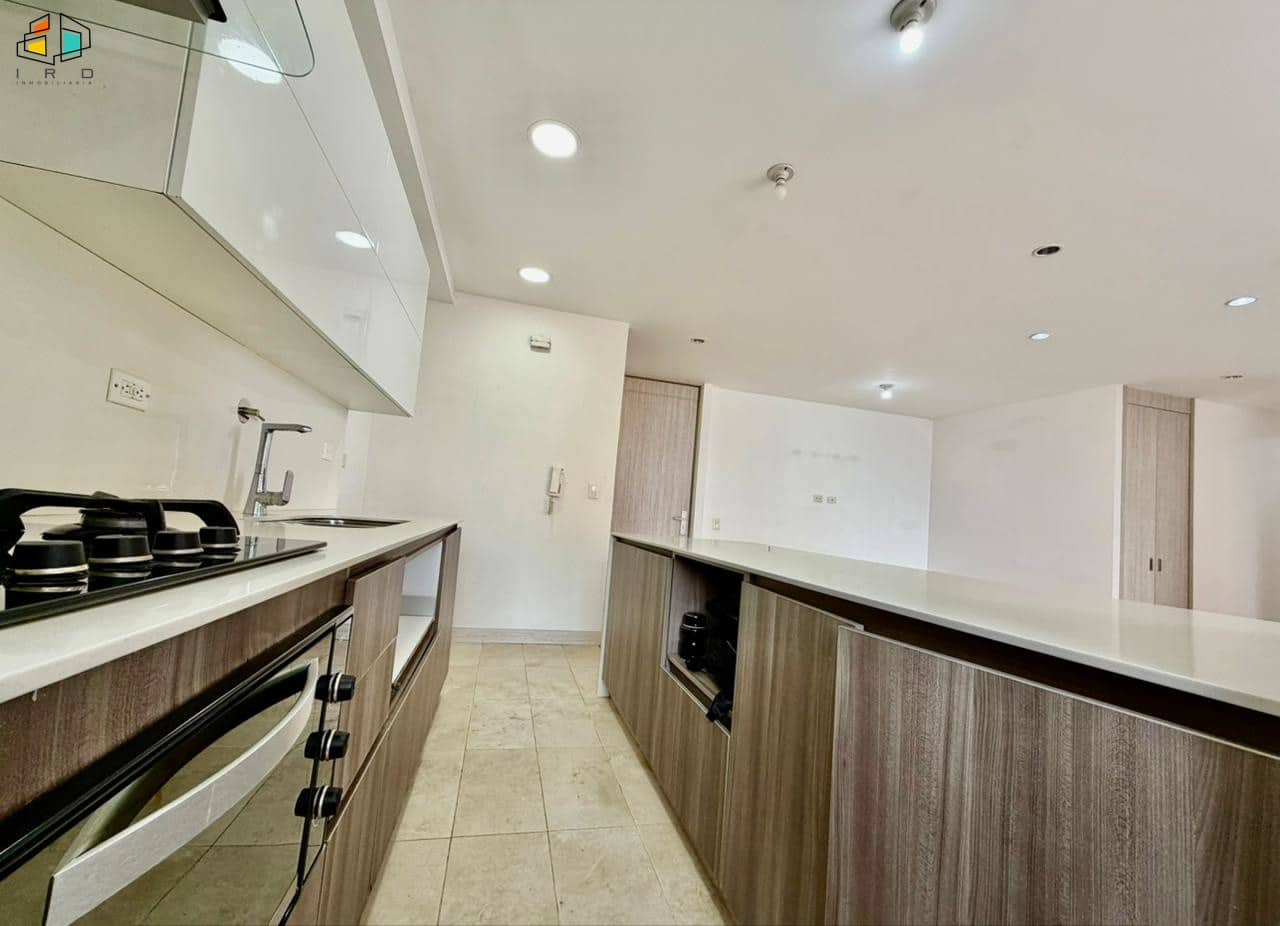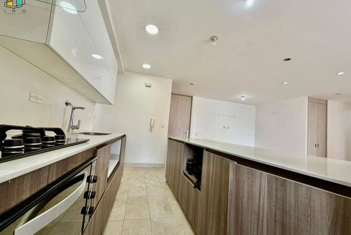 El salón comedor es un espacio generoso con pisos de retal de mármol e iluminación LED, creando un ambiente sofisticado y acogedor. El balcón, con ventanales de piso a techo que abarcan toda la pared, invita a disfrutar de vistas despejadas. La cocina integral de concepto abierto, con acabados modernos y totalmente terminada, está equipada con horno, campana extractora y cubierta de cuatro puestos a gas. Su mesón y barra americana se integran perfectamente con el área social, ideal para el entretenimiento. La zona de ropas incluye un calentador de agua para su comodidad. Los pisos combinan la elegancia del mármol en las áreas sociales y la calidez de la madera en las habitaciones.