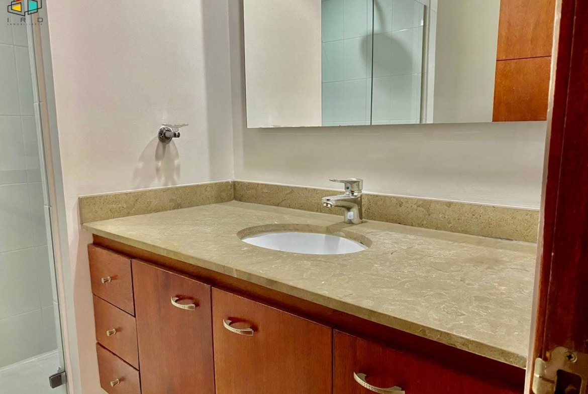 Este luminoso apartamento cuenta con dos habitaciones, destacando un amplio e iluminado dormitorio principal con baño privado y clóset, y una habitación auxiliar con clóset. Un versátil estudio que puede adaptarse como oficina, sala de televisión o biblioteca, ofrece un espacio ideal para personalizar según sus necesidades. Dispone de dos baños completos con acabados modernos.