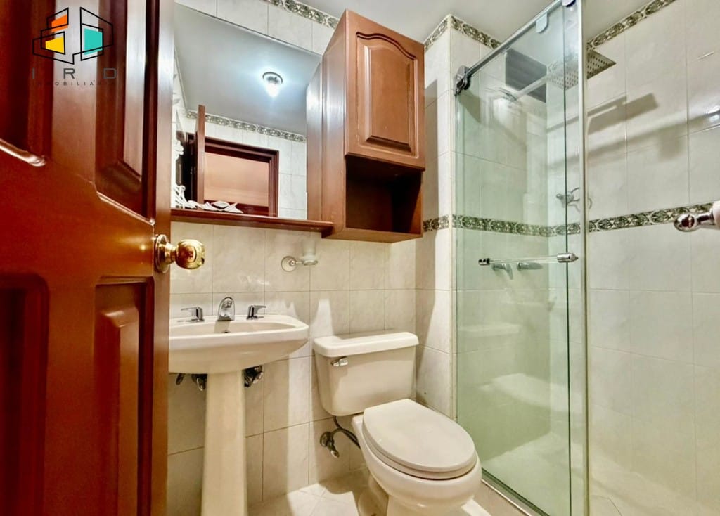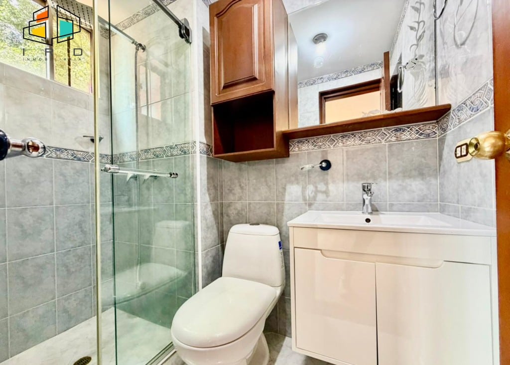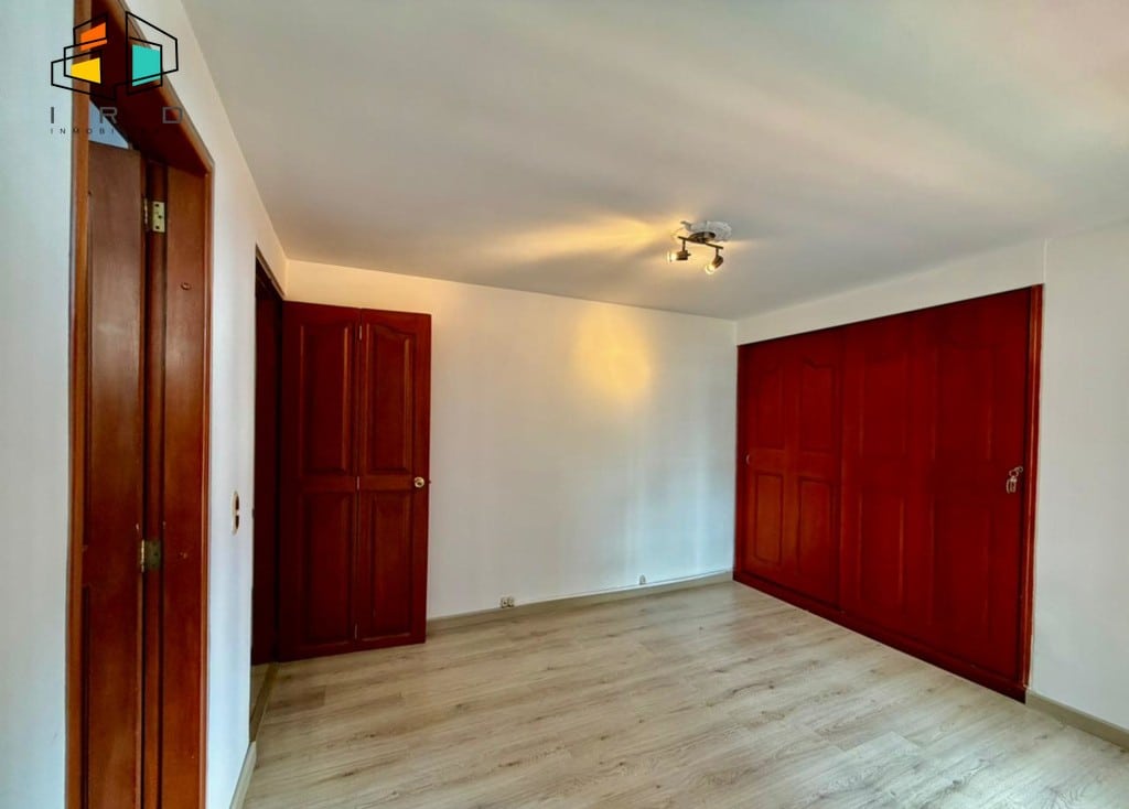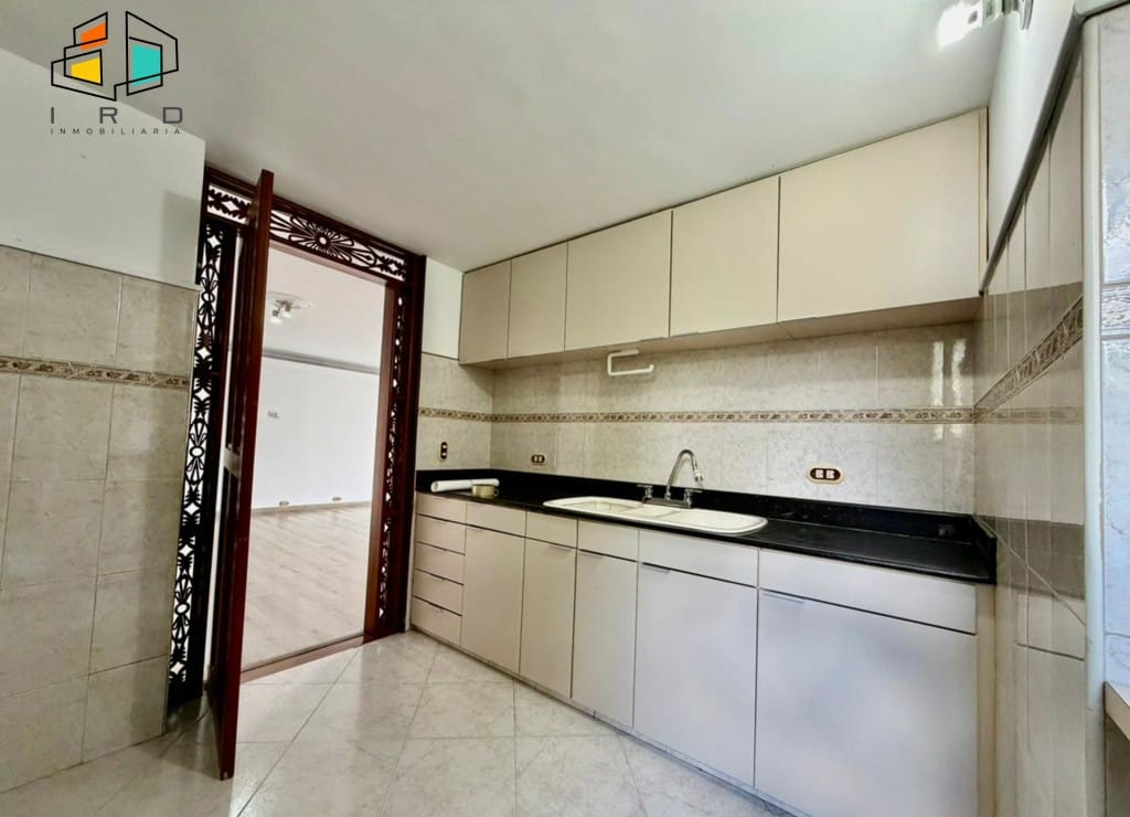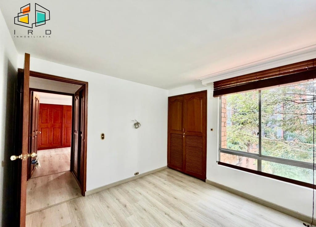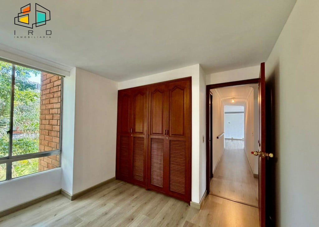 3 clósets en total. 2 baños completos. Sala-comedor espaciosa y bien iluminada, con pisos en madera laminada y luz LED. Un amplio ventanal garantiza una excelente entrada de luz natural. Hall de alcobas. Cocina integral independiente, equipada con horno, campana extractora, muebles superiores e inferiores de madera y acabados modernos. Zona de ropas dotada con calentador de agua.