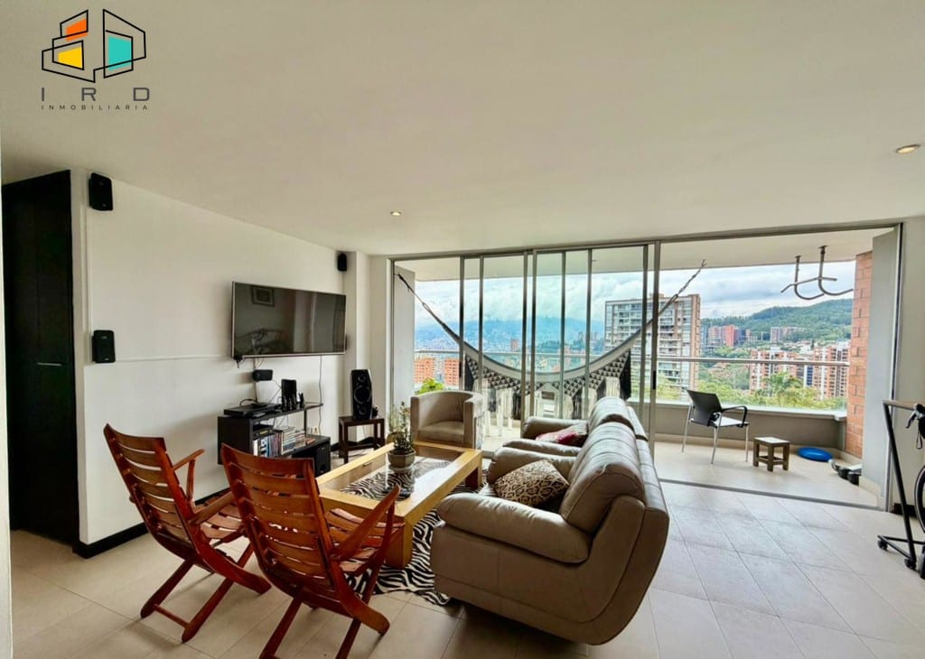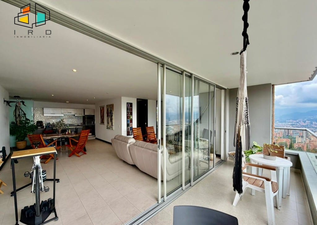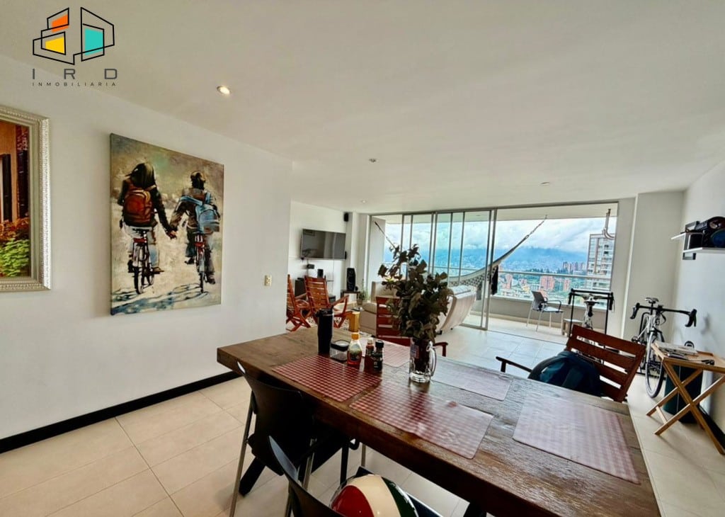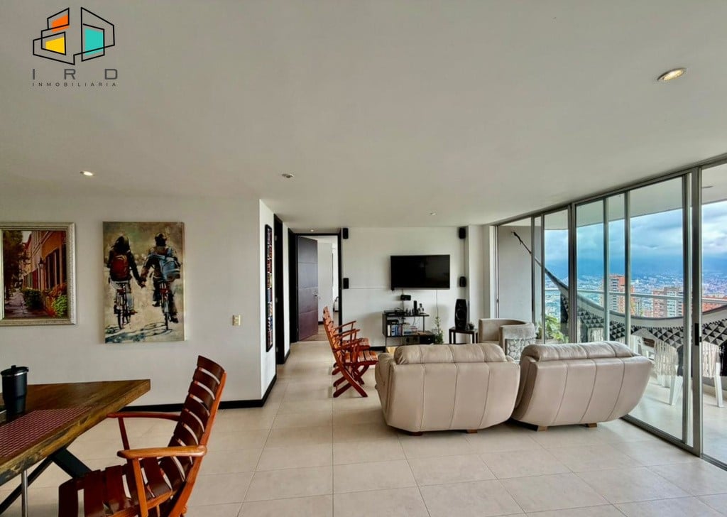 El salón comedor se distingue por sus amplios espacios y una inmejorable iluminación natural, creando un ambiente acogedor y luminoso. El balcón, con sus ventanales de piso a techo y de pared a pared, ofrece una vista encantadora de la ciudad de Medellín y garantiza una entrada constante de luz natural que realza cada rincón.
