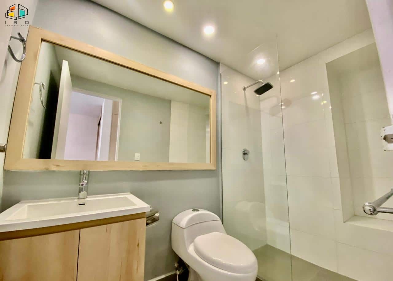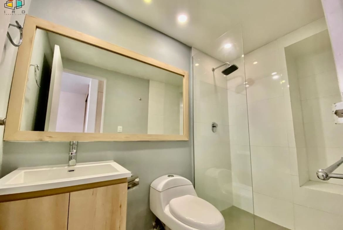 El apartamento cuenta con dos amplias habitaciones, complementadas por una habitación de servicio. La habitación principal es un verdadero santuario, equipada con vestier, clóset y baño privado, mientras que la habitación de servicio también dispone de su propio baño. Adicionalmente, encontrará un clóset y un práctico clóset de linos, junto a un funcional hall de alcobas. En total, la propiedad dispone de tres baños, incluyendo el baño social y el de la alcoba de servicio.