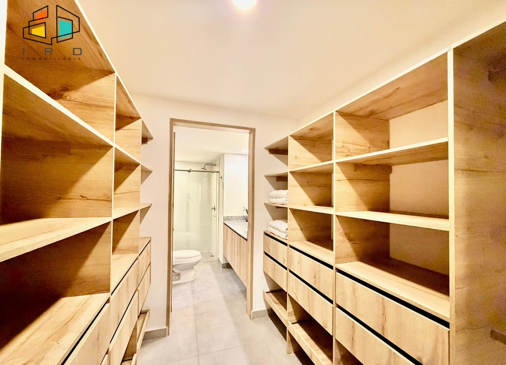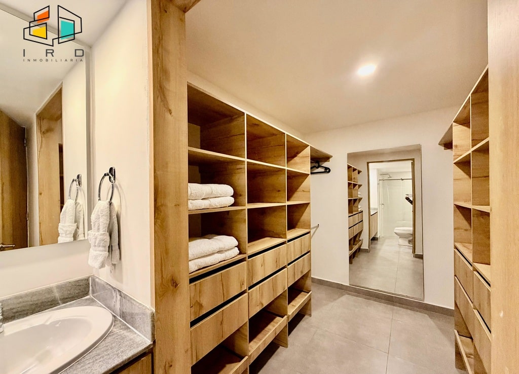 La zona de ropas es igualmente amplia e iluminada, equipada con calentador de agua y lavadora secadora, facilitando las tareas del hogar.