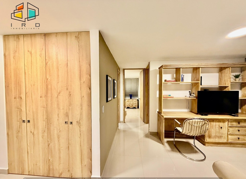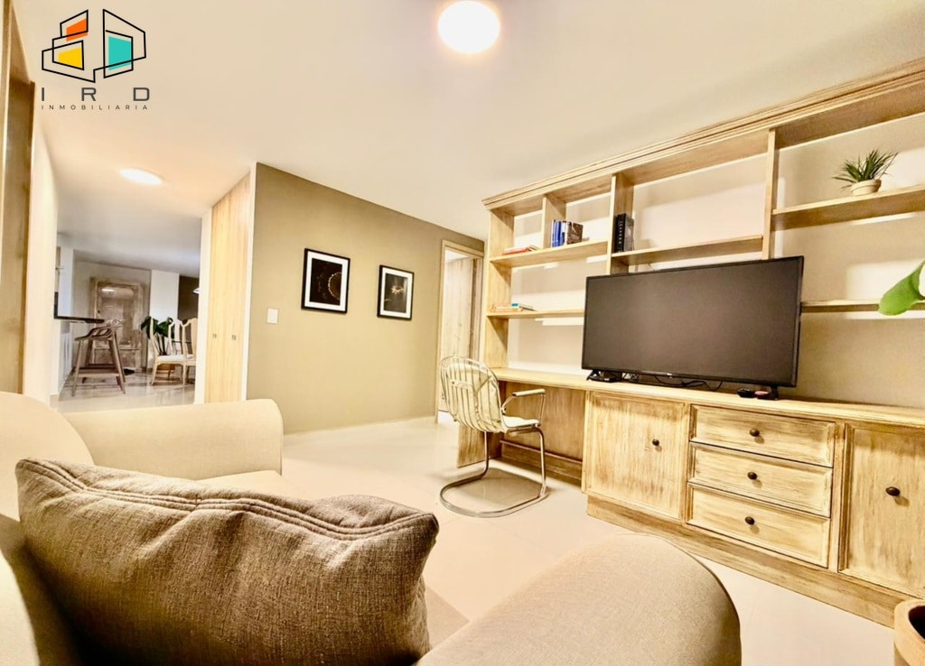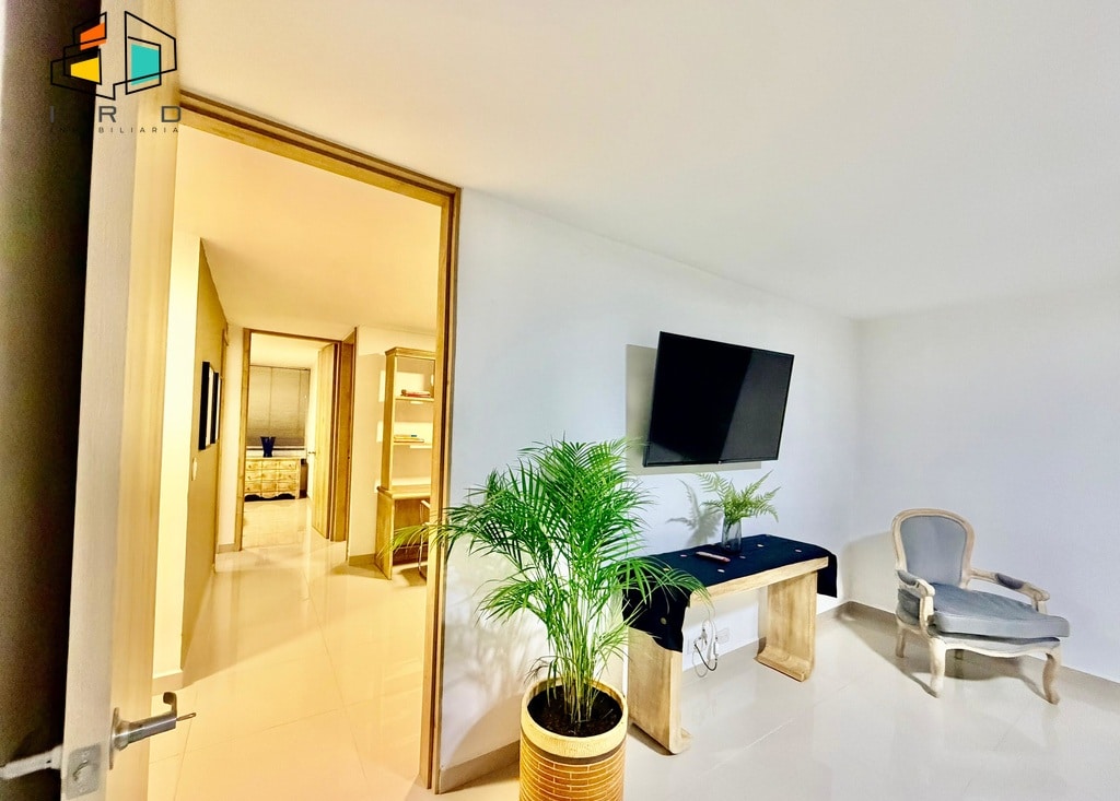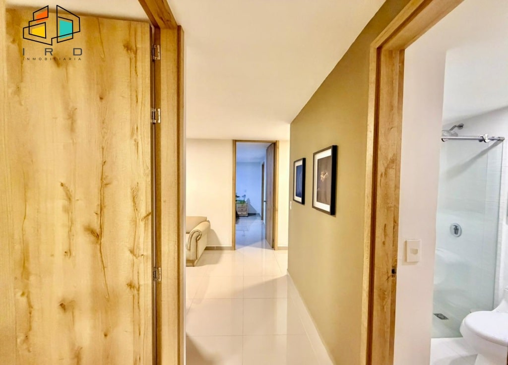 Este apartamento se entrega con mobiliario moderno y confortable, asegurando una estadía placentera desde el primer día. Además, incluye dos parqueaderos independientes.