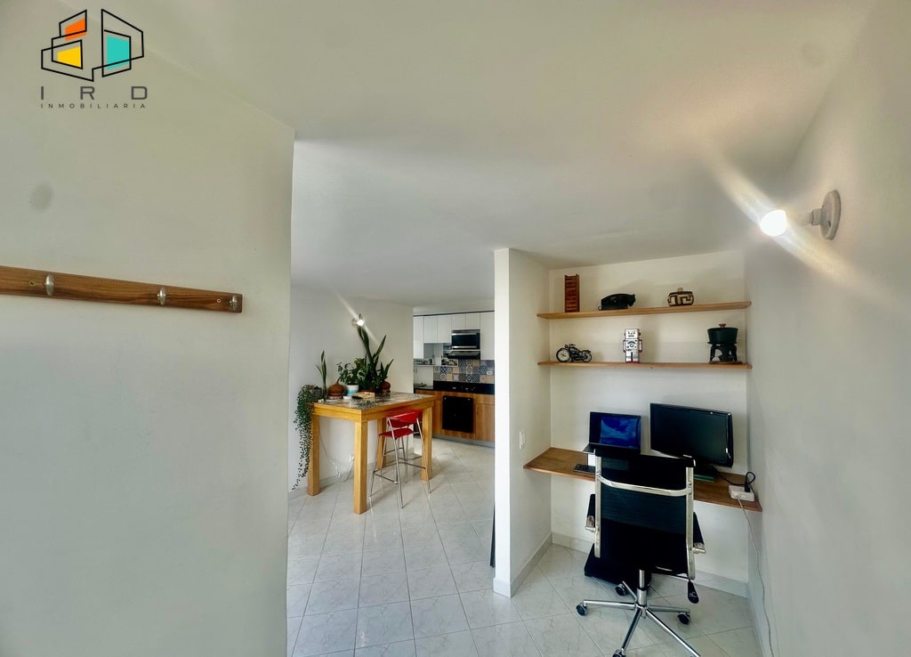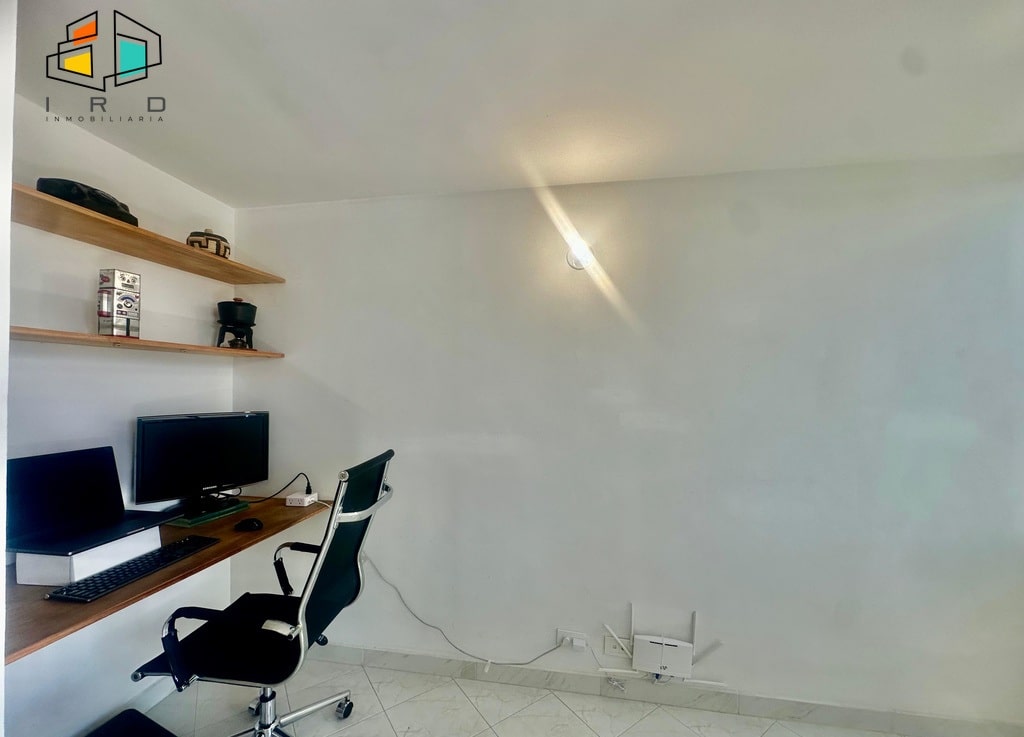 Un estudio, biblioteca o zona de trabajo independiente te brinda la flexibilidad de crear un espacio a tu medida, perfecto para la productividad o la relajación. El salón comedor es amplio y luminoso, integrándose armoniosamente con la cocina. Está amoblado con mobiliario confortable y cuenta con un Smart TV, creando un ambiente ideal para el entretenimiento y la convivencia. La cocina integral de concepto abierto es un sueño para cualquier chef, con muebles superiores e inferiores de acabados en madera, horno, campana extractora, nevera, microondas y completamente dotada con todos los utensilios básicos de cocina.