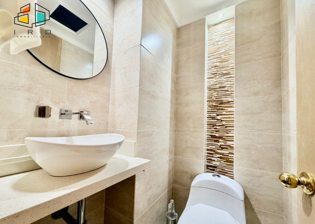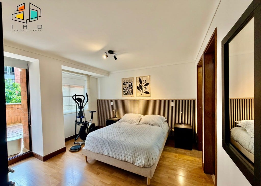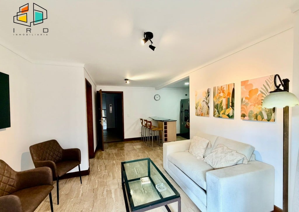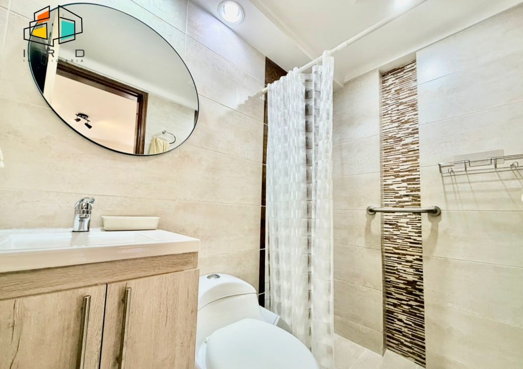 Este moderno apartamento se distribuye de la siguiente manera: una habitación principal con baño privado, vestier y acceso directo a una amplia terraza. Cuenta con dos baños completos, finamente terminados. La sala-comedor ofrece espacios generosos con excelente iluminación natural, pisos de madera laminada, amplios ventanales e iluminación LED, creando un ambiente cálido y sofisticado. La espaciosa terraza, con sus grandes ventanales, se integra armoniosamente con el área social, ideal para el entretenimiento o el relax.