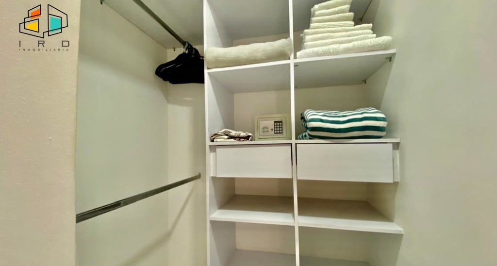 El apartamento cuenta con una habitación principal que es un verdadero santuario, equipada con baño privado, vestier y closet, ofreciendo un espacio de privacidad y organización. Dispone de dos baños completos, diseñados con acabados modernos. La sala-comedor, un espacio amplio y luminoso, se realza con un ventanal de pared a pared y elegantes cortinas tipo panel japonés, creando un ambiente acogedor y sofisticado. Desde el balcón, disfrute de una agradable vista que invita a la relajación.