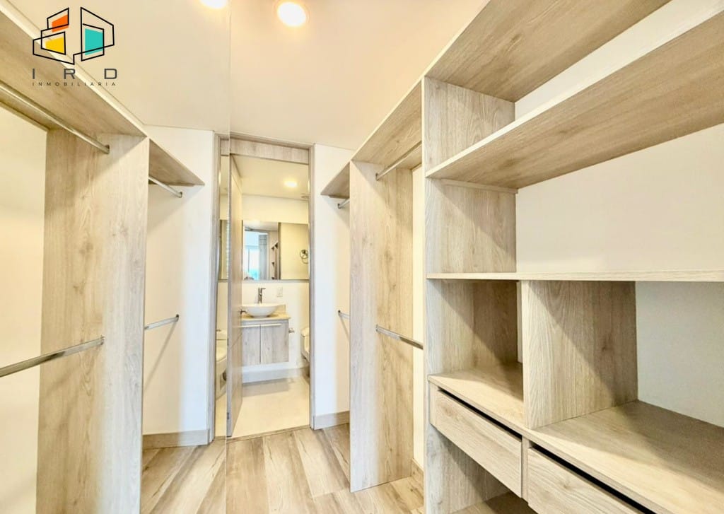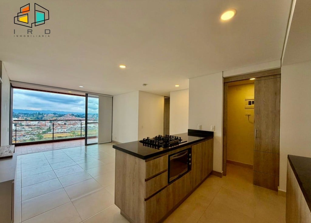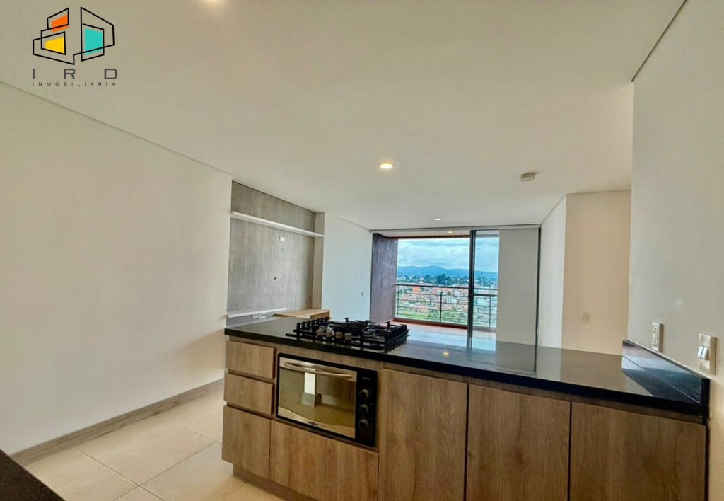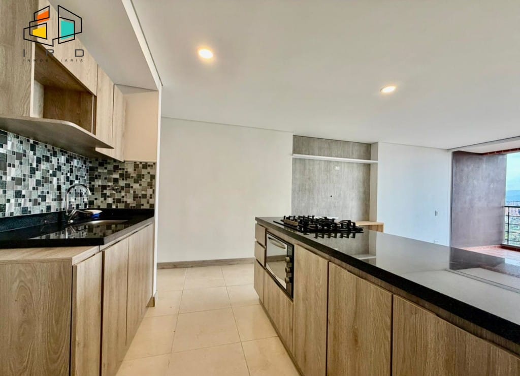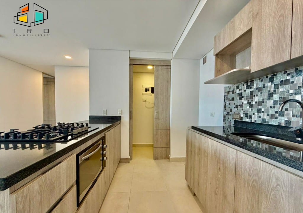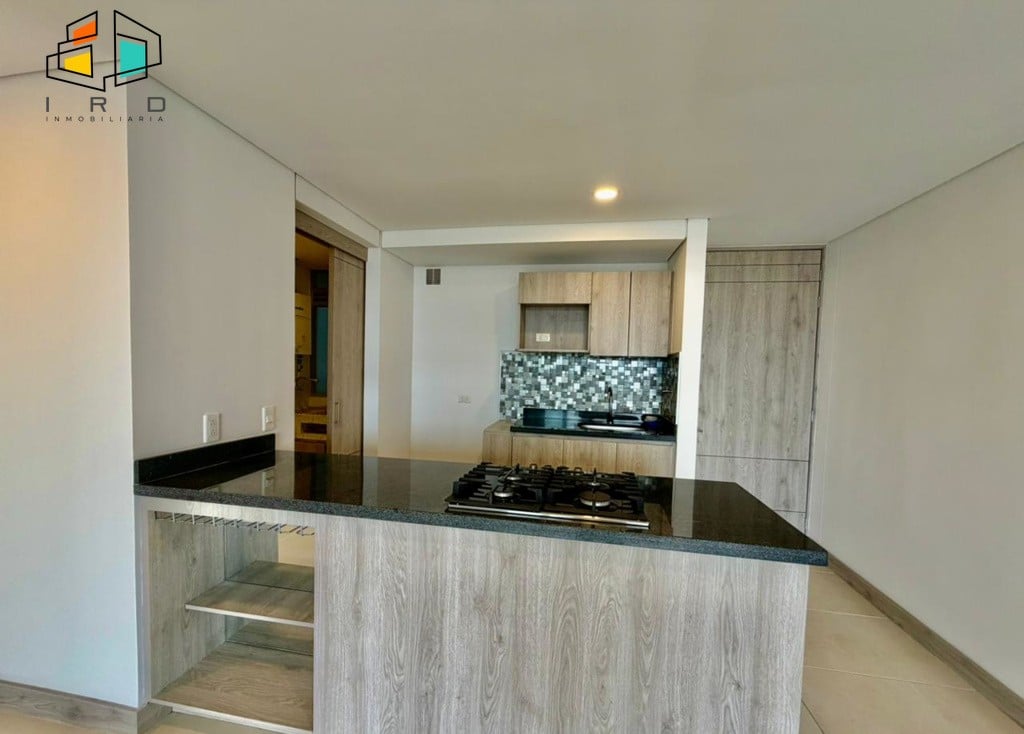 El balcón, generoso en tamaño, ofrece vistas panorámicas al sector, mientras que los amplios ventanales garantizan una excelente entrada de luz natural en todos los espacios. La cocina integral de concepto abierto es un deleite para los amantes de la gastronomía, con gabinetes superiores e inferiores de madera, horno, cubierta de cuatro puestos a gas, mesón de cocina y una barra americana que integra armoniosamente el área social. La zona de ropas, con puerta corrediza y calentador de agua, añade funcionalidad.
