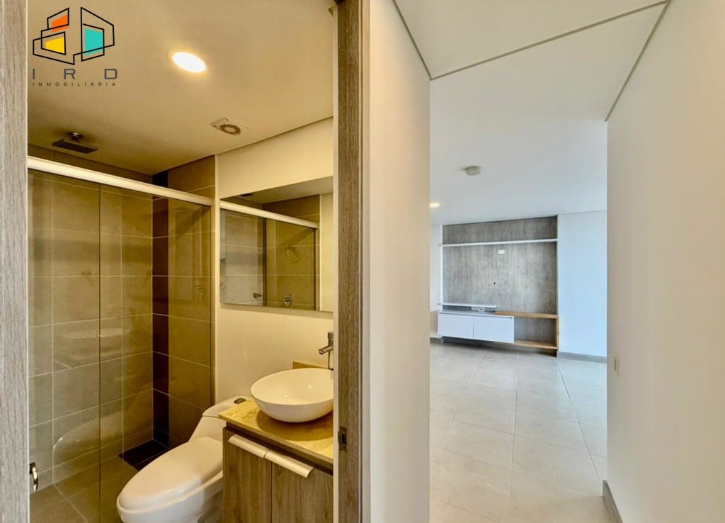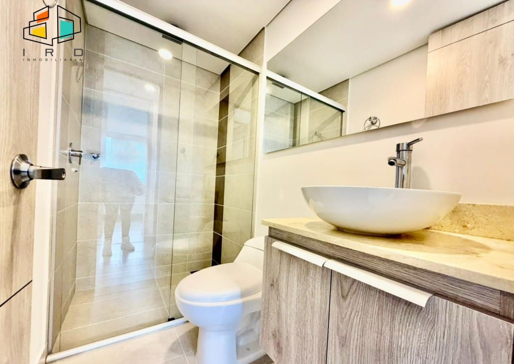 Este moderno apartamento cuenta con dos habitaciones, destacando un dormitorio principal con baño privado y vestier, y una habitación auxiliar equipada con clóset. Dispone de dos baños completos, diseñados con acabados contemporáneos. La sala comedor, amplia y espaciosa, se ilumina con luz natural y moderna iluminación LED, complementada por elegantes pisos de cerámica.