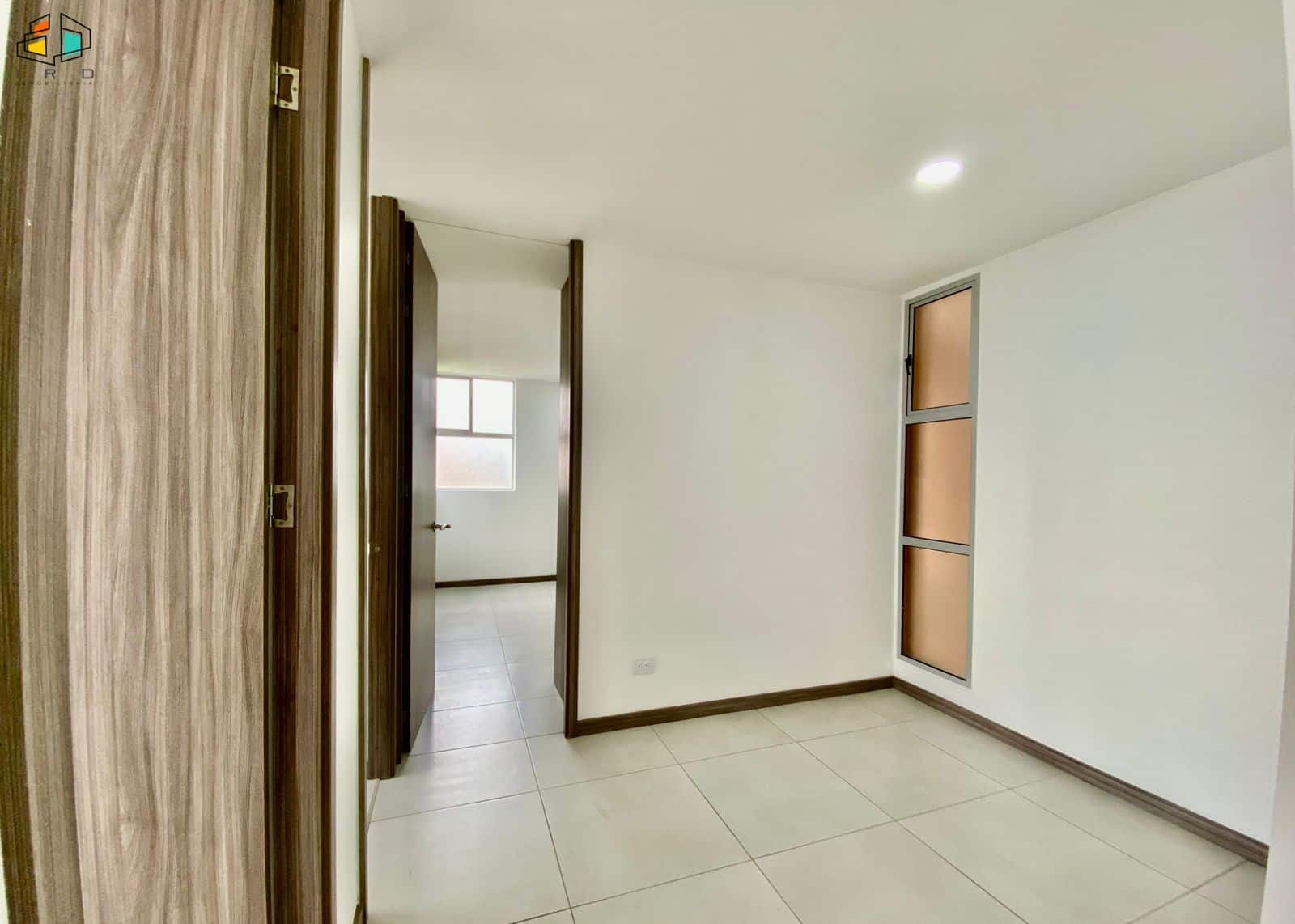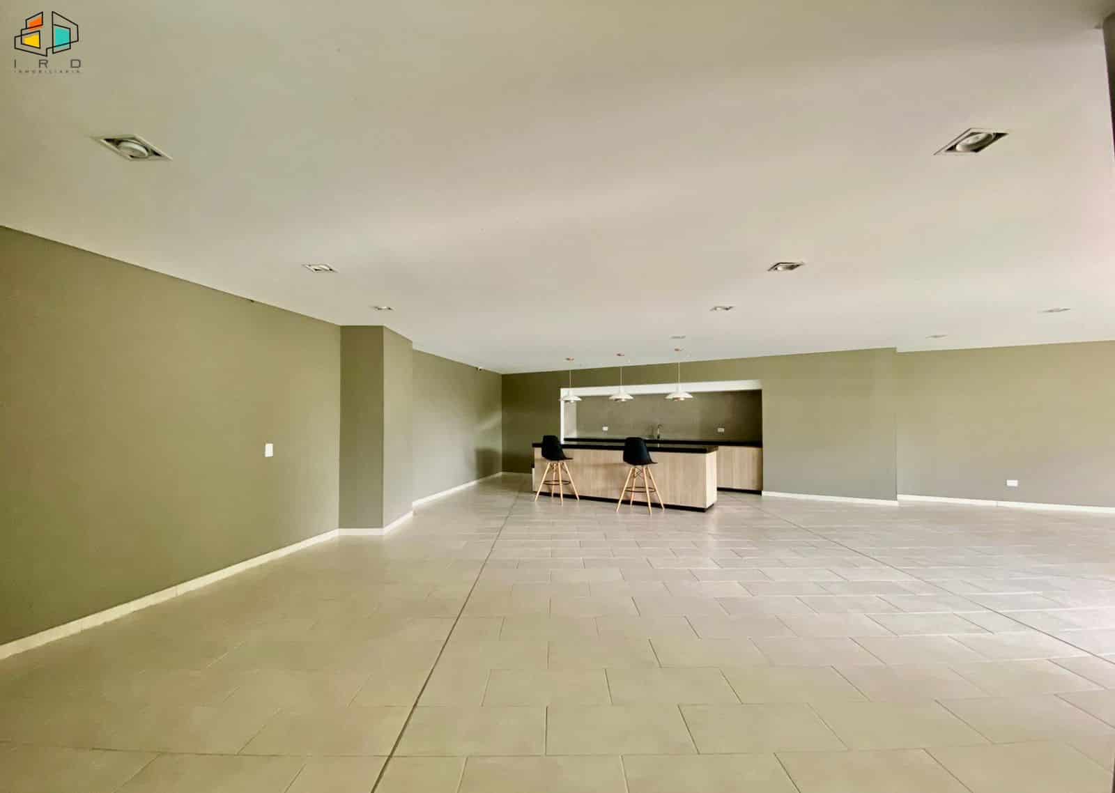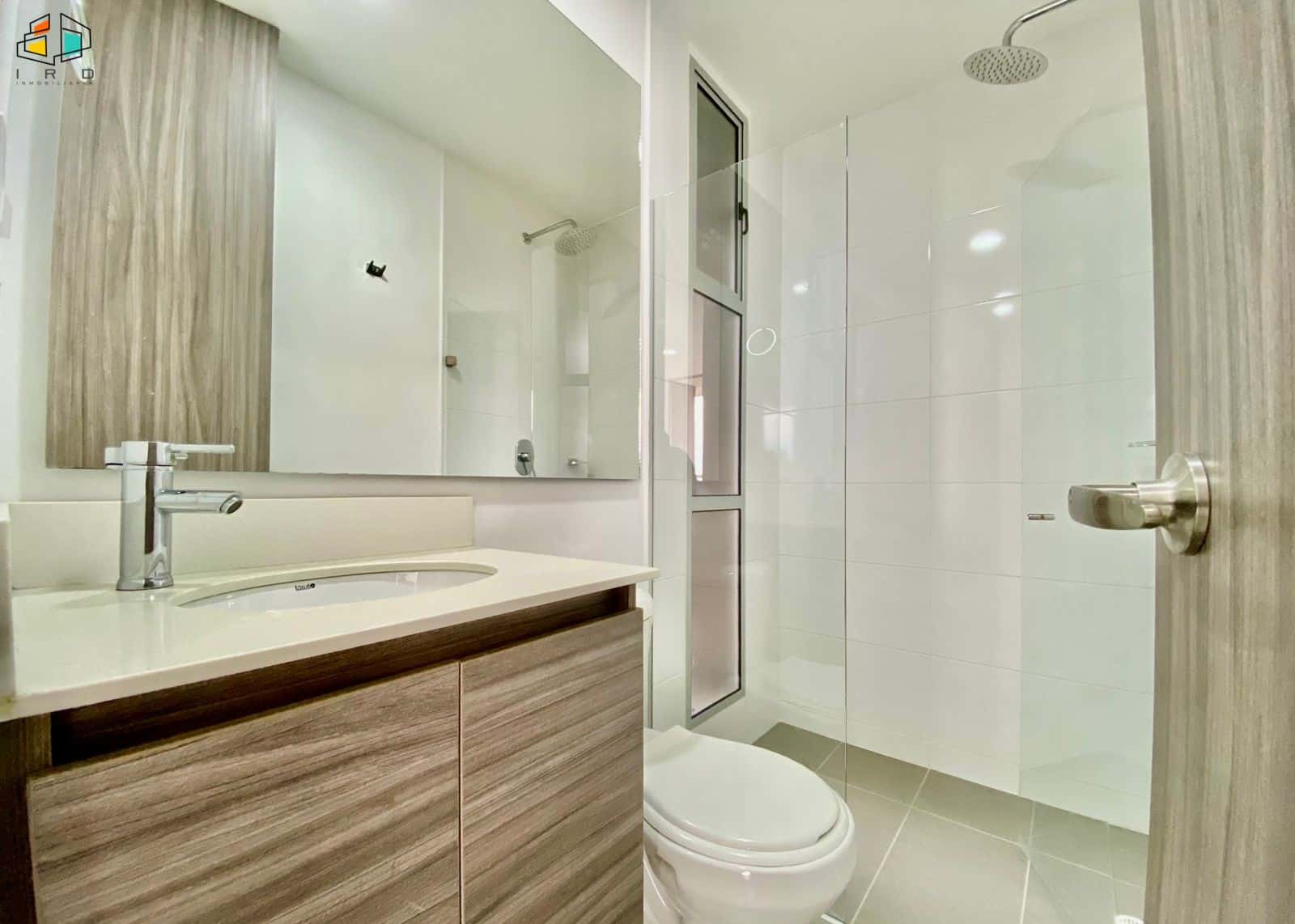 El salón comedor, amplio e iluminado, se realza con elegantes pisos de madera laminada, creando un ambiente cálido y acogedor. Un balcón invita a disfrutar de las vistas y el aire fresco. La cocina integral de concepto abierto, con una moderna barra americana, conecta fluidamente con el área social, ideal para compartir momentos inolvidables. Equipada con muebles superiores e inferiores de madera y acabados contemporáneos, incluye una estufa a gas de cuatro puestos. La zona de ropas independiente cuenta con calentador de agua.