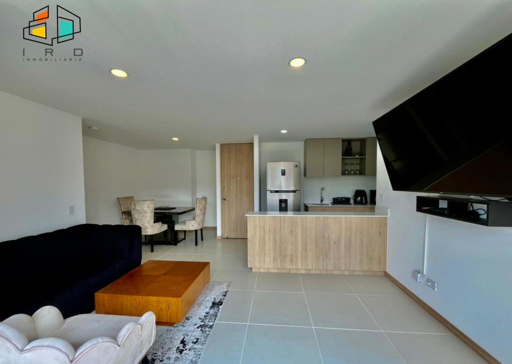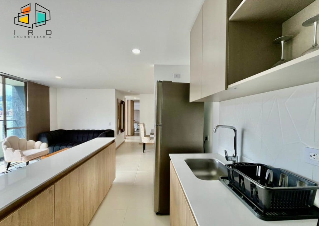 Este espacioso apartamento cuenta con 3 habitaciones, incluyendo una suite principal con baño privado y vestier, y dos habitaciones auxiliares equipadas con clóset. Dispone de 2 baños completos, incluyendo el social. La sala comedor, con sus modernos pisos en cerámica, se beneficia de una excelente iluminación LED y natural, creando un ambiente cálido y acogedor. El amplio balcón, con ventanales de piso a techo, ofrece impresionantes vistas panorámicas de la ciudad y la naturaleza circundante. La cocina integral de concepto abierto está completamente equipada con gabinetes superiores e inferiores, campana extractora, cubierta de 4 puestos a gas y horno, complementada por una elegante barra americana que se integra armoniosamente con la zona social, lista para su disfrute. Además, cuenta con una zona de ropas independiente equipada con calentador de agua y un práctico hall de alcobas. Incluye 1 parqueadero privado.