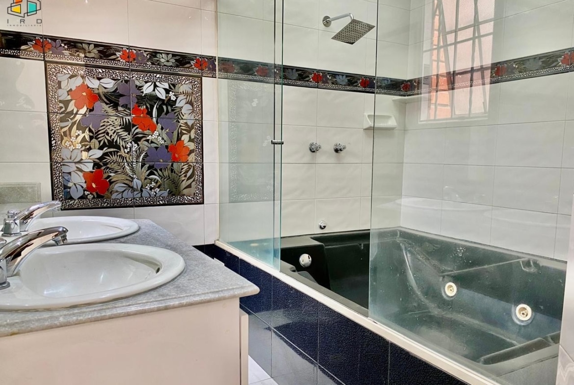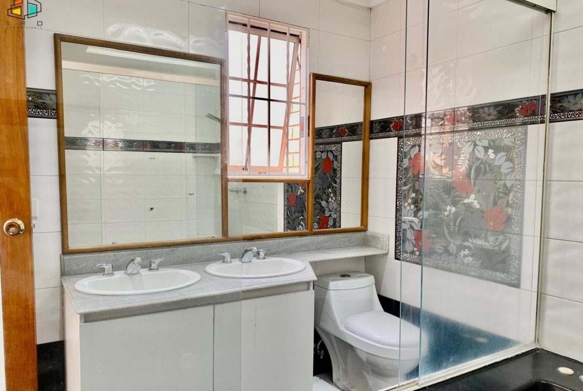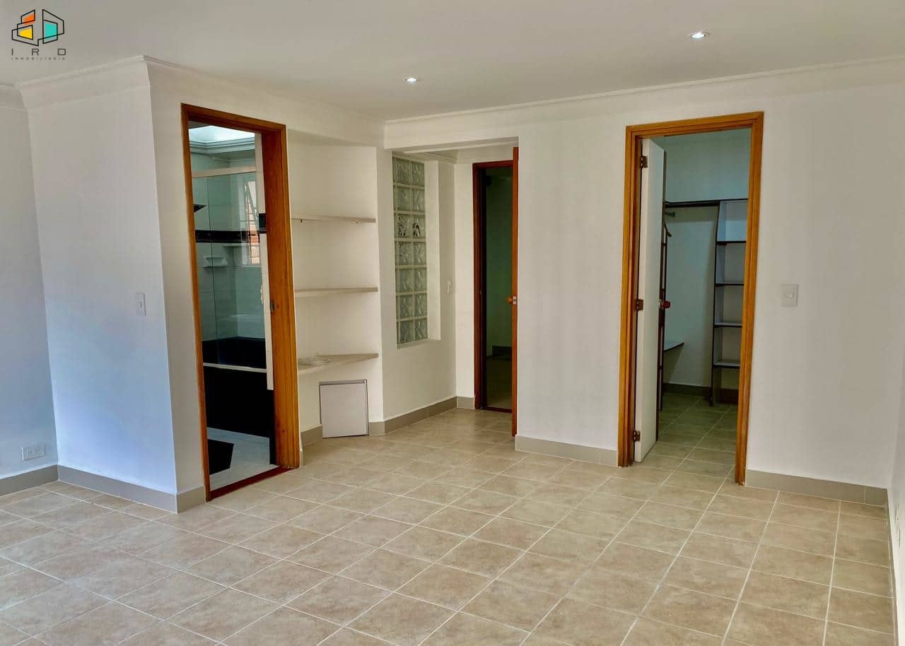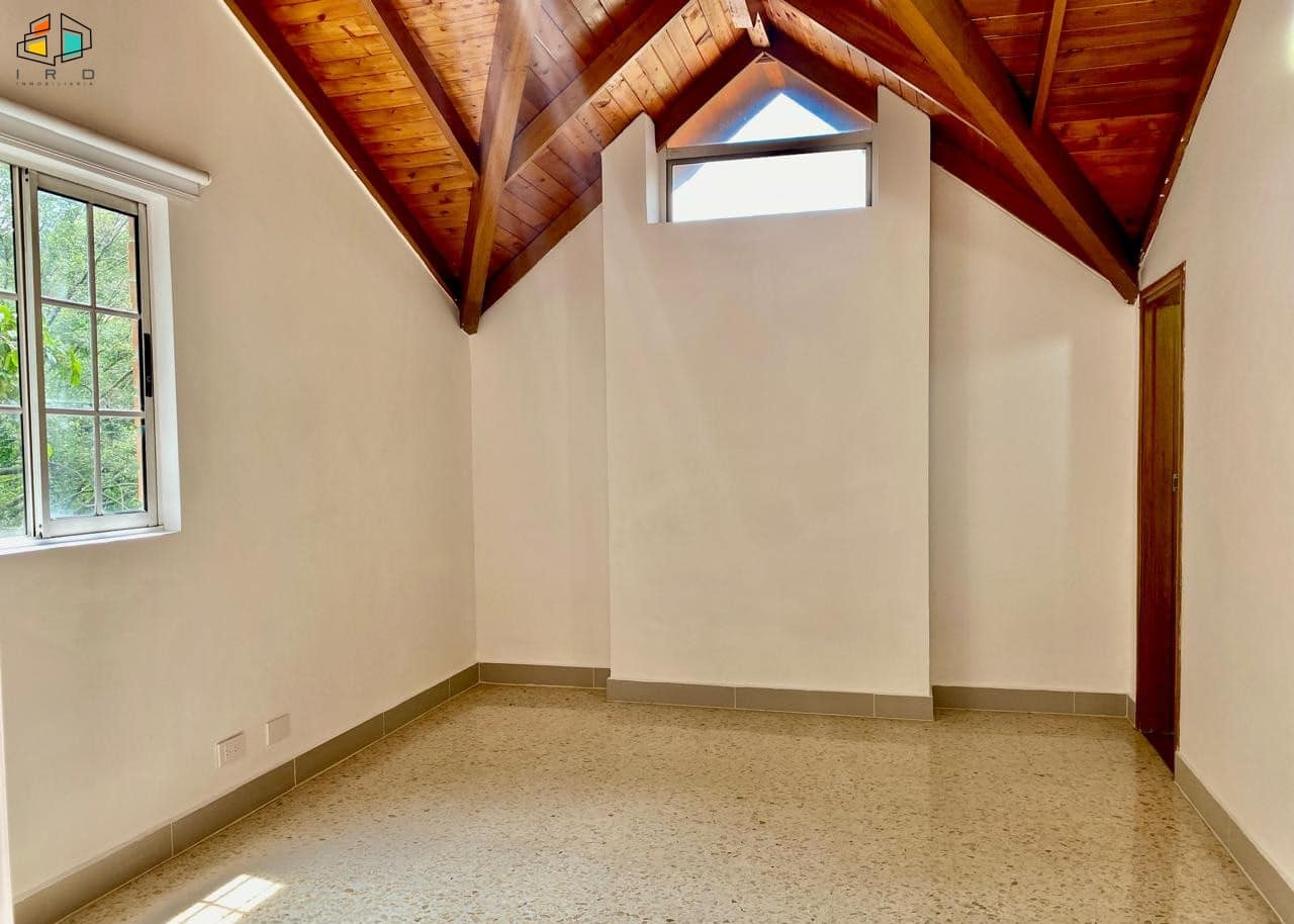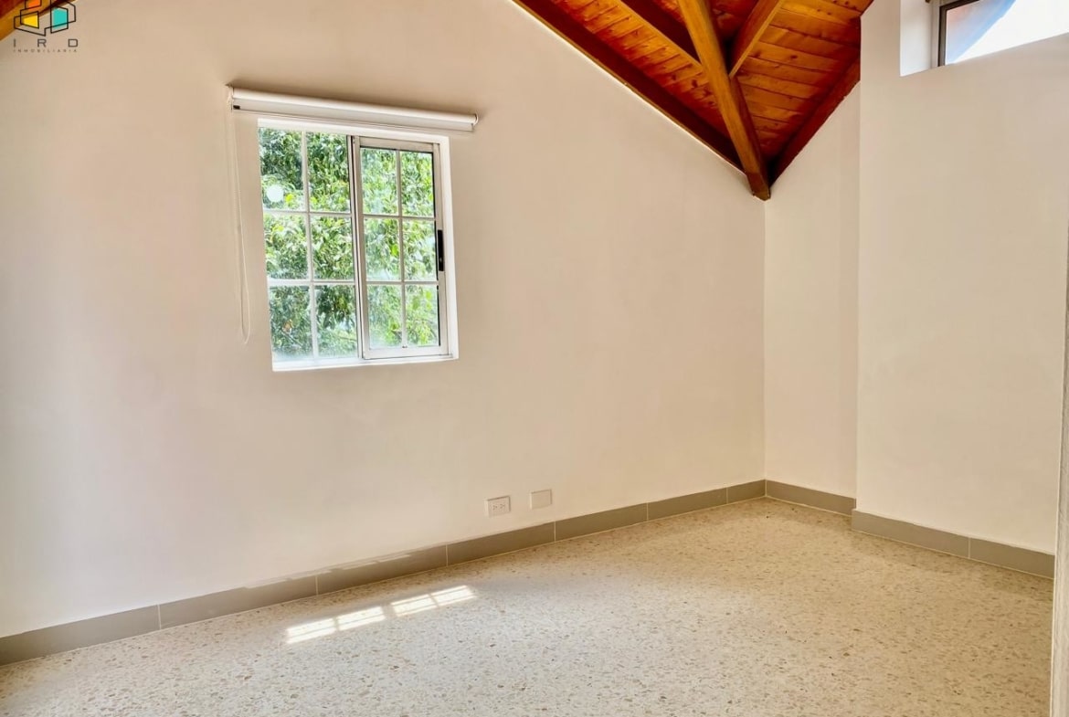 Segundo Piso: Tres habitaciones, destacándose la habitación principal por su amplitud, iluminación natural y equipamientos tales como baño privado completo, vestier y jacuzzi. Las habitaciones auxiliares cuentan con clóset. Dos clósets adicionales en el pasillo.  Un baño de uso compartido.