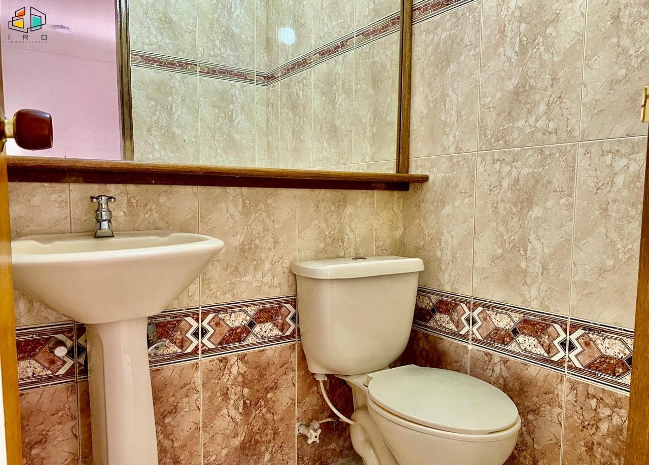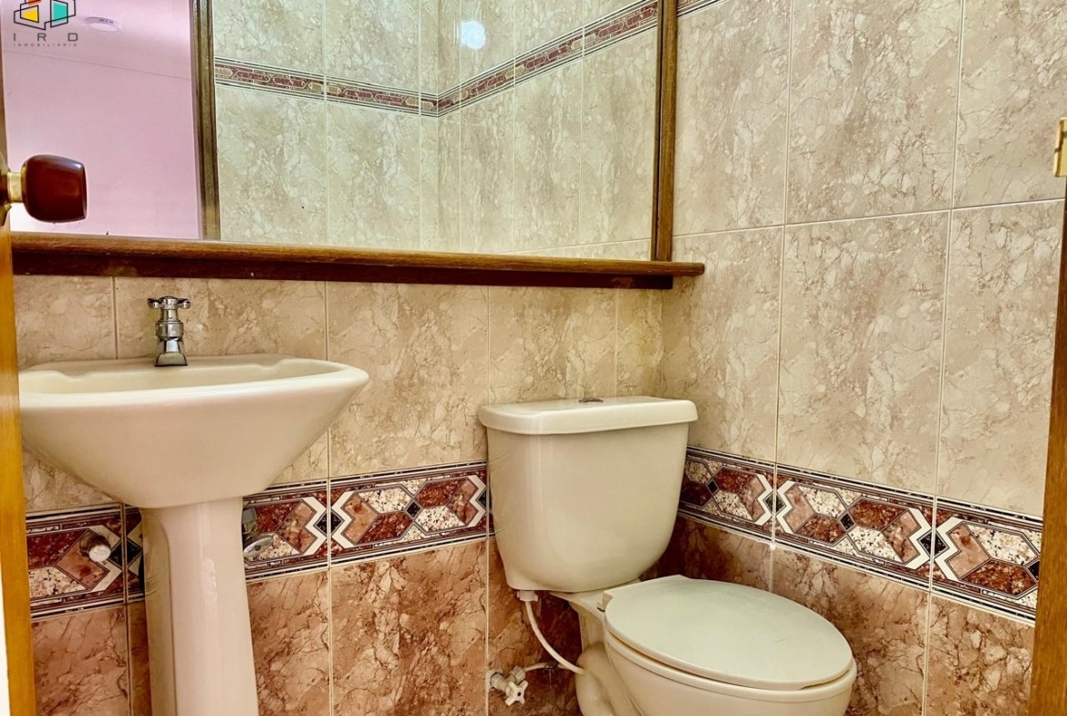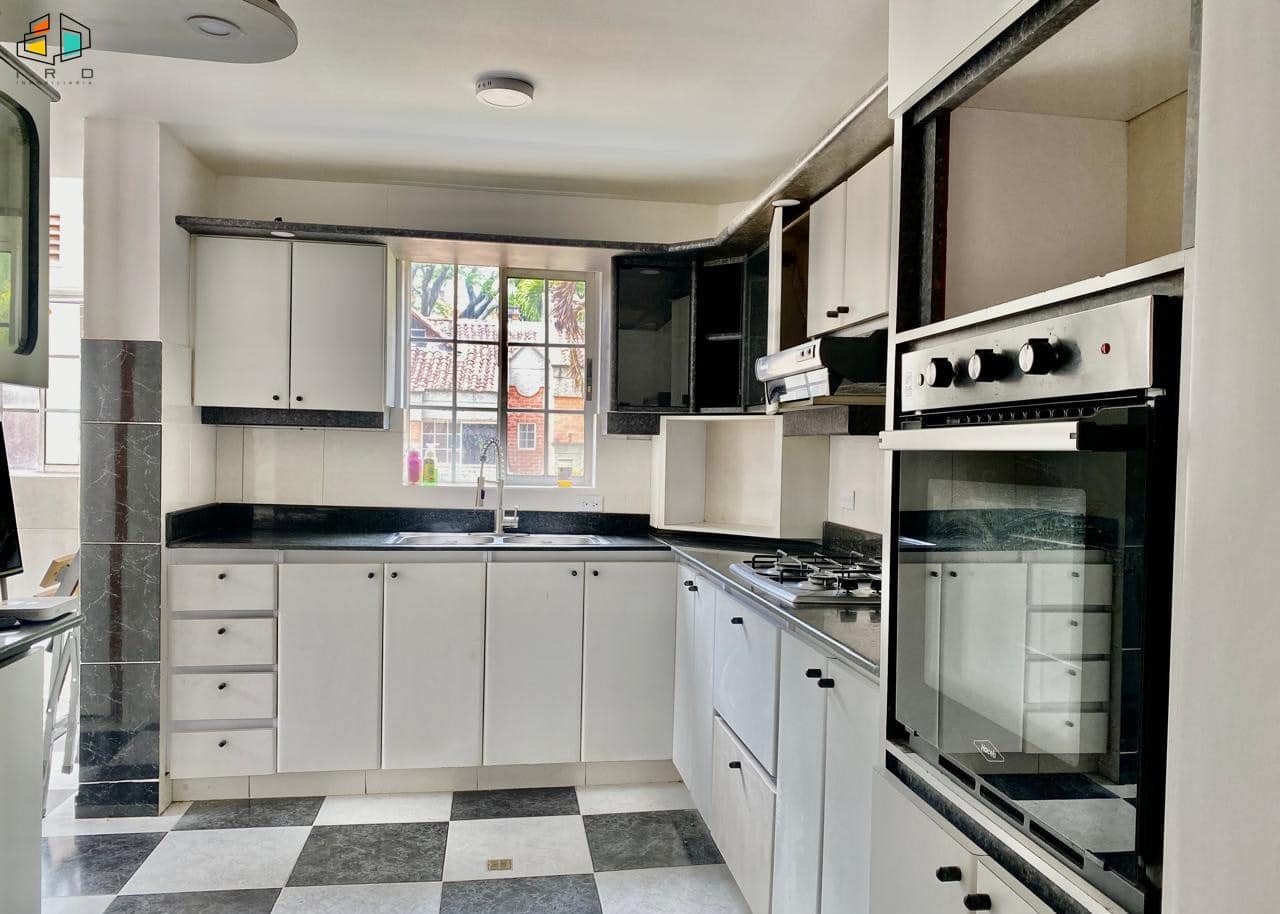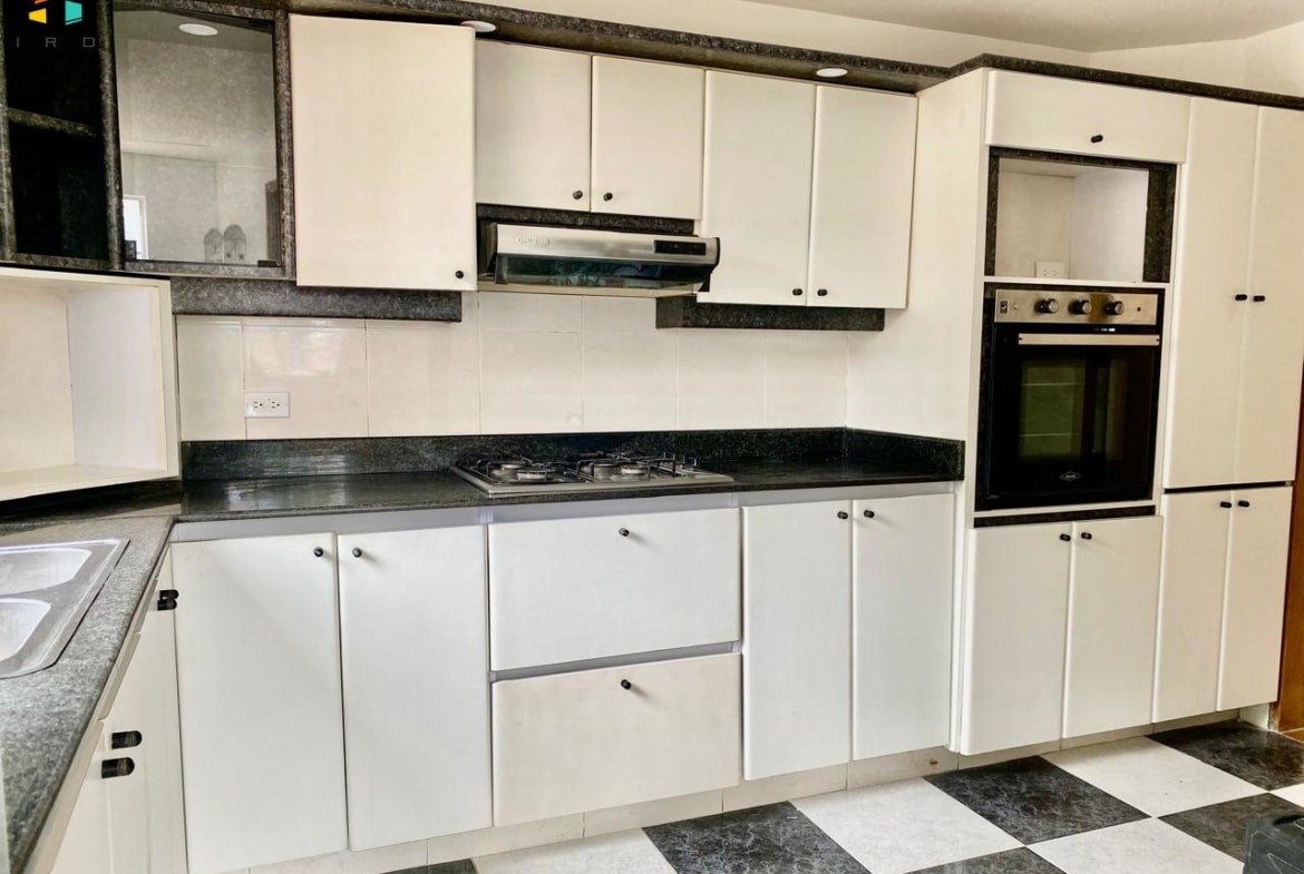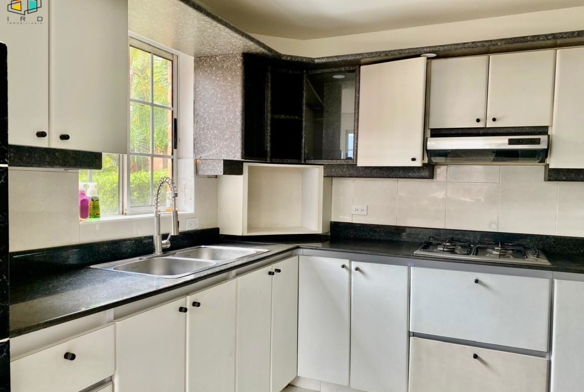Primer Piso: Baño social. – Sala-comedor de gran amplitud y luminosa, equipada con pisos en cerámica. Balcón.  Terraza cubierta con pérgola.  Cocina integral de concepto independiente, con modernos acabados, muebles superiores e inferiores en madera, estufa a gas de cuatro puestos y horno integrado. Zona de ropas con calentador de agua.  Cuarto de servicio con baño completo.  Dos parqueaderos privados en paralelo.  Un cuarto útil para almacenamiento.