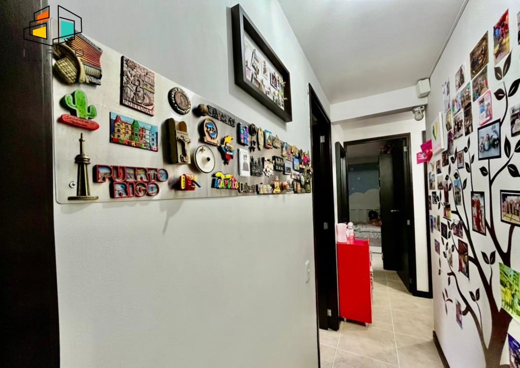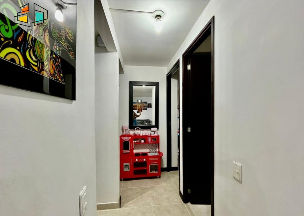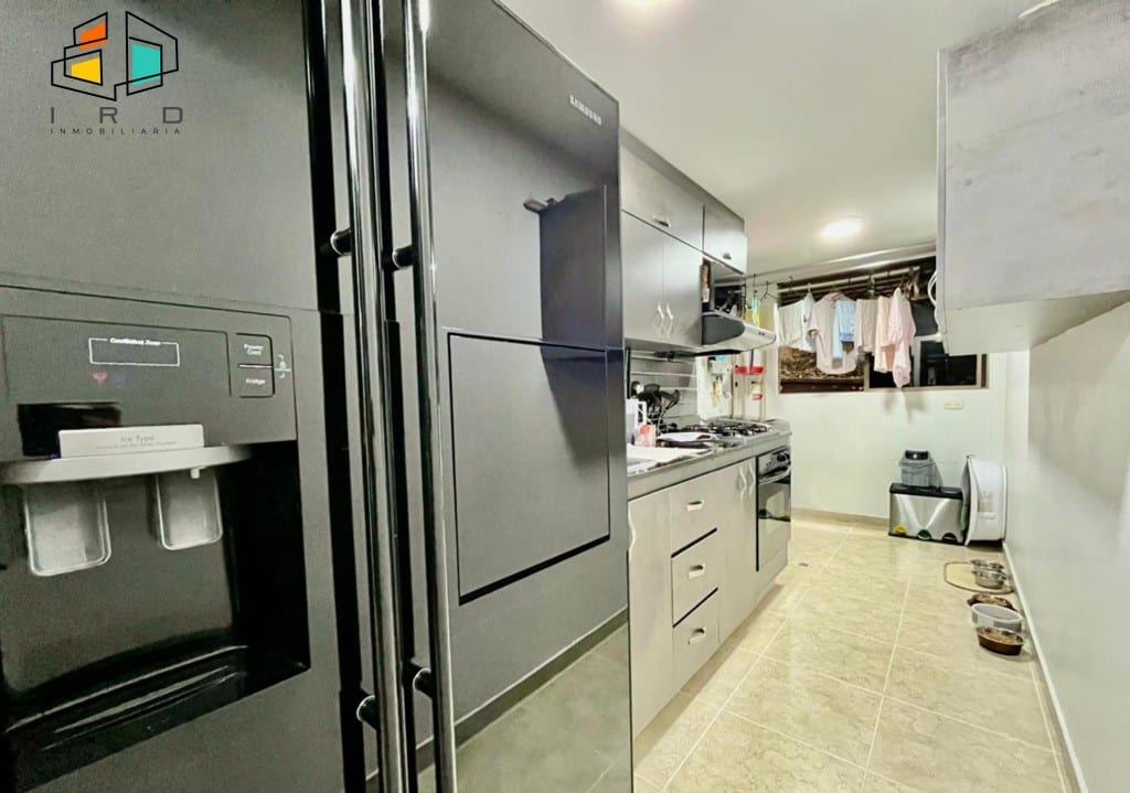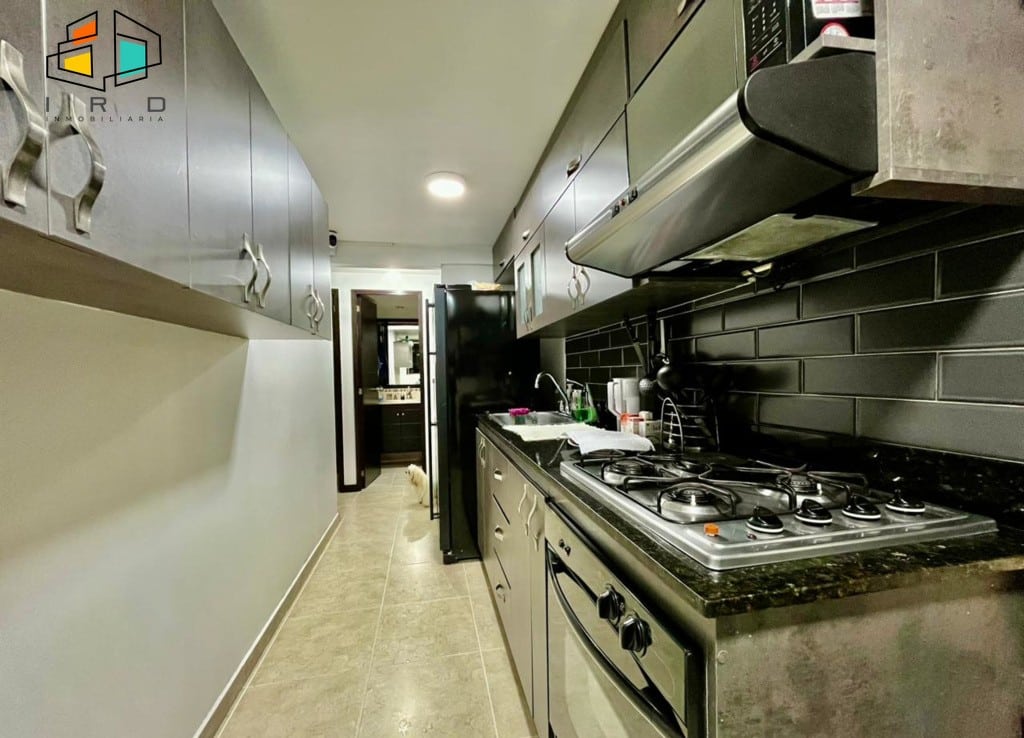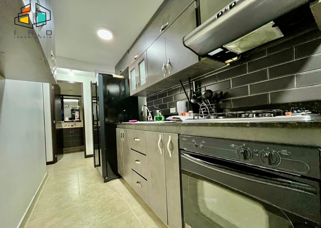Disfrute de un espacioso hall de alcobas que conecta armoniosamente con la sala comedor, la cual deslumbra con pisos en cerámica e iluminación LED que crea un ambiente cálido y moderno. El balcón, con ventanales de piso a techo, invita a disfrutar de vistas despejadas y momentos de relajación. La cocina integral, con elegantes gabinetes superiores e inferiores en madera, está equipada con campana extractora, horno y cubierta de 4 puestos a gas, ideal para los amantes de la gastronomía. Además, cuenta con una práctica zona de ropas que incluye calentador de agua.