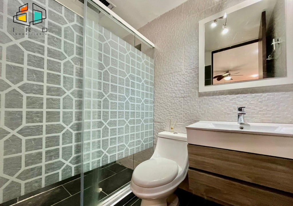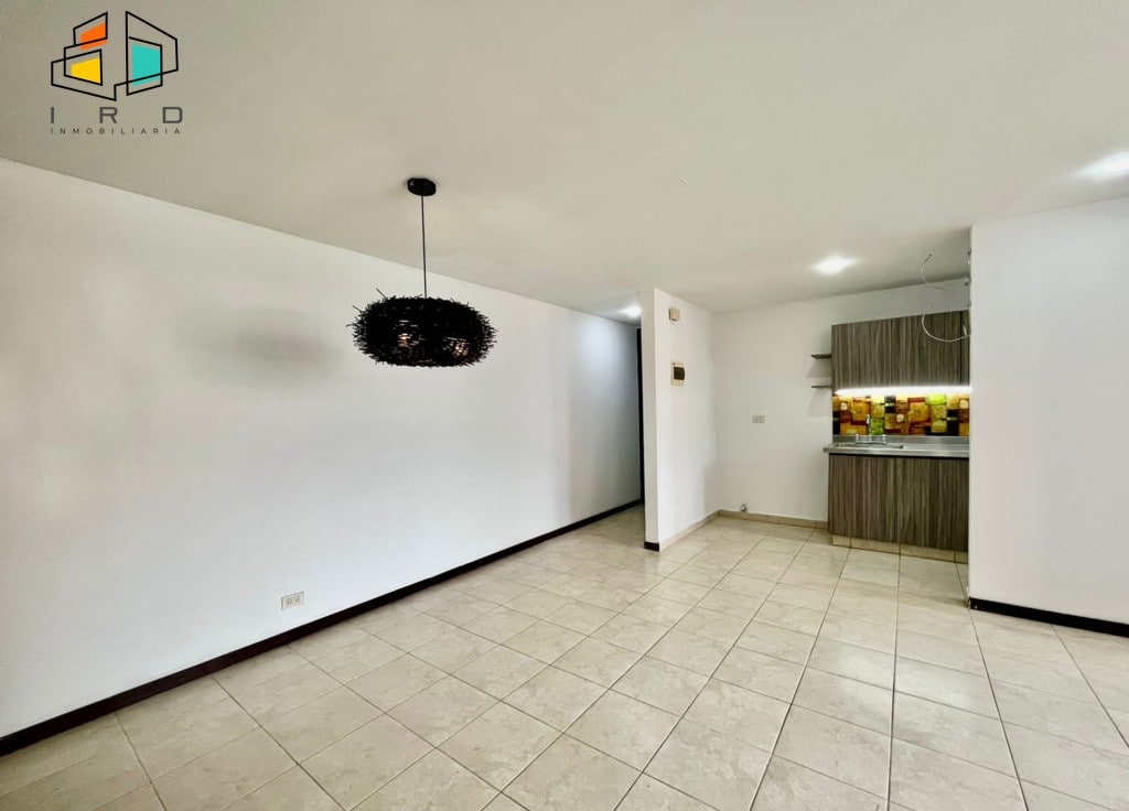 La sala comedor, con sus elegantes pisos de cerámica e iluminación LED, crea un ambiente cálido y moderno, ideal para el entretenimiento o el descanso. El balcón, con su ventanal de piso a techo, invita a disfrutar de vistas despejadas y luz natural.