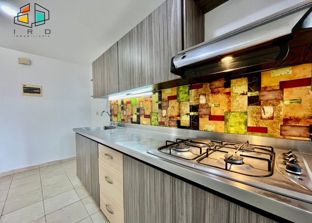 La cocina integral está equipada con gabinetes superiores e inferiores, campana extractora y cubierta de cuatro puestos a gas, perfecta para los amantes de la gastronomía. Además, cuenta con una zona de ropas independiente que incluye calentador de agua, y un práctico hall de alcobas. La seguridad está garantizada con una puerta principal blindada.