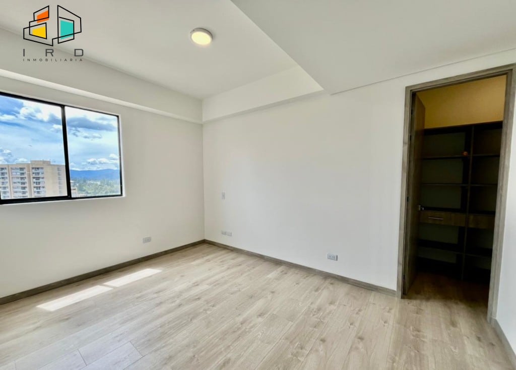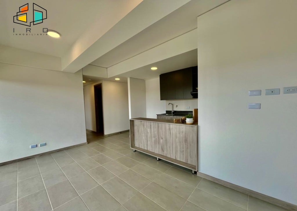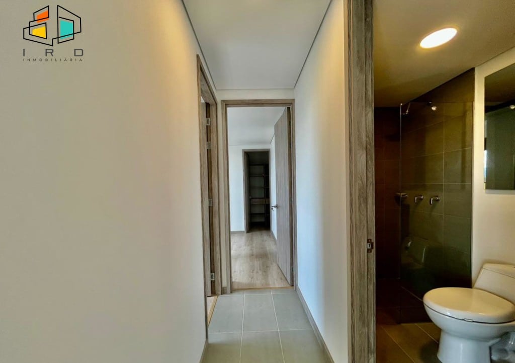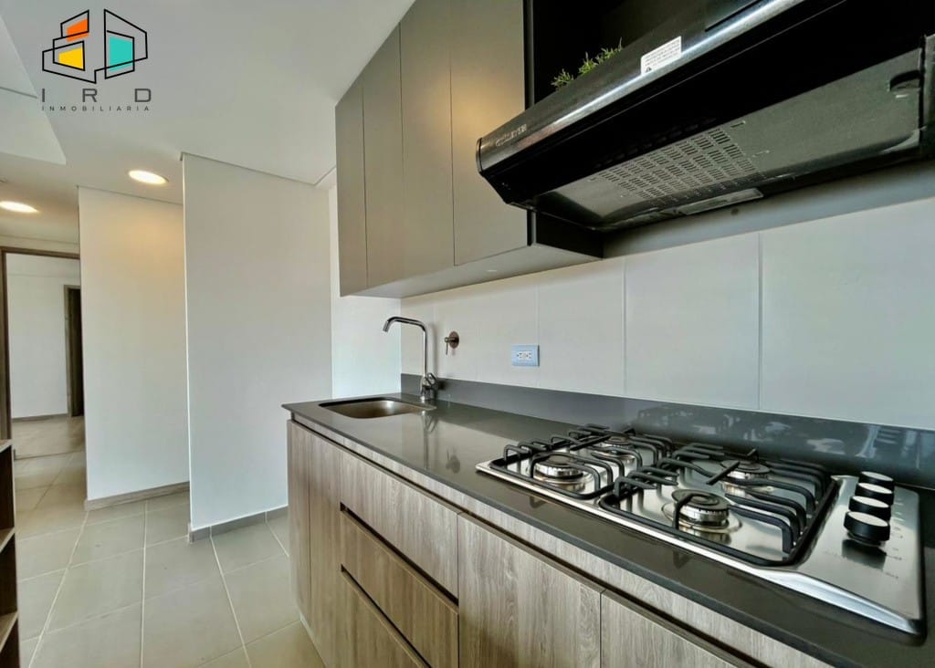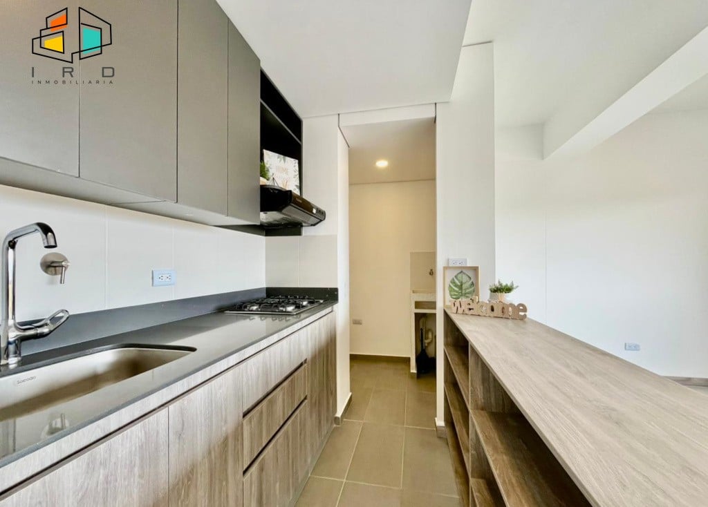 Este moderno apartamento cuenta con dos habitaciones, una auxiliar equipada con closet y una principal que ofrece un baño privado y un vestier, brindando privacidad y confort. Dispone de dos baños completos, incluyendo el social. La sala comedor, con elegantes pisos de cerámica, se beneficia de una excelente iluminación LED y natural, creando un ambiente cálido y acogedor. Un amplio balcón con ventanal ofrece una vista generosa y sin registro, ideal para momentos de relajación. La cocina integral de concepto abierto, con gabinetes superiores e inferiores, campana extractora, cubierta de 4 puestos a gas y una práctica barra americana, se integra armoniosamente con la zona social. Adicionalmente, cuenta con zona de ropas, calentador de agua y un funcional hall de alcobas. Incluye un parqueadero y un cuarto útil.