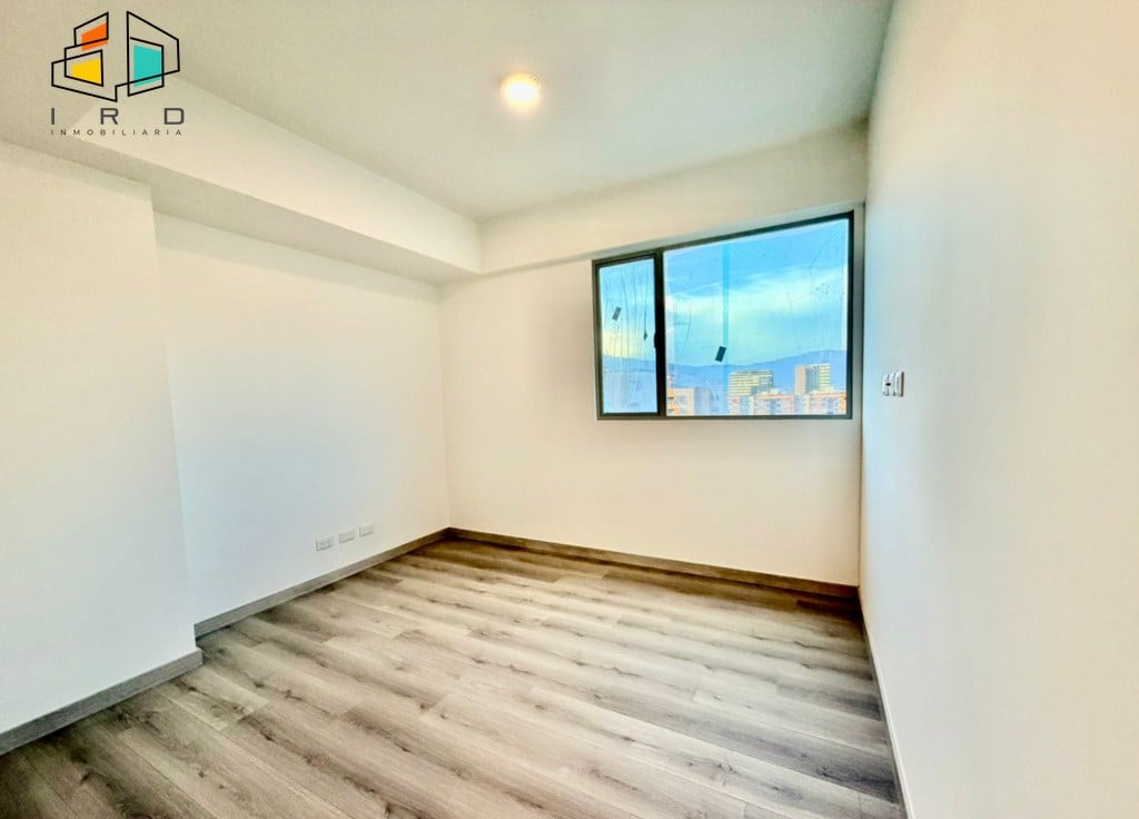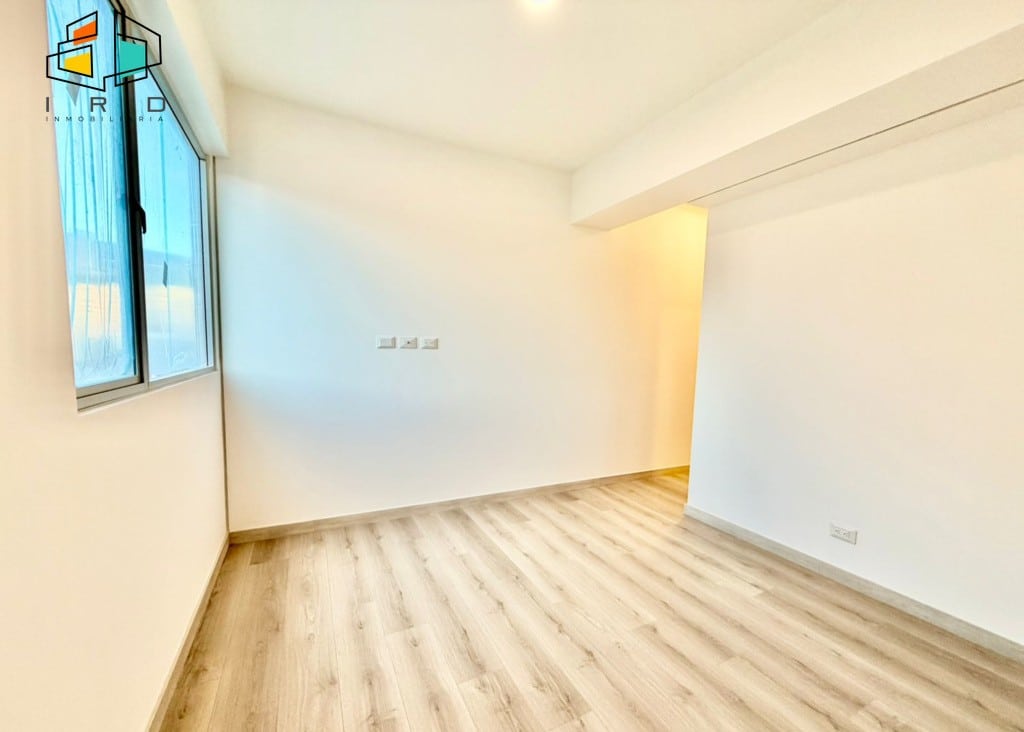 El salón comedor, de generosas dimensiones, se presenta con acabados de primera calidad, incluyendo pisos en madera laminada y una moderna iluminación LED que crea un ambiente cálido y acogedor. El amplio balcón es un verdadero oasis, con ventanales de piso a techo que abarcan de pared a pared, ofreciendo una vista panorámica espectacular de la ciudad y permitiendo una abundante entrada de luz natural que ilumina cada rincón del hogar.