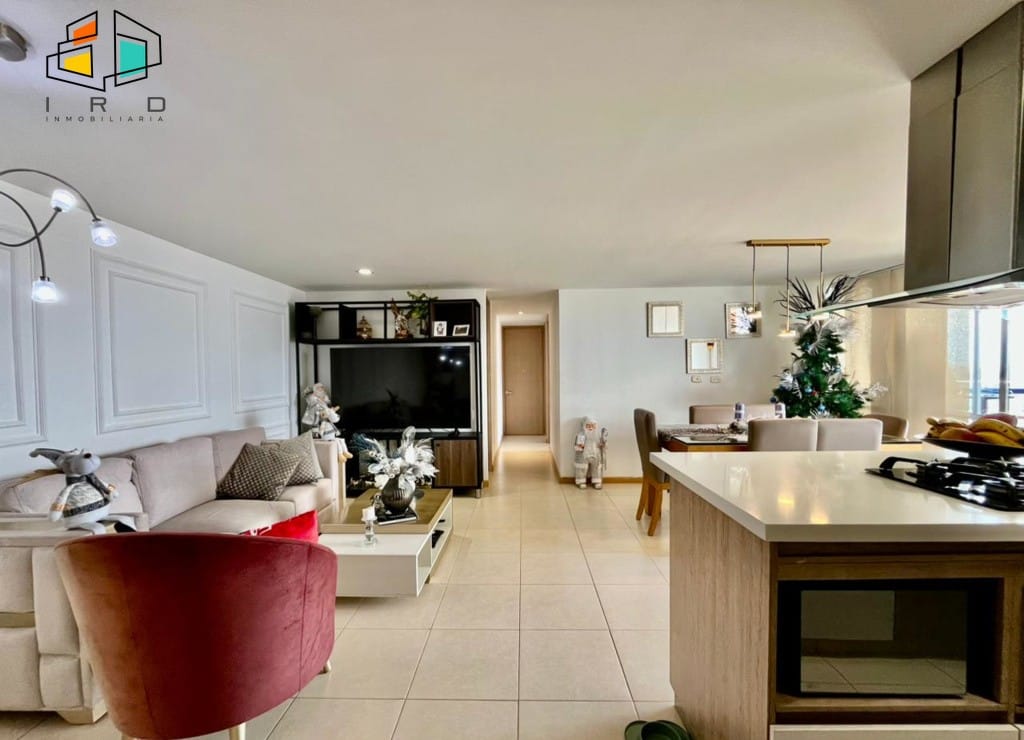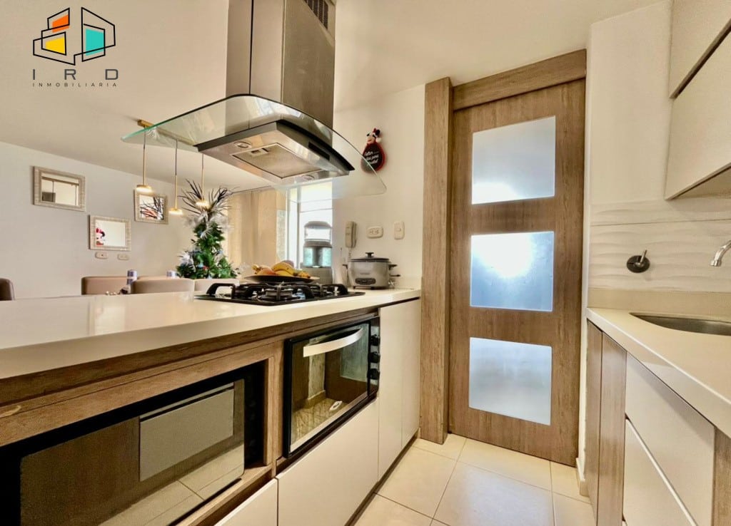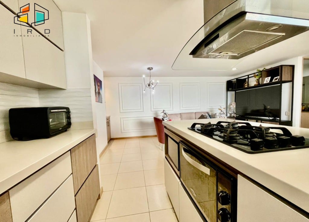 La cocina integral de concepto abierto es un sueño para cualquier chef, equipada con gabinetes superiores e inferiores, campana extractora, cubierta de 4 puestos a gas y horno, además de una práctica barra americana que se integra perfectamente con la zona social. La zona de ropas es independiente y cuenta con calentador de agua. Un hall de alcobas añade privacidad a las áreas de descanso. Incluye 1 parqueadero y 1 cuarto útil.