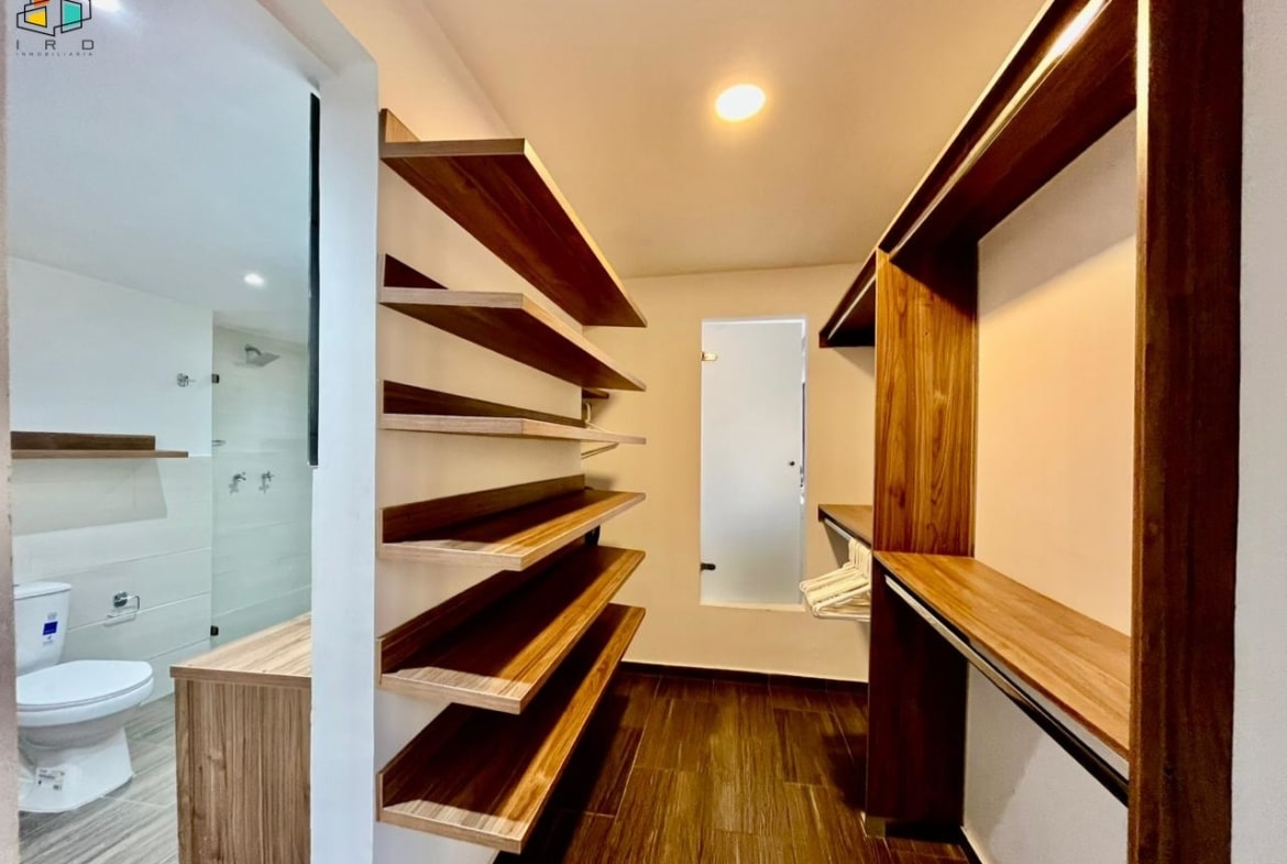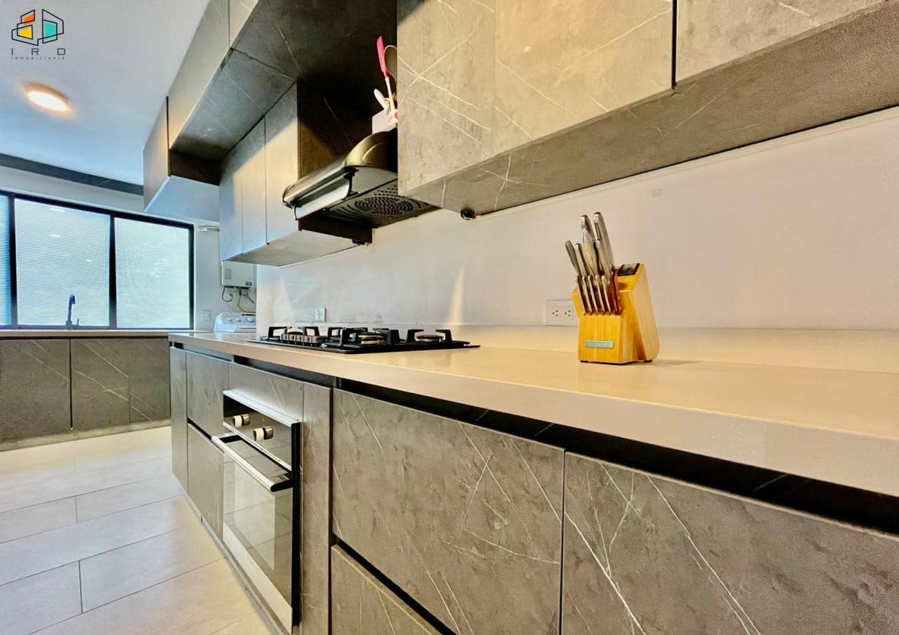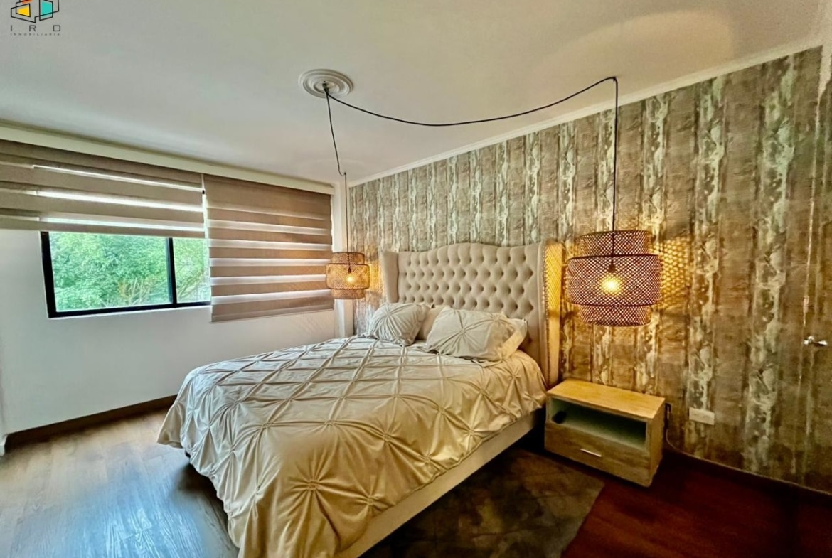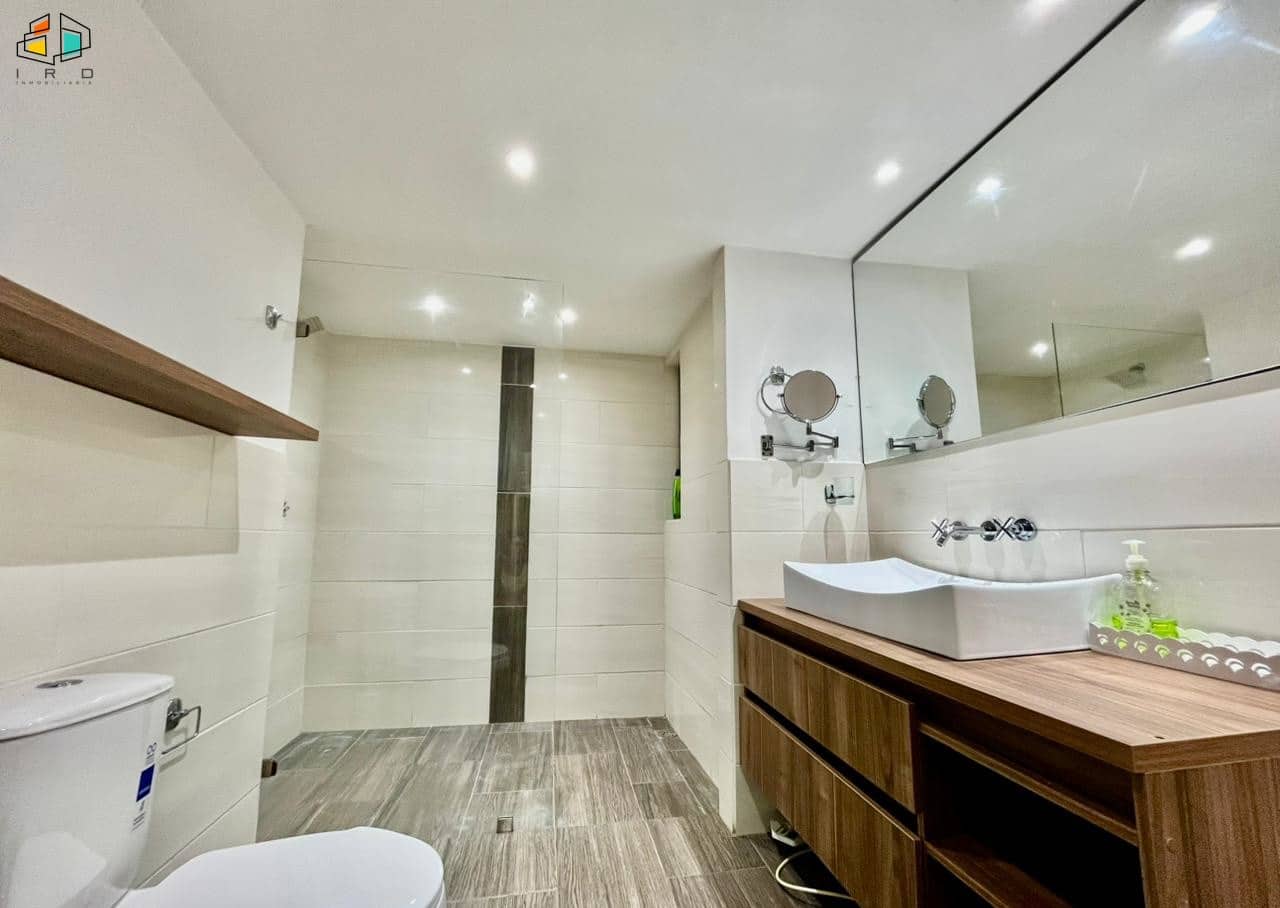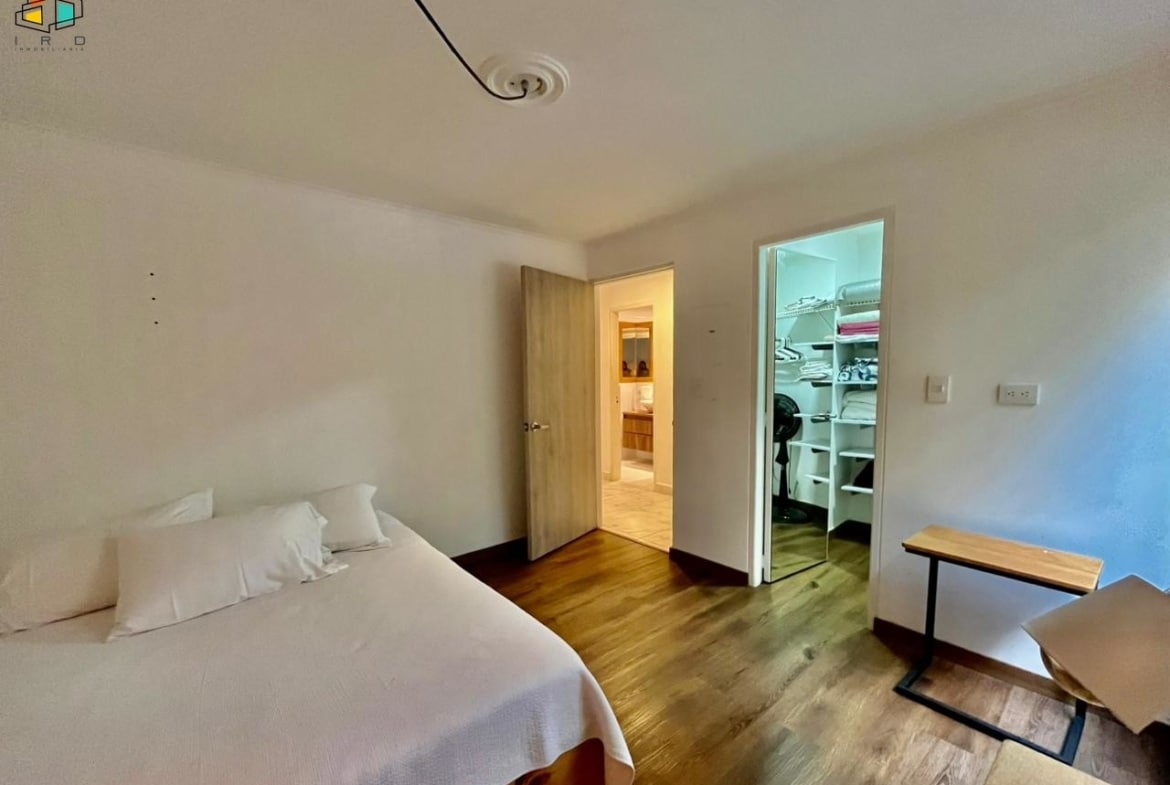 Características del apartamento: – 3 habitaciones: la principal con baño privado y vestier; una auxiliar con vestier y otra con clóset. Todas cuentan con persianas Sheer Elegance. – 2 baños en total, incluyendo el social. – Sala–comedor con pisos de cerámica e iluminación LED y natural, creando un ambiente acogedor. – Cocina integral de concepto abierto, equipada con gabinetes superiores e inferiores, horno, campana extractora y cubierta a gas de 4 puestos. Diseño moderno y totalmente terminada. – Zona de ropas independiente, equipada con calentador de agua. Adicionales: – Hall de alcobas. 2 parqueaderos lineales. 2 cuartos útiles.