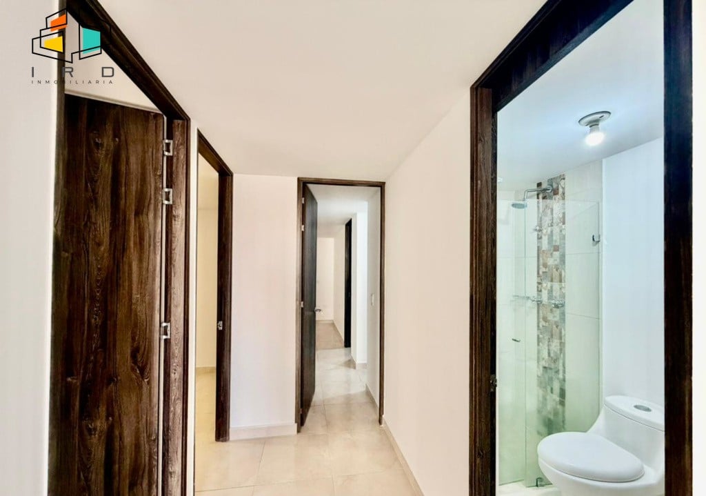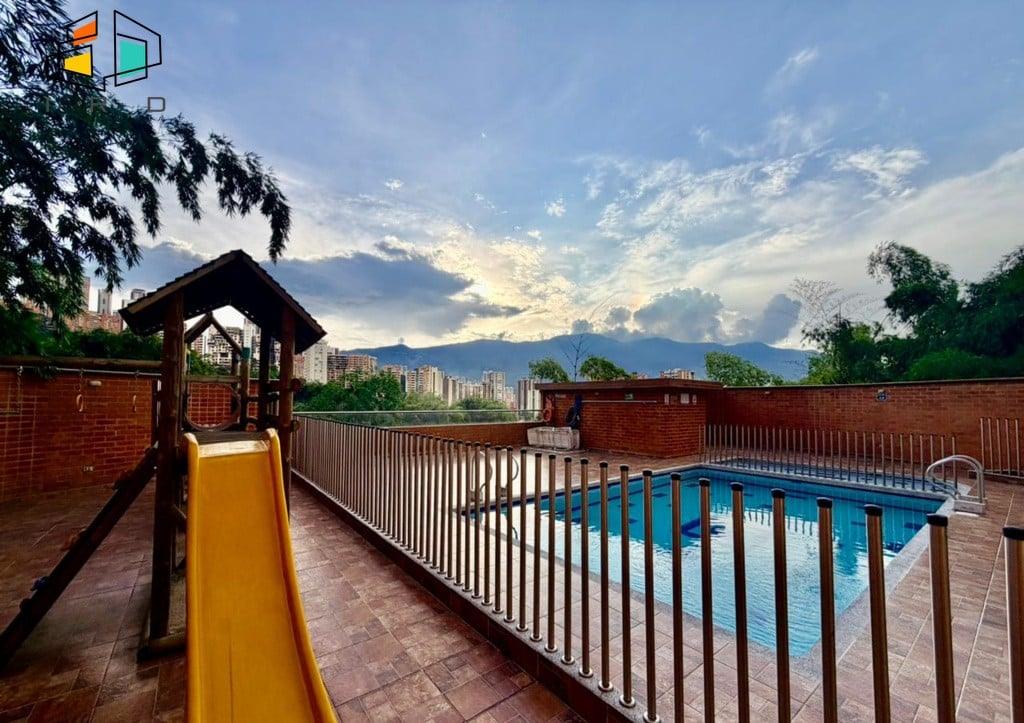 Este acogedor hogar cuenta con tres habitaciones, destacando la principal por su baño privado y vestier, además de dos baños completos y dos closets adicionales. El diseño interior fluye armoniosamente desde la sala y el comedor hacia un balcón que ofrece una espectacular vista panorámica de la ciudad de Medellín. La cocina integral, equipada con una moderna barra americana, se complementa con una funcional zona de ropas. Todos los espacios están revestidos con pisos de cerámica de alta calidad.